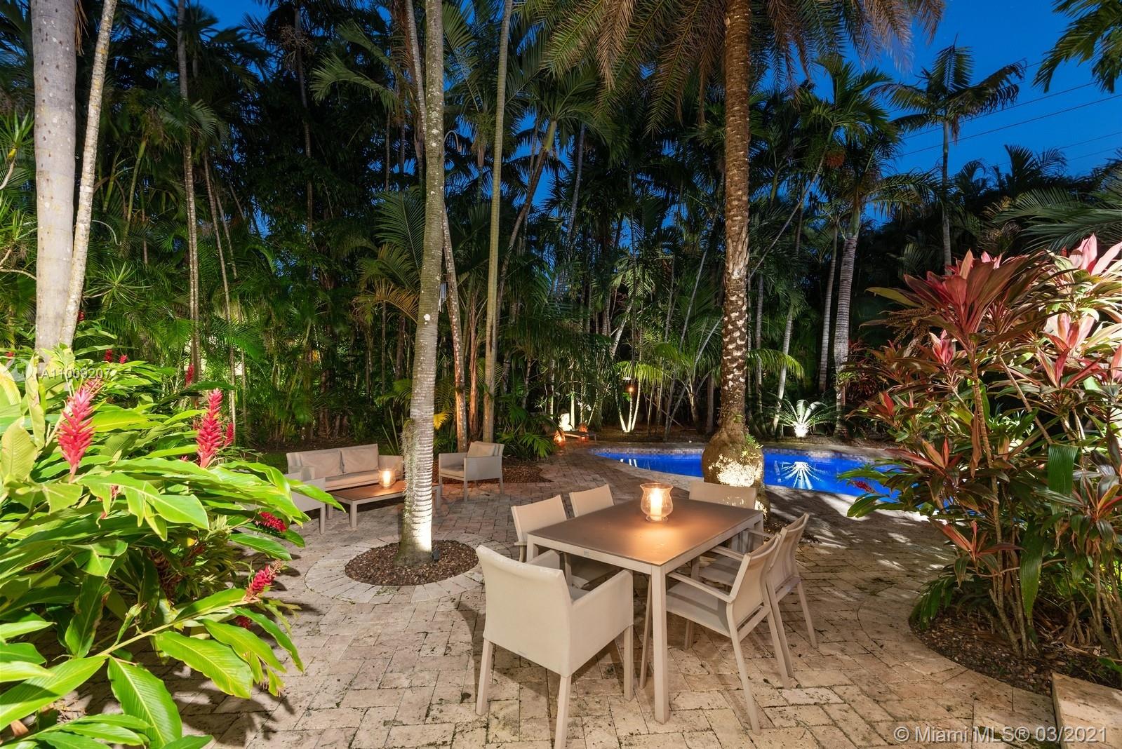 This home redefines the way you will want to live and entertain, the perfect fusion of house and nature. The enviable outdoor space is highlighted by the gorgeous pool and spacious patios featuring dramatic outdoor spaces. Peace and tranquility can be found in the separate sun-room. The kitchen is a Chef's delight designed for gathering. Warm and inviting layout perfect for entertaining with a great flow from one space to the next. A true sanctuary in the heart of The City Beautiful with proximity to everything that makes Coral Gables a world-class destination. Listed as a Landmark on the Coral Gables Register of Historic Places. Plans available for add on wing to existing home.