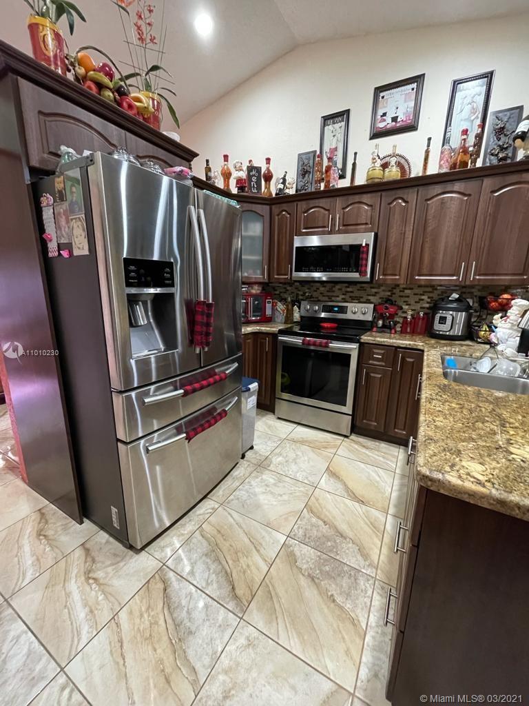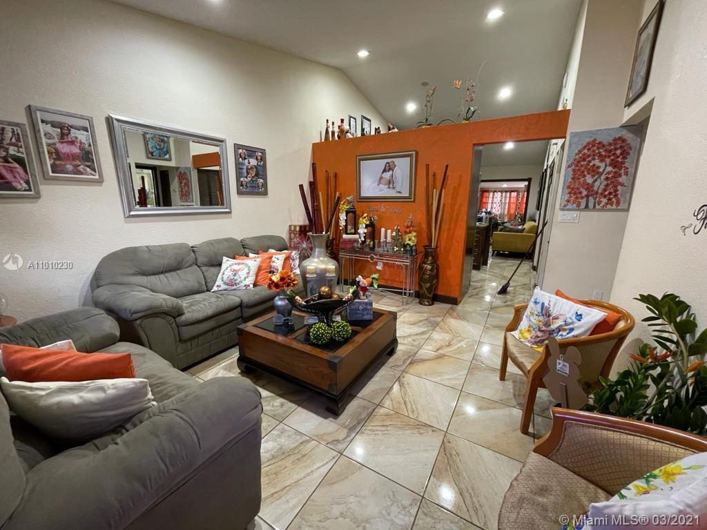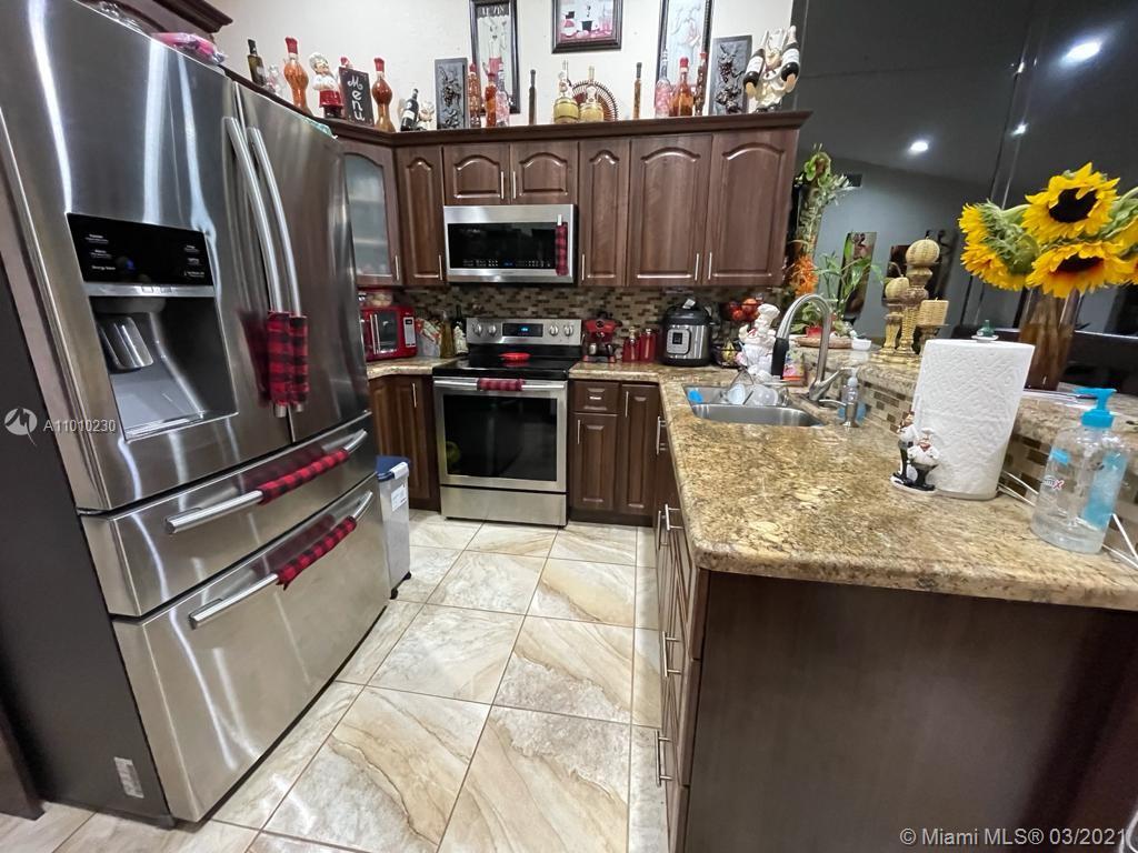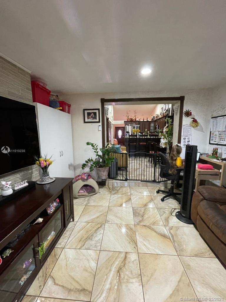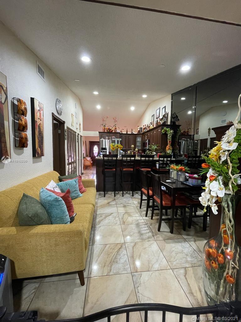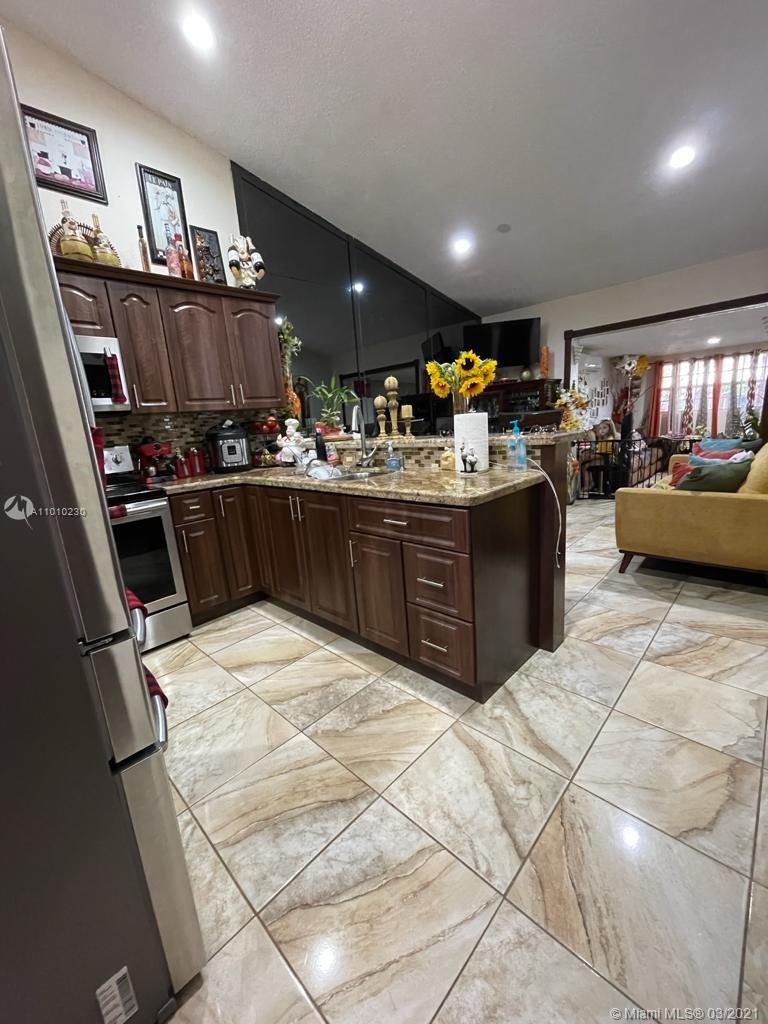 Beautiful Hialeah house!. Nicely decorated. High Ceilings, Remodeled Kitchen and bathrooms, Stainless Steal appliances. Tile throughout. Relaxing Covered Terrace, Driveway fits three cars. Roof is only 2 years new. Mango and avocado tree. HOA $110 annual. Owner occupied please call LA for showing instructions. Realtors, please wear a mask.