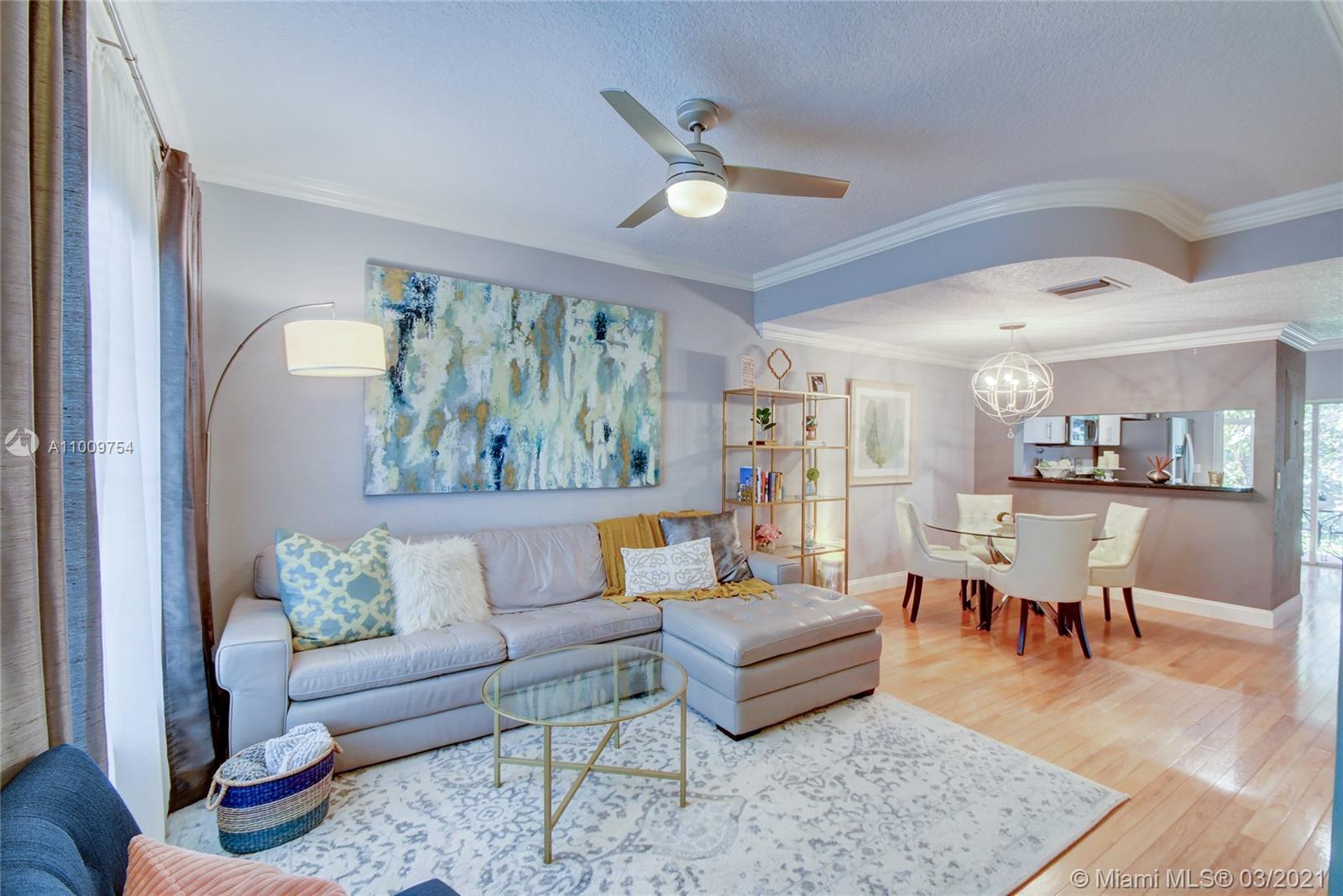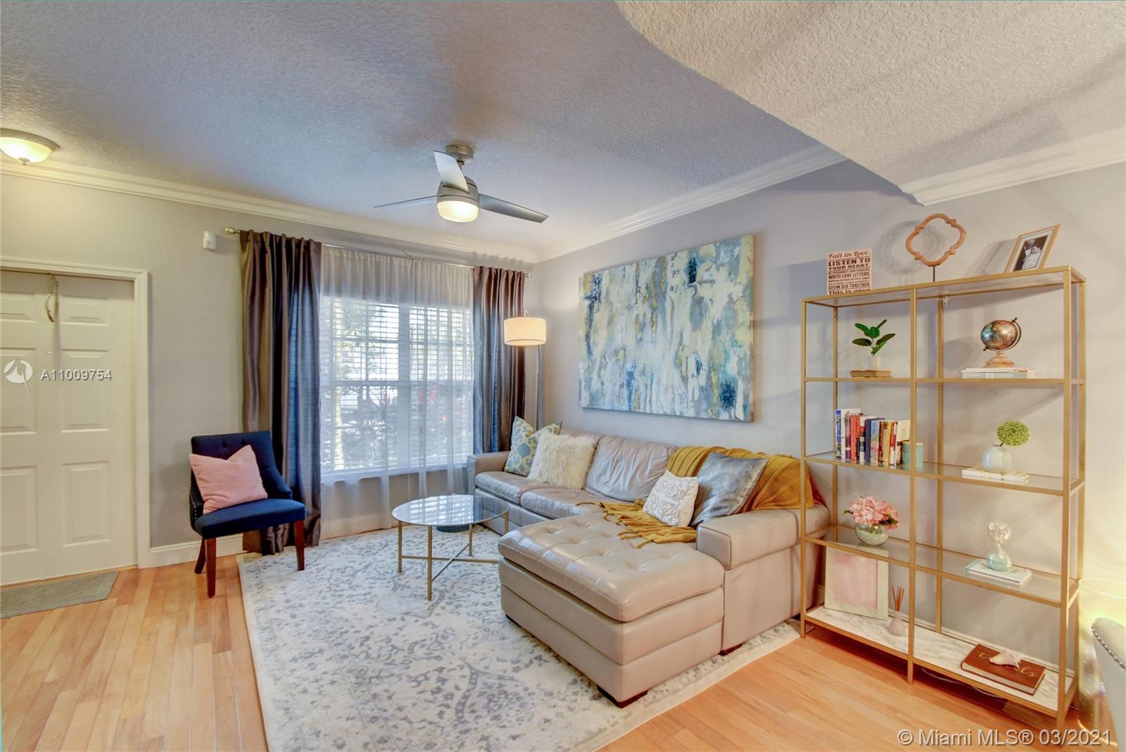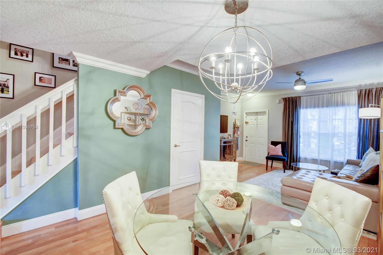 GORGEOUS 2bed/1.5 bath townhome in sought after Somerset is immaculate with many updated features. Spacious kitchen has stainless steel appliances, refaced kitchen cabinets with granite countertops, ground floor has hardwood flooring & crown molding, upstairs flooring is laminate with tile in bathroom, popcorn ceiling replaced with knock down, upstairs bathroom is elegantly remodeled with dual sinks & is accessible from both the master bedroom or hallway, view of the golf course from large master bedroom window, custom closets, A/C replaced in June 2014, water heater replaced in 2015, accordion hurricane shutters. Relax in your cozy screened in patio with view of the golf course. This well maintained community has a pool & BBQ area, is centrally located, & minutes to all major highways.