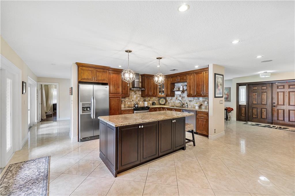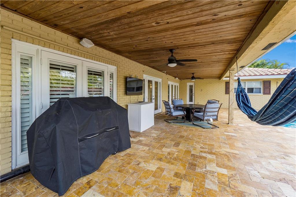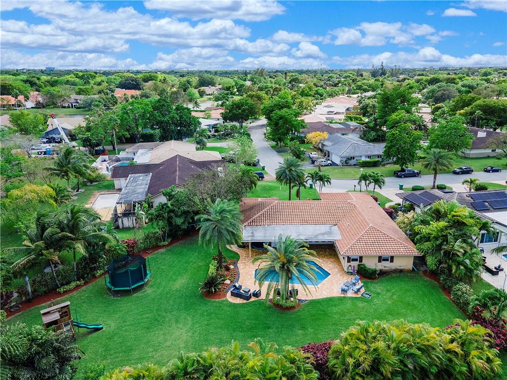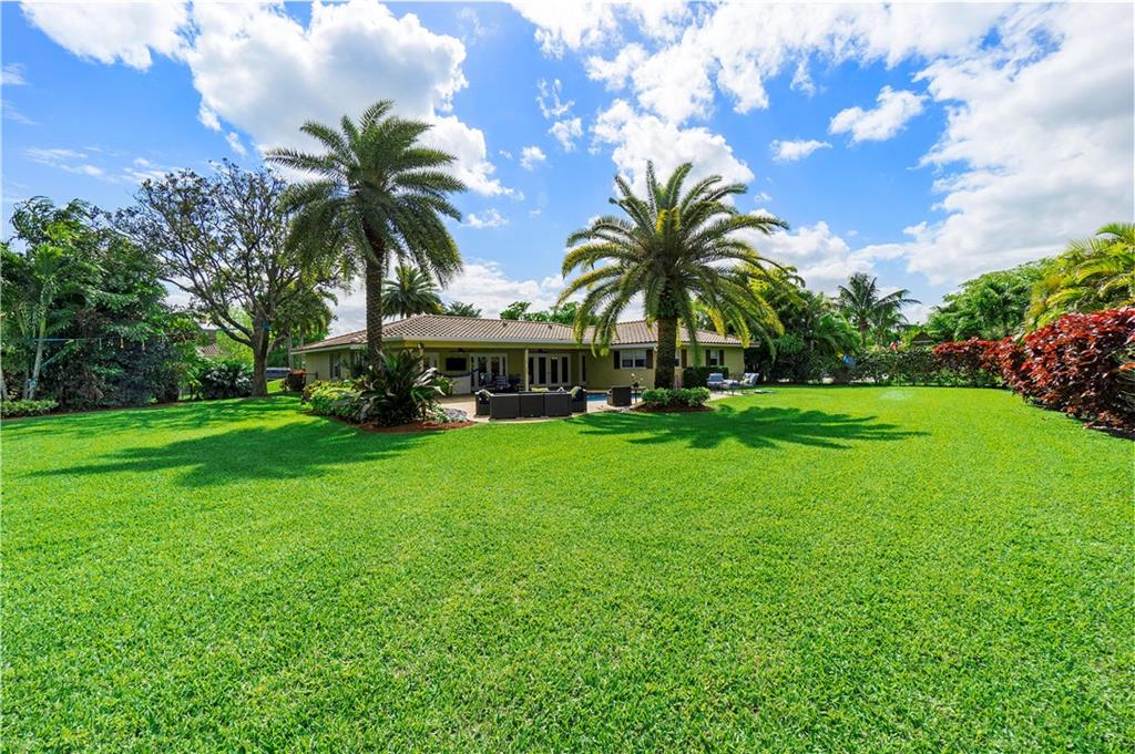 Pristine move in condition home with a lot that is over 16,000 square feet, and a 2 year new roof. This redesigned and upgraded 4 bedroom 2.5 bath home features a split bedroom plan with a cabana bath. Oversized custom closets in every bedroom. The open kitchen with an island is conveniently located for easy access to the backyard and pool. The oversized travertine patio overlooks the beautiful landscaping, giving this tropical paradise a great area for entertaining. The pool area has an outdoor shower. The A/C is 2 years new, hurricane panels for every window, nest cameras in the front and rear of the home, and NO HOA. This home is centrally located within walking distance of 2 parks and close to all major highways and shopping.