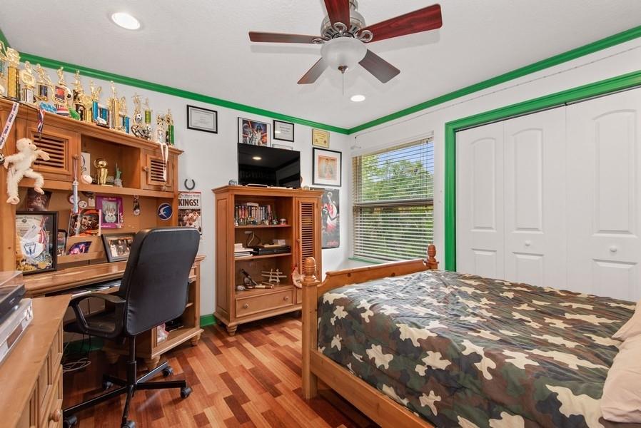 A truly beautiful pool home that is perfect for making memories! This 2 story home is loaded with upgrades! The gourmet kitchen is a chef's delight complete with quartz counter tops and rich cabinetry. Culinary masterpieces await! Formal dining and living rooms make this a wonderful home for entertaining! Large master suite upstairs with a remodeled, luxurious master bath including dual sinks and therapeutic shower. Extra long walk in closet! Three additional large bedrooms upstairs. So much more! Impact windows, crown molding, 2 AC's with one being new in 2020, rectified porcelain tile downstairs and a real wood staircase and flooring upstairs! Tropical fenced backyard with a sparkling pool and lush landscaping. Speakers inside and out. No HOA! Stunning! Open house Saturday, 3/13, 12-3.