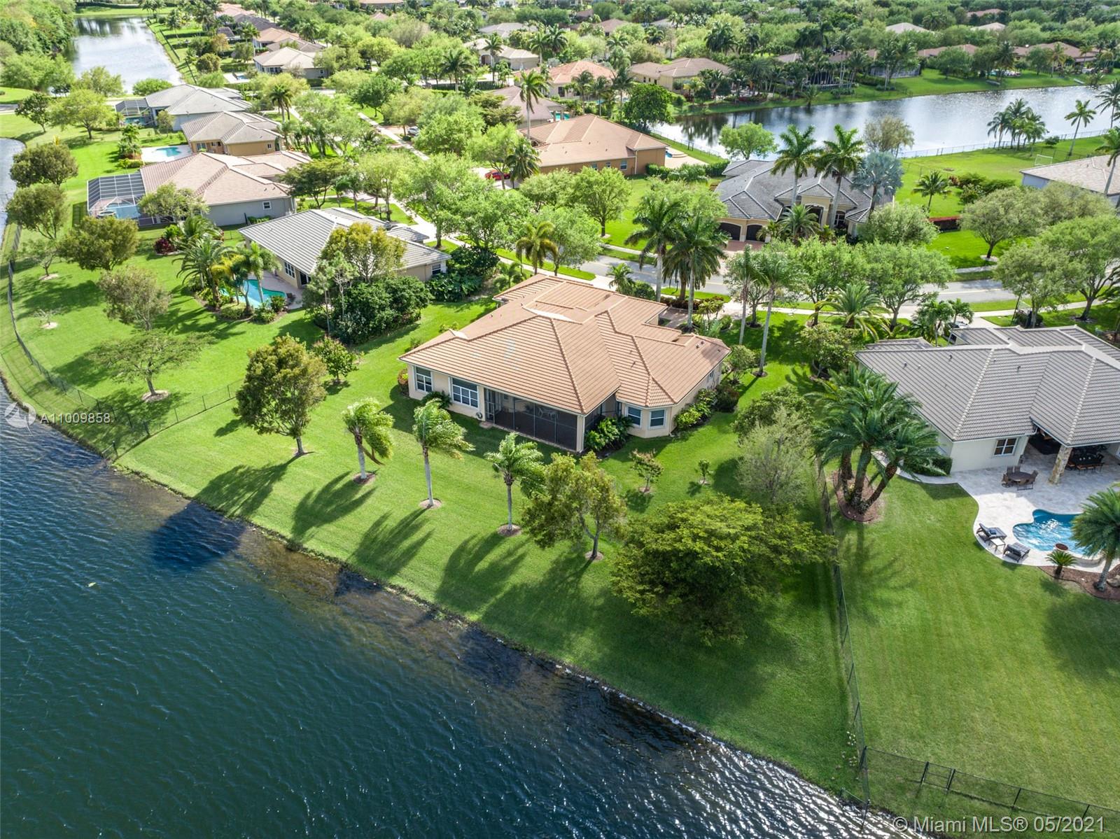Rare find in exclusive guard gated Imagination Farms! Special home on exceptional double lot with amazing long & wide lake views from everywhere you look. Spacious master suite has enormous his/hers walk-in closets, tray ceiling, luxury master bath with separate Roman tub/walk-in shower, dual sinks, bidet. Gourmet style kitchen has newer appliances, cooking island, huge snack counter & walk-in pantry. This model has a separate child's wing. Breakfast nook. Built in wet bar separates huge living & family rooms. 5th bedroom is currently used as den/office. 3 new A/C units. Beautiful crown molding. French doors open to over-sized covered screened patio. Freshly painted. Circular driveway. Equipped with accordion shutters & alarm. Expansive property has mango trees & Haas avocado. A+ schools.