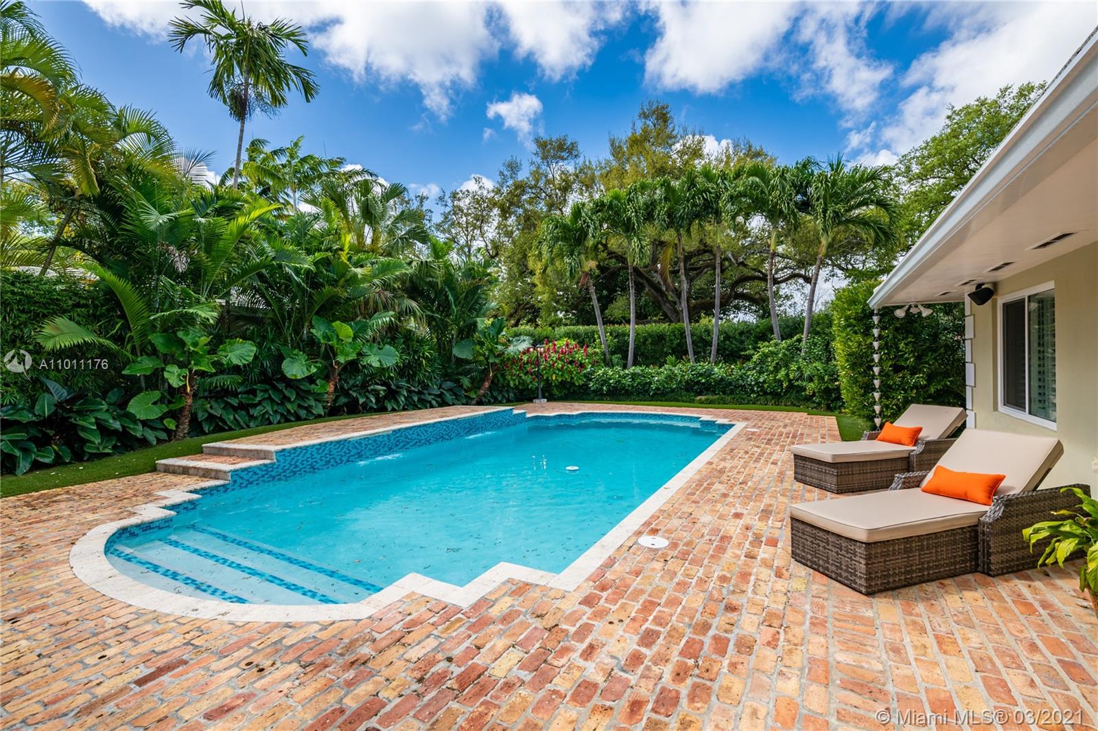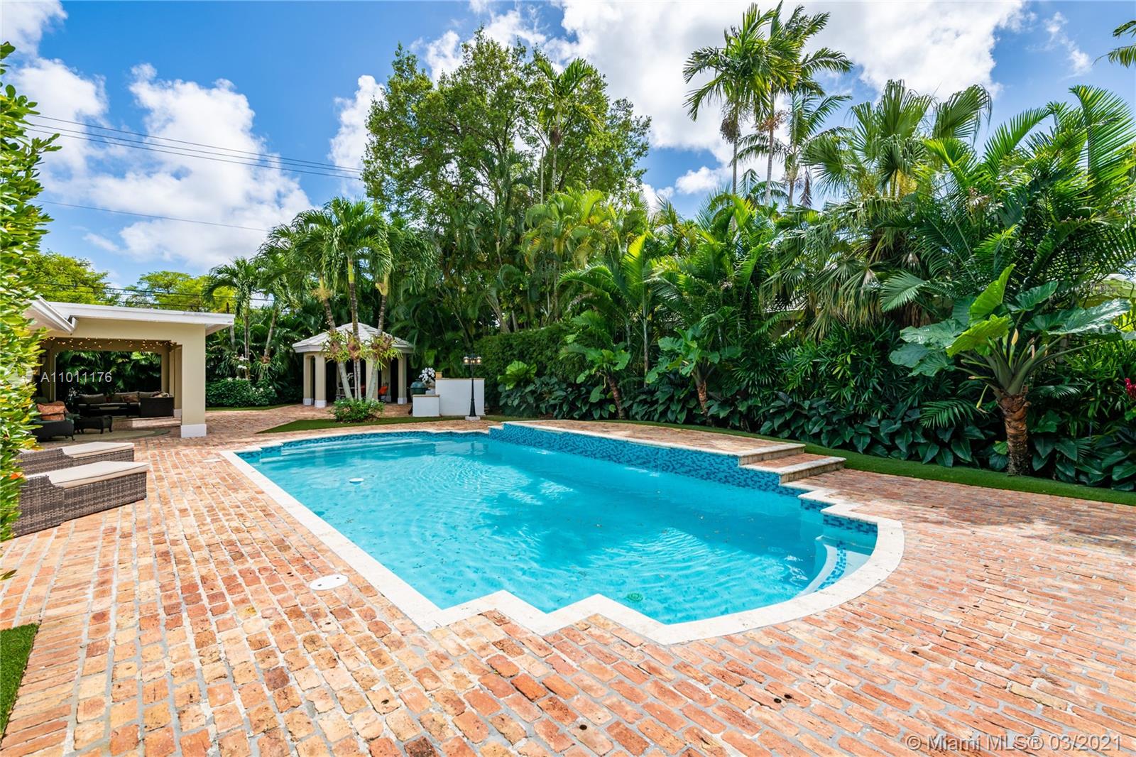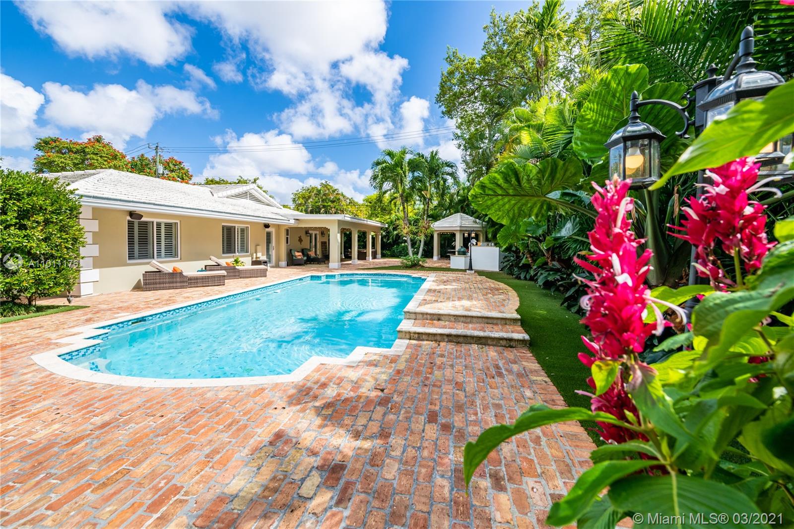 Prestigious & Pristine Gables Sanctuary. The sweeping scope of upgrades and renovations to this home is head-spinning. Cherished original features like the marble floors were brined & sealed, and original hardwood floors sanded & stained to radiant perfection. Extensive features are all-new or updated, incl. completely remodeled kitchen, master bath, pool, garage, laundry room & landscaping. Brand new hurricane-proof windows & doors pair w/custom plantation shutters. The interior is freshly painted. All door hardware is new, along w/every lightswitch & outlet. Both AC units have a new NEST system. The security system incl. gate video is new. The sprawling wrap-around brick patio has an alfresco kitchen & covered lounges, and swimmers have access to a new cabana bath. Large yard, 2CG.