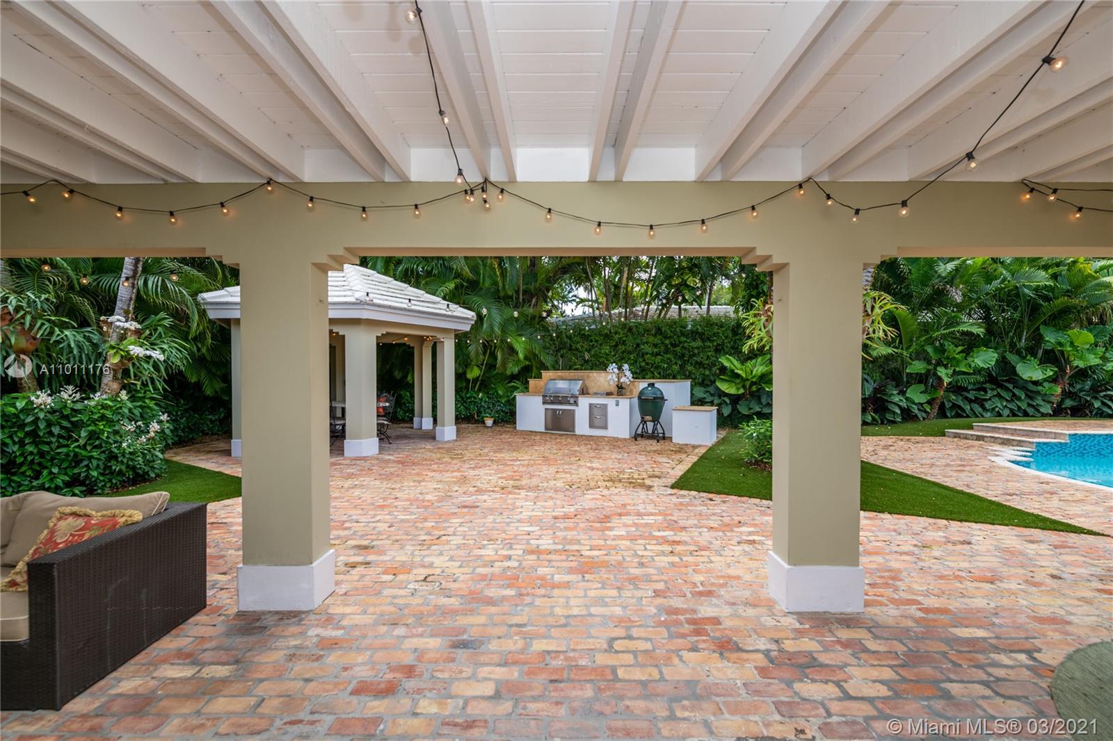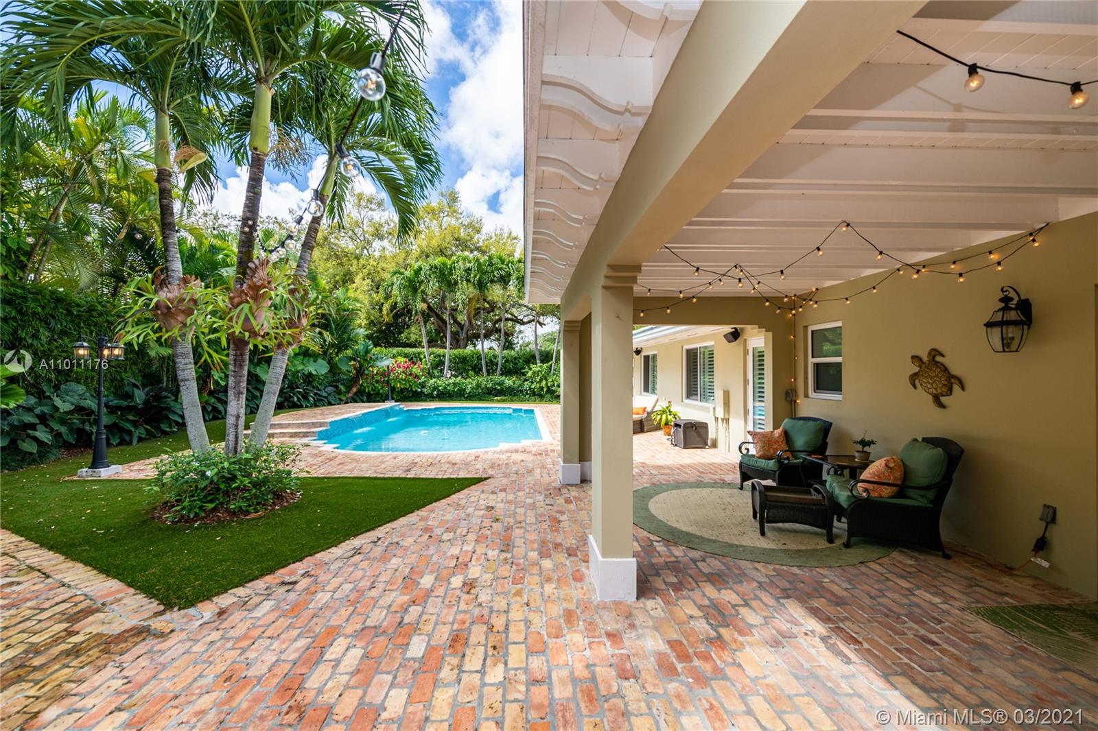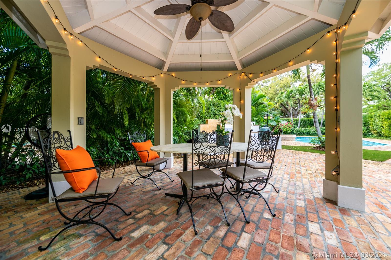 Prestigious & Pristine Gables Sanctuary. The sweeping scope of upgrades and renovations to this home is head-spinning. Cherished original features like the marble floors were brined & sealed, and original hardwood floors sanded & stained to radiant perfection. Extensive features are all-new or updated, incl. completely remodeled kitchen, master bath, pool, garage, laundry room & landscaping. Brand new hurricane-proof windows & doors pair w/custom plantation shutters. The interior is freshly painted. All door hardware is new, along w/every lightswitch & outlet. Both AC units have a new NEST system. The security system incl. gate video is new. The sprawling wrap-around brick patio has an alfresco kitchen & covered lounges, and swimmers have access to a new cabana bath. Large yard, 2CG.