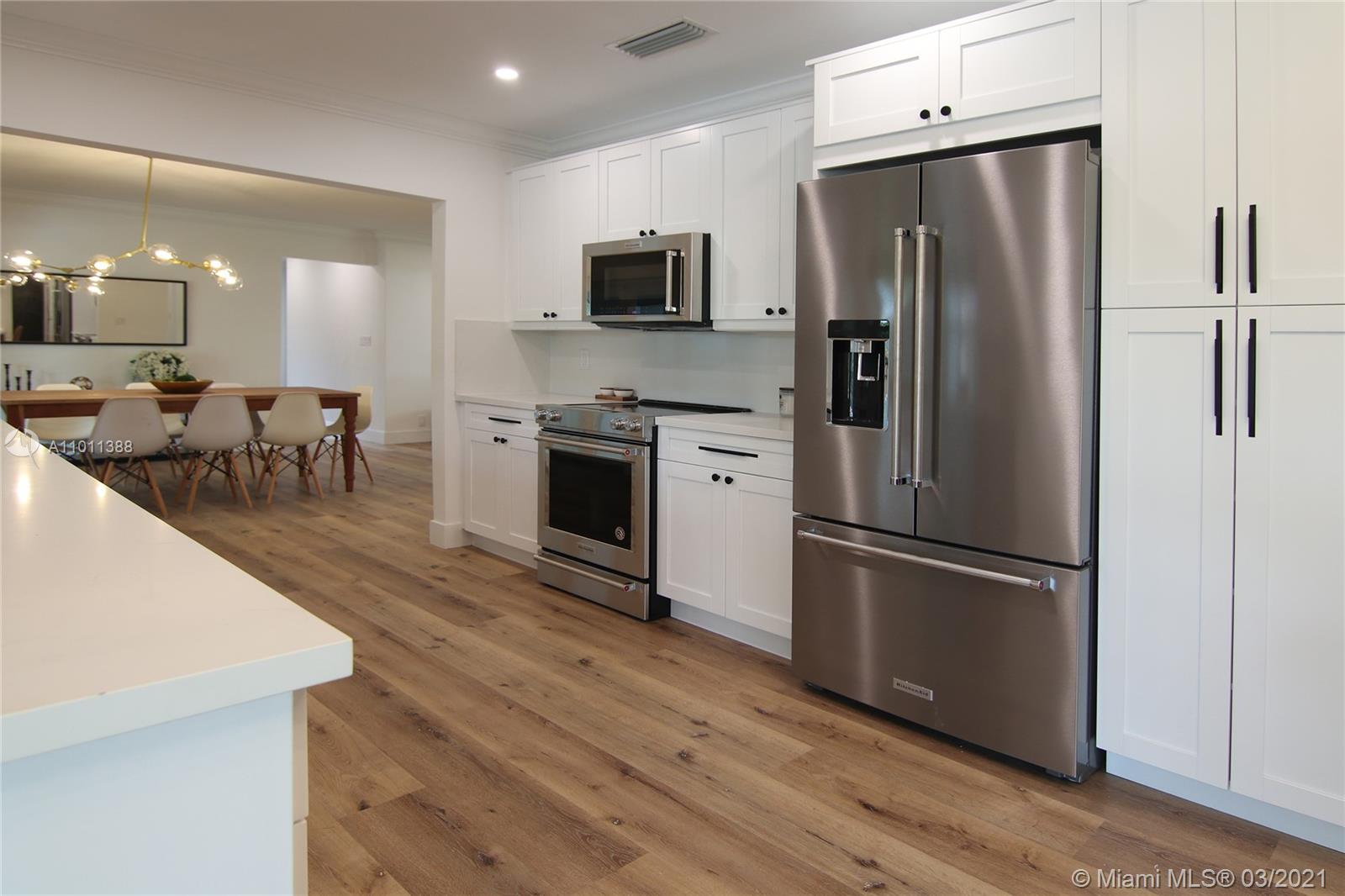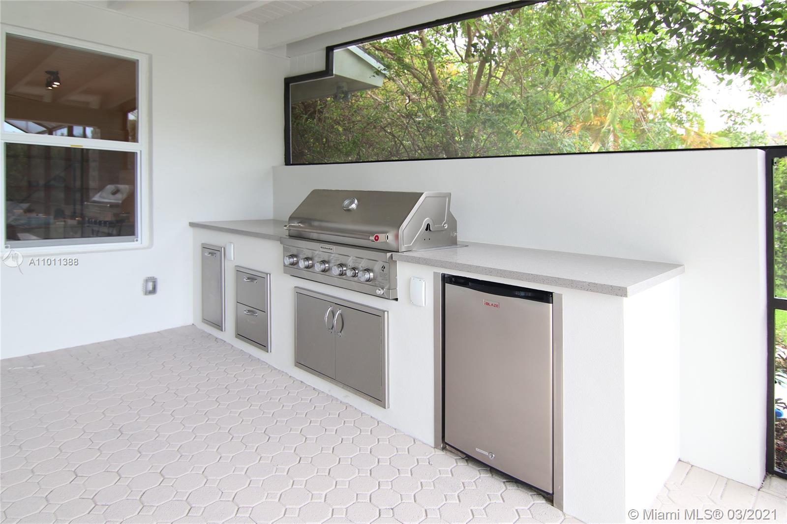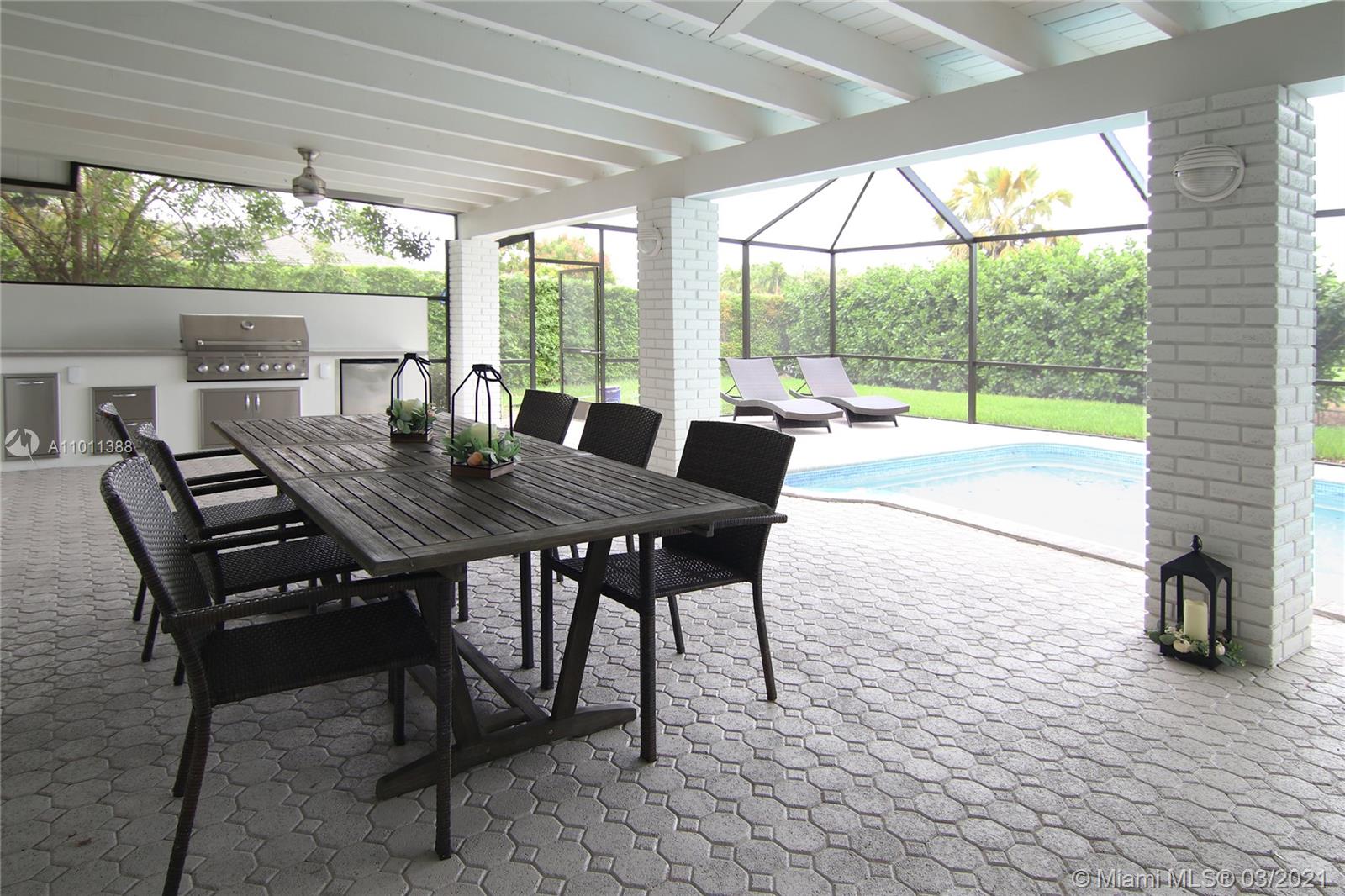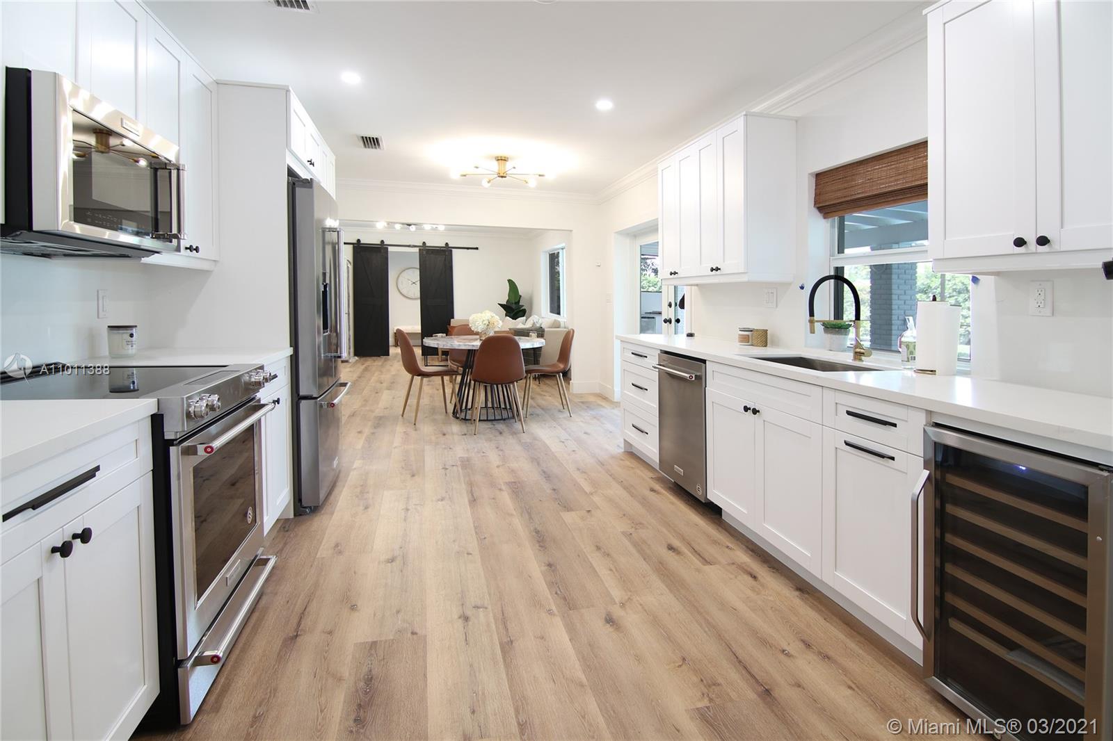 This newly remodeled 4/2.5 home with an office sits on a quiet cul-the-sac on a canal. The open lay out is filled with natural light and offers 2 separate living room spaces. The eat-in kitchen is bright with quartz countertops and Kitchen Aid stainless-steel appliances. The master bedroom offers a large walk-in closet and direct access to the pool. Gorgeous new flooring throughout and ample closet spaces. Great lay out with a bright laundry room and a double car garage. All design elements have been carefully selected and customized to make this a unique home. The private backyard features a large covered terrace, pool, and great outdoor kitchen. Enjoy the peace of mind of living in a fully remodeled home with a new roof, new impact windows and updated plumbing. Designed by Porta Negra.