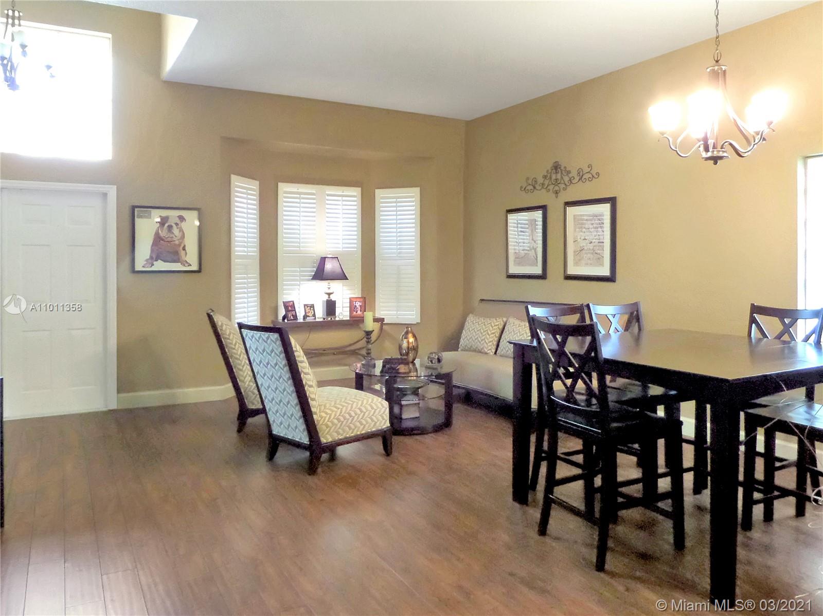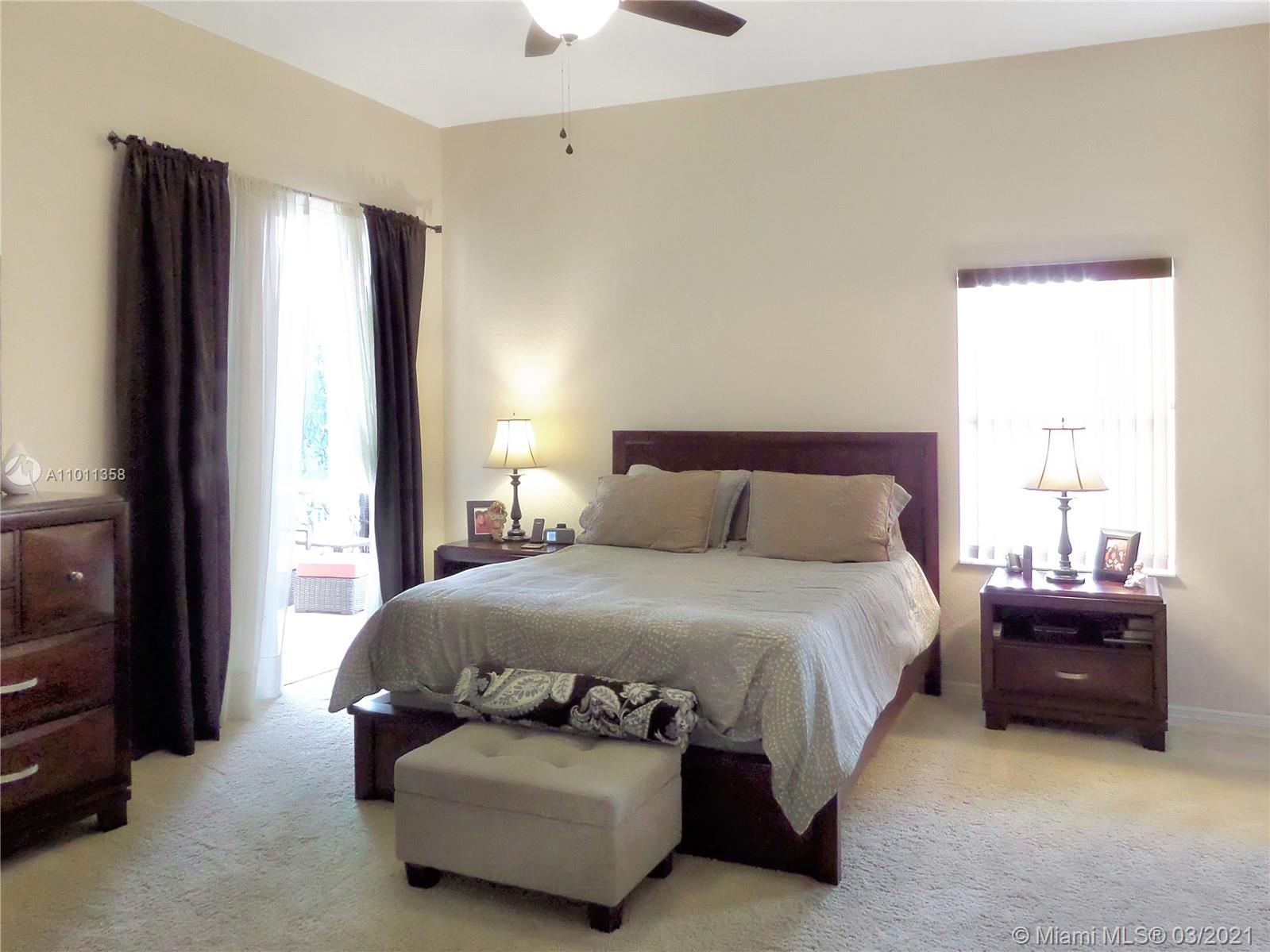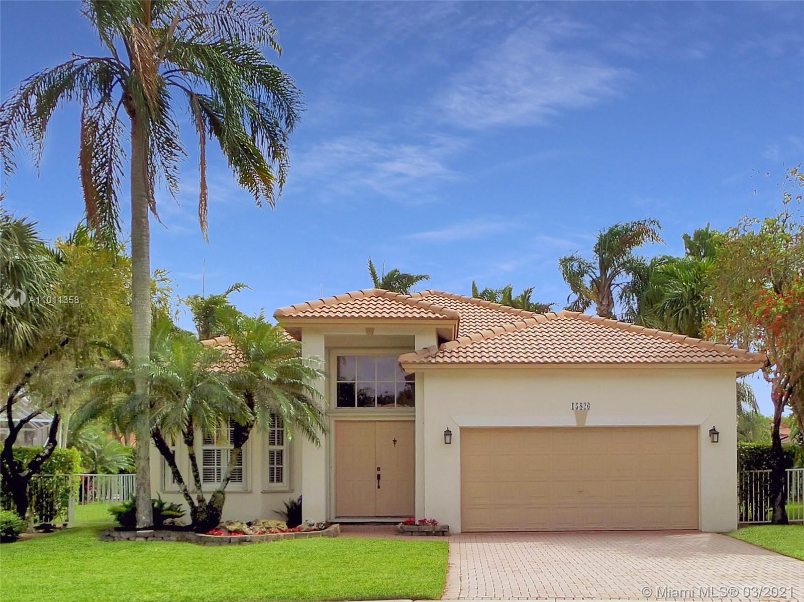 Amazing opportunity… updated 4 B/R, 2 bath ONE STORY home in one of the finest gated developments, Grand Palms - the only area golf course community (membership not required, sold separately). Generously-sized bedrooms, high ceilings add to spaciousness. Master and one bedroom off one hallway, and two bedrooms off another hallway. Dual-entry bathroom between the two hallways. Private screened porch and patio, with sizable L-shaped yard. Accordion shutters, plus impact french doors to the screened porch. White kitchen with darker granite counters and stainless appliances. Darker wood floors in living areas, tiled kitchen floor, travertine bathrooms, carpeted bedrooms. Newer A/C and water heater. HOA includes lawn and tree trimming, gate security and patrol, pressure cleaning, cable, alarm.