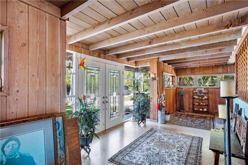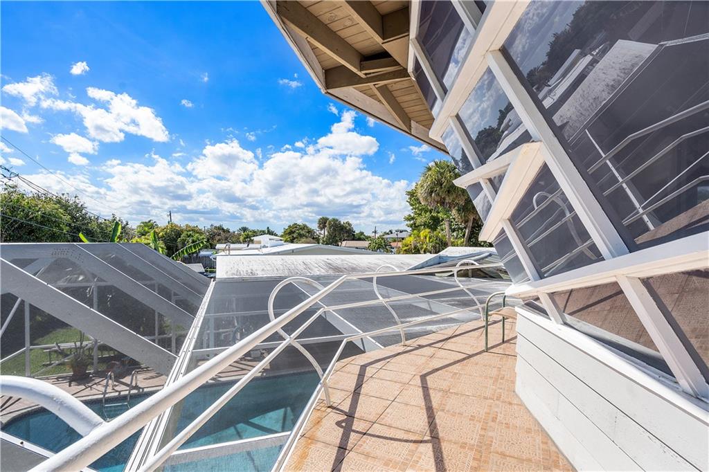 This home designed from the Frank Lloyd Wright School of Architecture is located in the highly sought after neighborhood of Harbor Inlet. It offers 3 bedrooms plus an office, and 2 1/2 baths. Walking distance to the beach! Inside enjoy spectacular wood beam ceilings, large solarium living room, and access to the covered pool area from every room in the house. Master bedroom offers a wrap around balcony overlooking the pool and custom angled windows unique to the builder. Showings by appointment only, 24 hour notice.