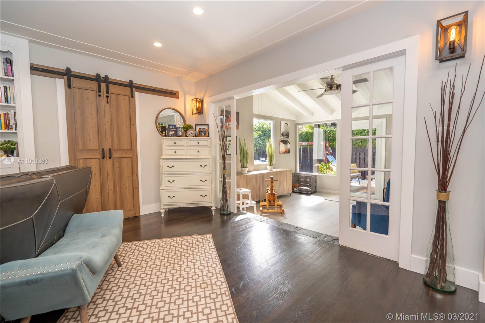 New to the market is this remarkable 3 bed 2 Bath home that presents a nice open floor plan & 1 car garage located in one of the best locations of Surfside. Renovated- upgrades include barrel roof, electric, plumbing, impact windows & doors, designer bathrooms, redone hardwood floors & stone flooring. Large gourmet kitchen w/island/ granite/SS appliances, stone backsplash, wine cooler & lots of storage. New light fixtures, window treatments & hardware throughout, 3 custom barn doors, built in bookshelf, fireplace, A/C less than 5 years old, newer paint inside & out. Florida room with lots of Natural light that leads to a fully fenced backyard w huge deck & custom awning for entertaining. Backyard has an above ground pool, kids playset, hot tub, and captivating landscaping for privacy.