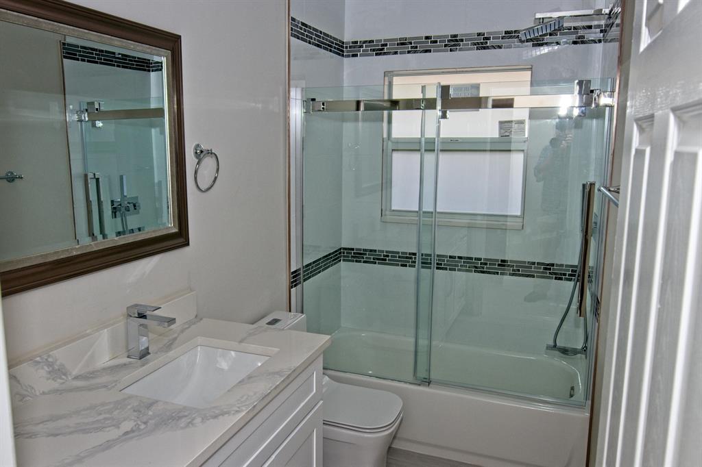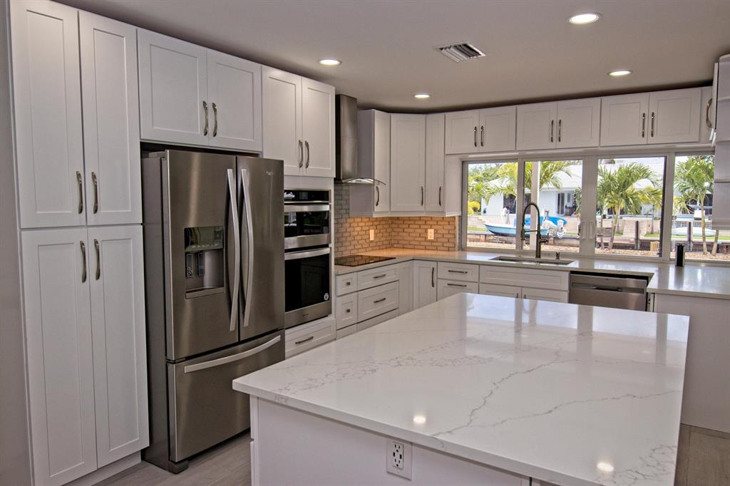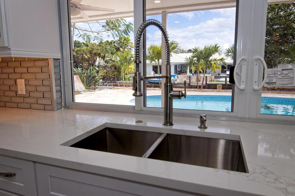 A must see new listing. Fabulous fully remodeled property. Porcelain floors throughout. Efficient gourmet kitchen with stainless steel appliances, and bright pool and intercoastal view. Brand new roof, hurricane impact windows and doors. Warmth custom designed bathrooms. Master bathroom includes spa tub, double vanity and walk-in closet With 2 cars garage, spacious marbled back yard and pool area. Sea wall and dock, with ocean's access.Bridge clearance 10-11ft at low tide and 8ft on high tide.