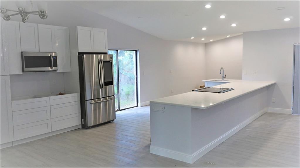 WOW!! STUNNING REMODELED MODERN POOL HOME BRAND NEW KITCHEN WITH NEW STAINLESS STEEL APPLIANCES, QUARTZ COUNTERTOPS OPEN FLOOR PLAN WITH VAULTED CEILINGS, RECESSED LED LIGHTING, NEW TILE FLOORS, NEW CARPETS, NEW INSULATION AND NEW INTERIOR/ EXTERIOR PAINT LAUNDRY ROOM, 2 CAR GARAGE AND TROPICAL LANDSCAPING WITH FENCED BACKYARD AND POOL AREA