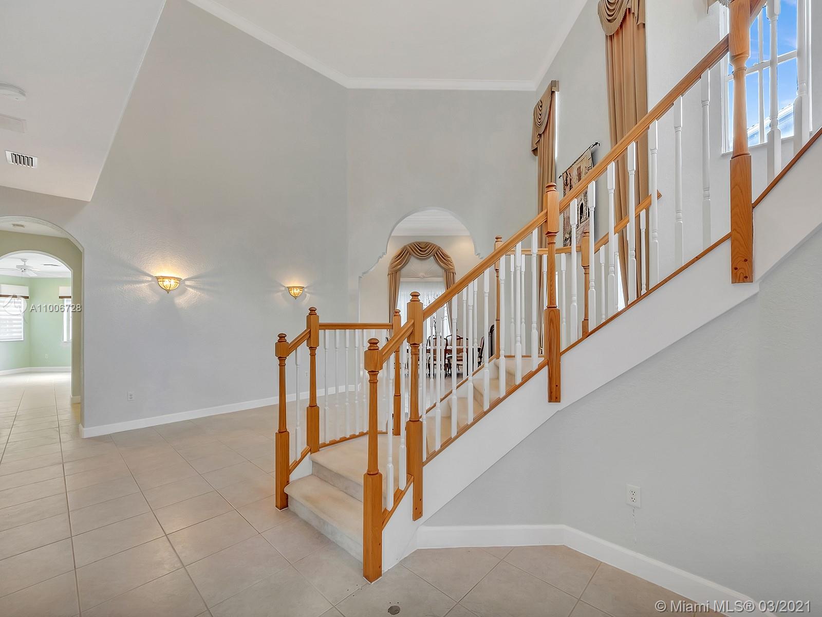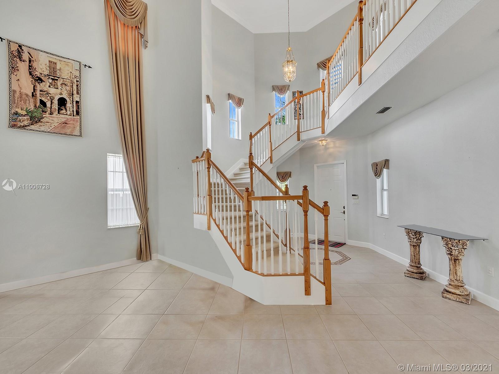 BE THE PROUD OWNER OF THIS MAGNIFICENT 2 STORY HOUSE LOCATED IN THE MOST DESIRED DORAL ISLES. one bedroom and full bath at the first floor, master suite with a sitting room and 3 other bedrooms upstairs ,breathtaking staircase beautiful tile throughout first floor, Accordion shutters , built in BBQ and a beautiful pool area great for entertaining. Doral Isles is a prestigious well-established community that offers resort-style amenities that includes an Olympic style swimming pool & waterfall, bike trails, soccer field, Basketball court, gym, volleyball court, baseball field, meeting & ballroom facilities, guarded entrance with added patrolled security. A/C 2015 POOL 2015