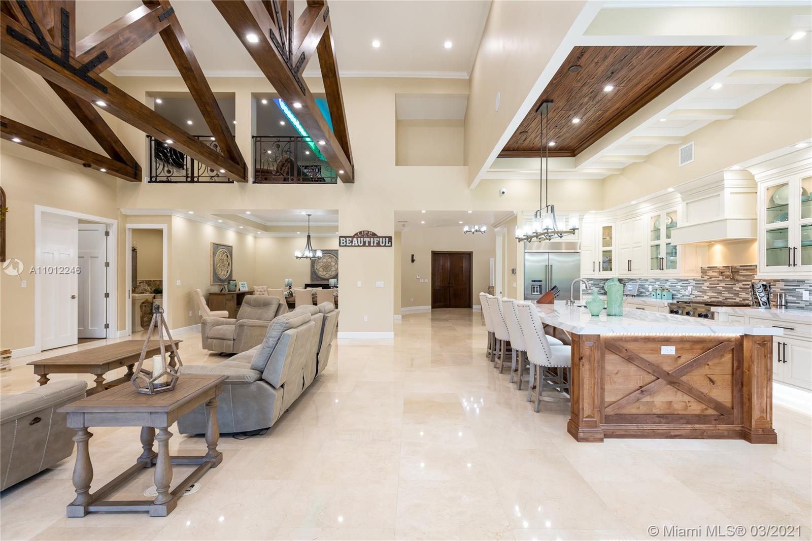Enormous and stunning newly custom built home with Unparalleled Construction and Craftsmanship!! for sale in the desired area of Davie Florida with 1.25 acres of land, total of 8 bedrooms with an additional if needed used as second living area.5 full bath and 1 half bath, plus a detached maid or In- law quarters, 2 full blown kitchens, split floor plan 2 masters. Whole house generator with 1000 gallon propane tank, live off grid 3-5 weeks.