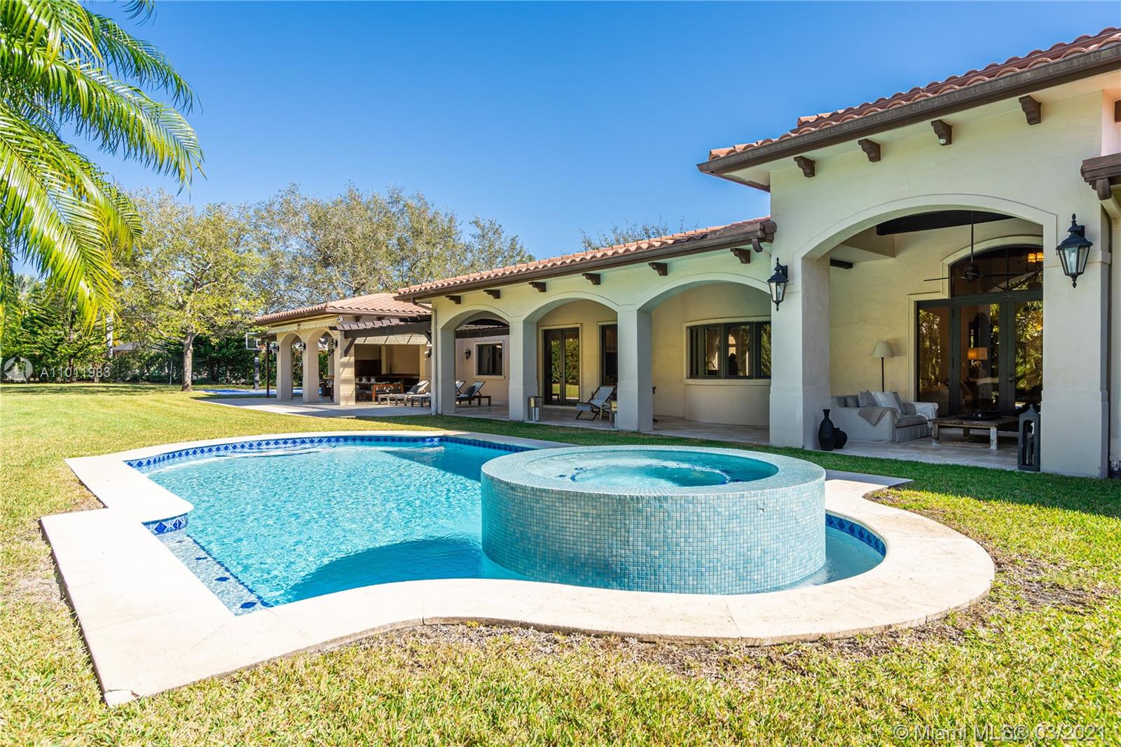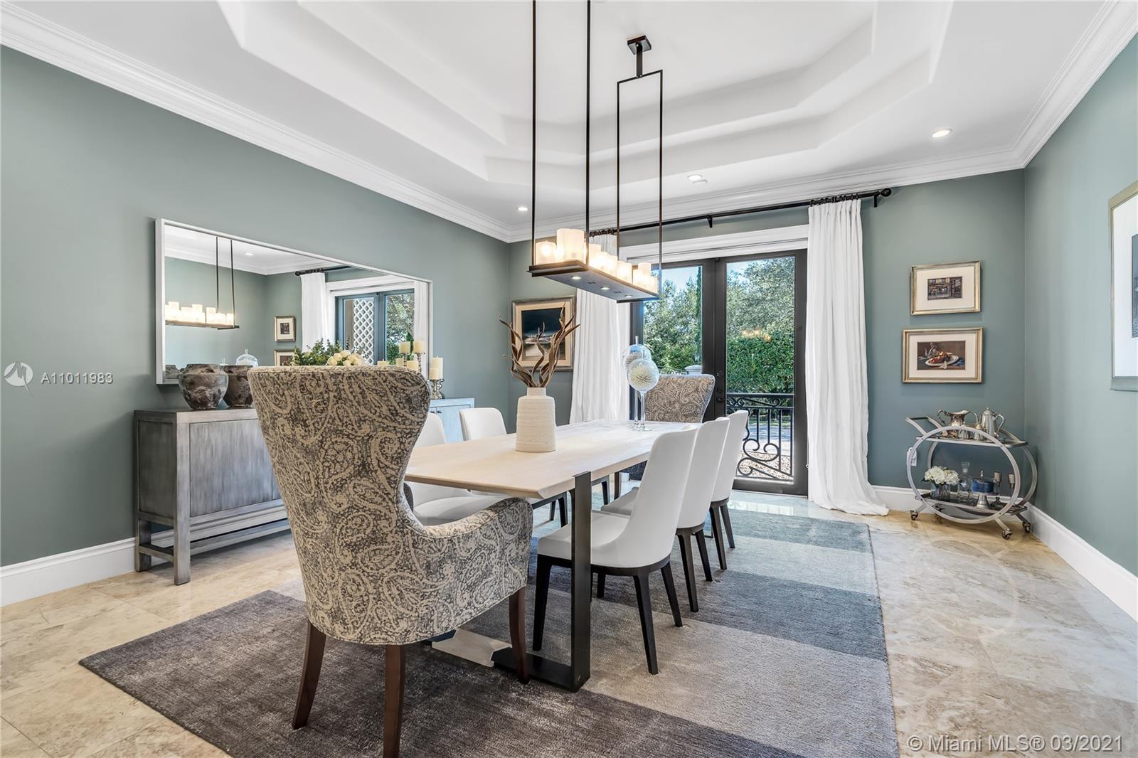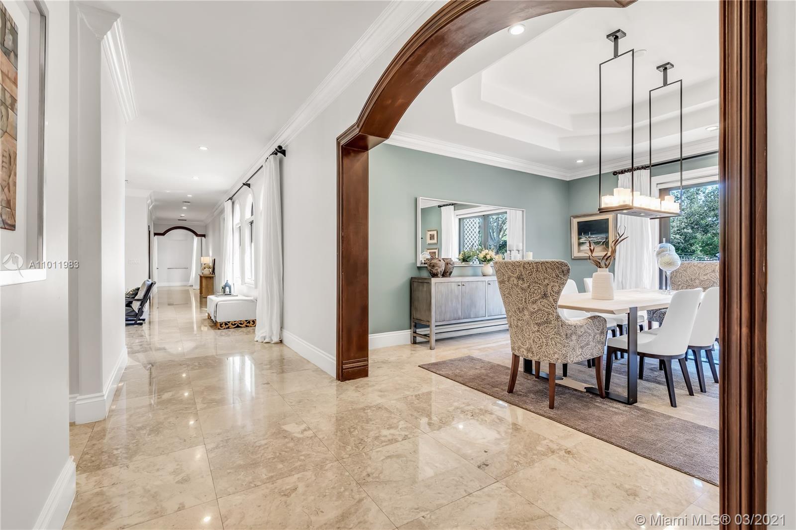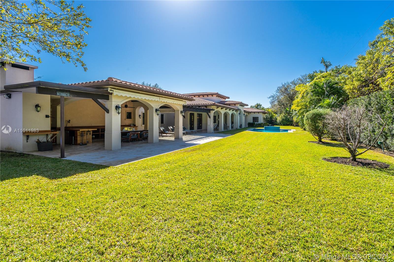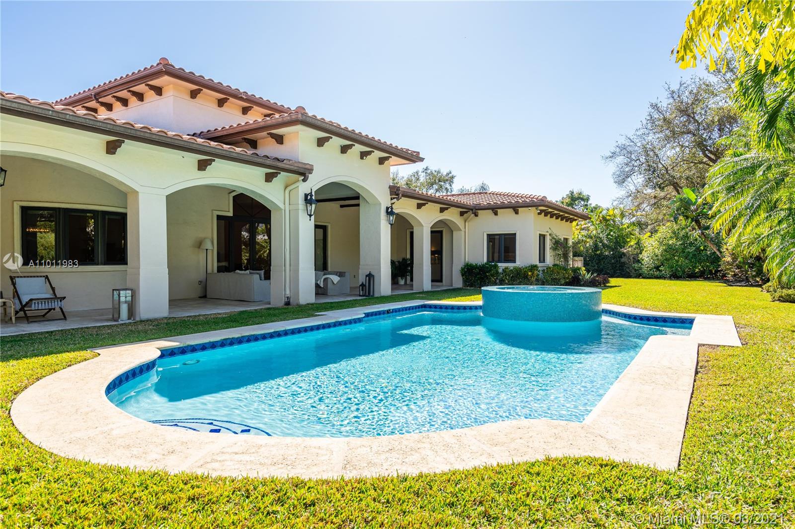 Stunning gated Mediterranean Estate tucked away on a pretty and serene street in the heart of Pinecrest. Imposing entry with cathedral ceiling, marble floors throughout, high impact windows & doors. Formal living and dining rooms, gourmet kitchen opens to Family room overlooking back patio. 6Bd, 6Bath plus additional office. Lavish Master bedroom and bath offers his and hers walk-in closets, whirlpool bathtub and sauna. 750 bottle A/C wine cellar room. Expansive terrace with one-of-a-kind Argentinian BBQ. Pool, Spa and Basketball Court. Security cameras and air-conditioned 3 car Garage. Few blocks away from Pinecrest Gardens and top public & private schools.