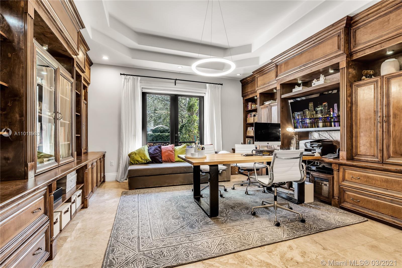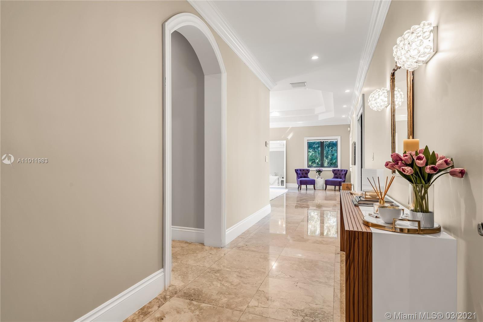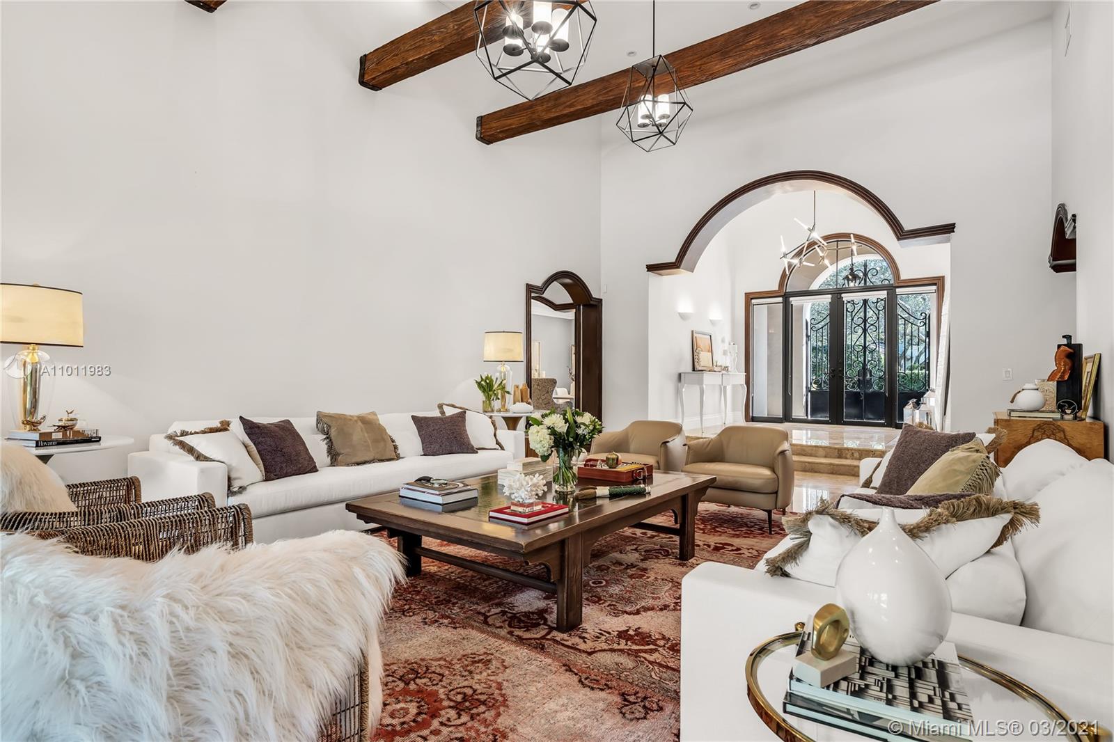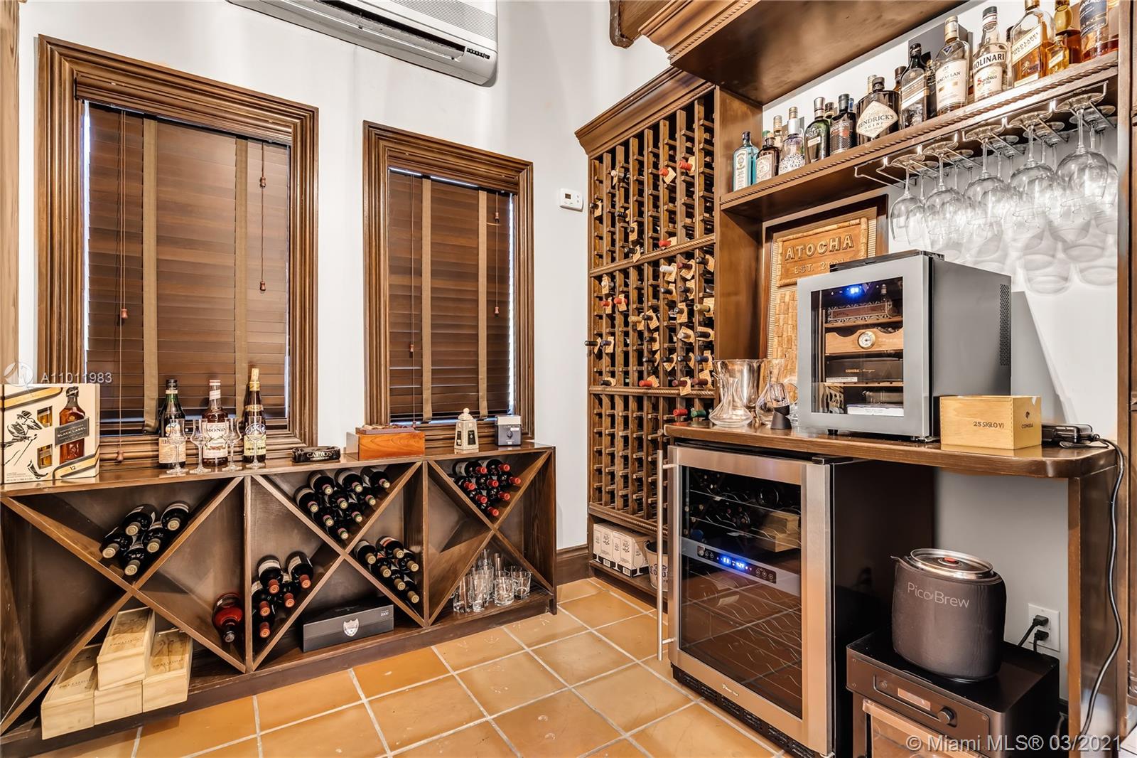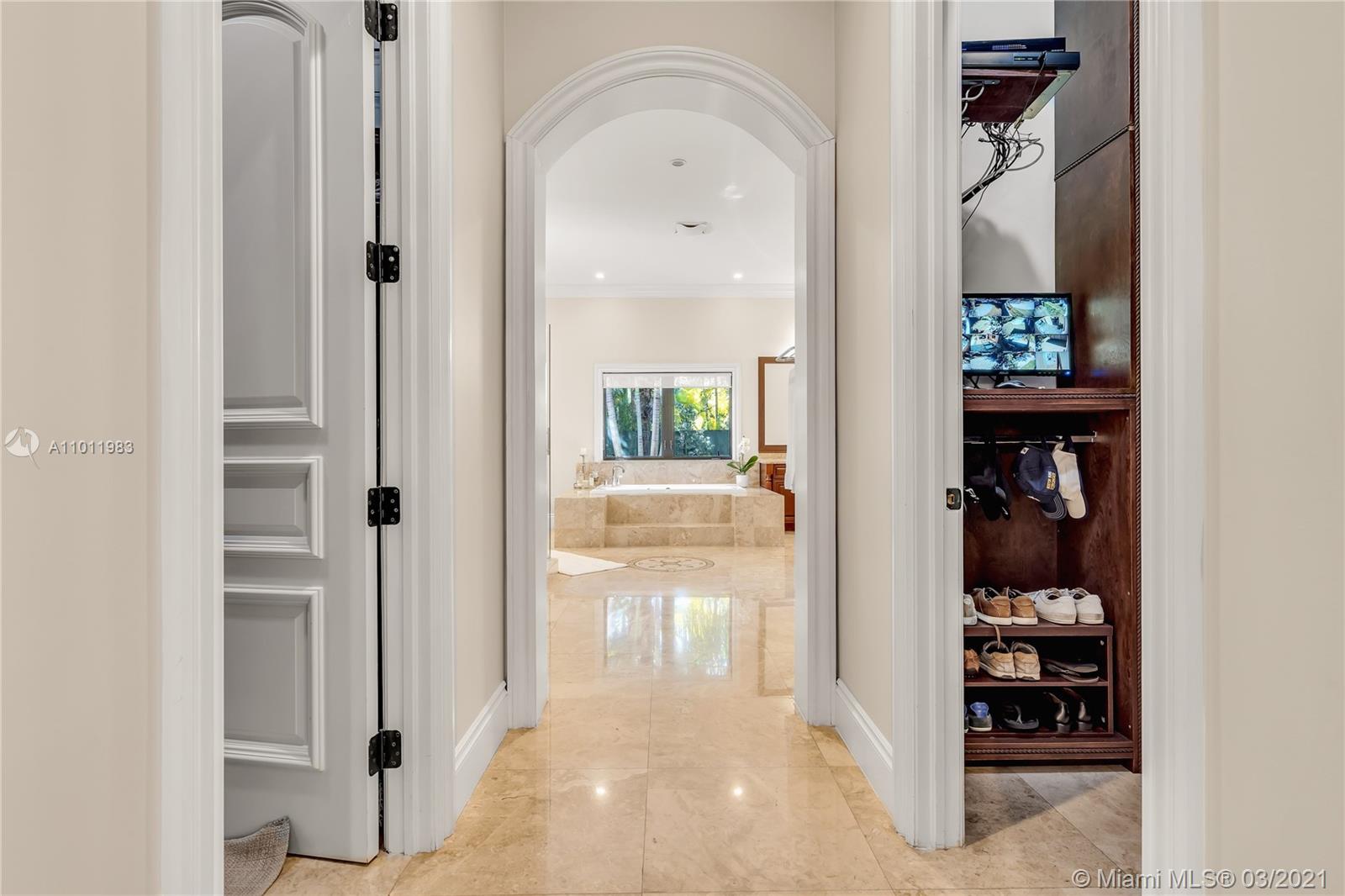 Stunning gated Mediterranean Estate tucked away on a pretty and serene street in the heart of Pinecrest. Imposing entry with cathedral ceiling, marble floors throughout, high impact windows & doors. Formal living and dining rooms, gourmet kitchen opens to Family room overlooking back patio. 6Bd, 6Bath plus additional office. Lavish Master bedroom and bath offers his and hers walk-in closets, whirlpool bathtub and sauna. 750 bottle A/C wine cellar room. Expansive terrace with one-of-a-kind Argentinian BBQ. Pool, Spa and Basketball Court. Security cameras and air-conditioned 3 car Garage. Few blocks away from Pinecrest Gardens and top public & private schools.