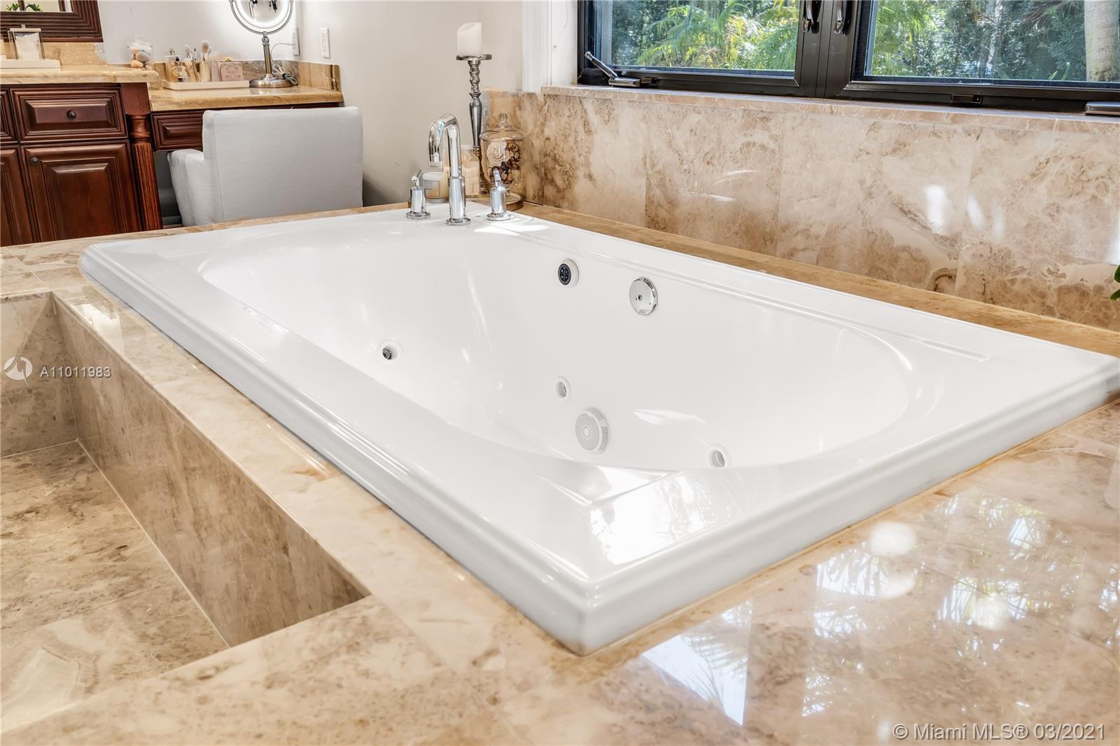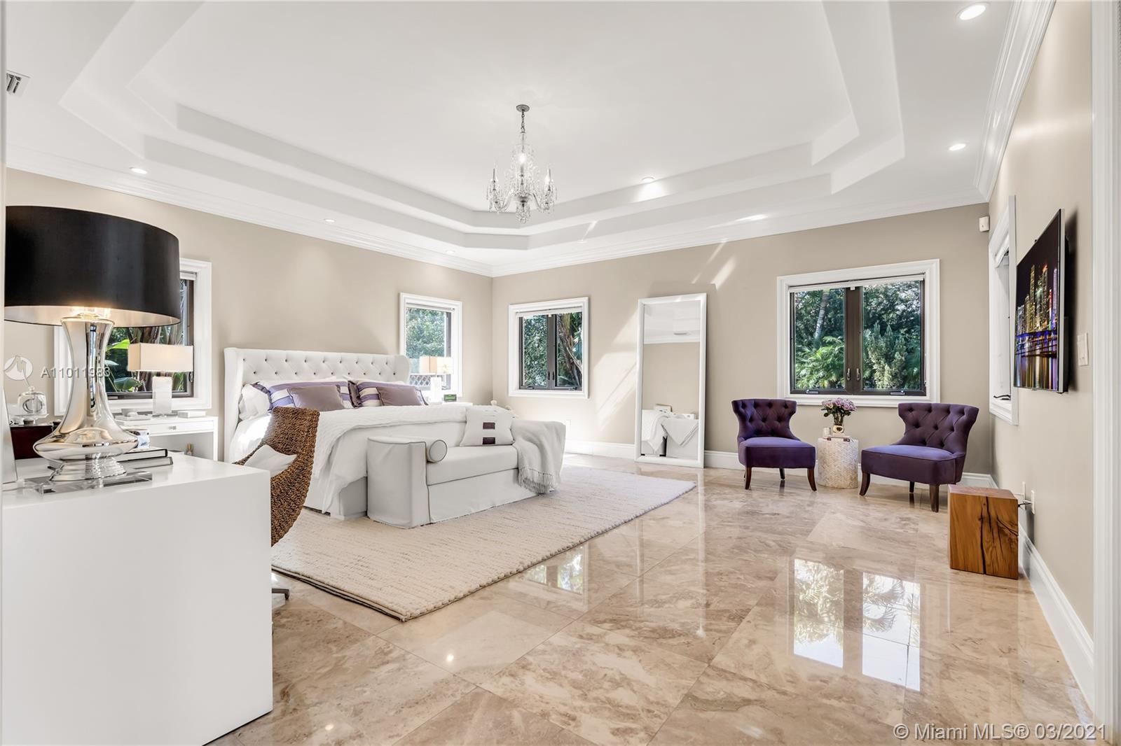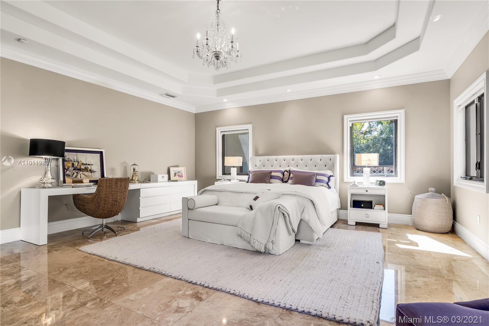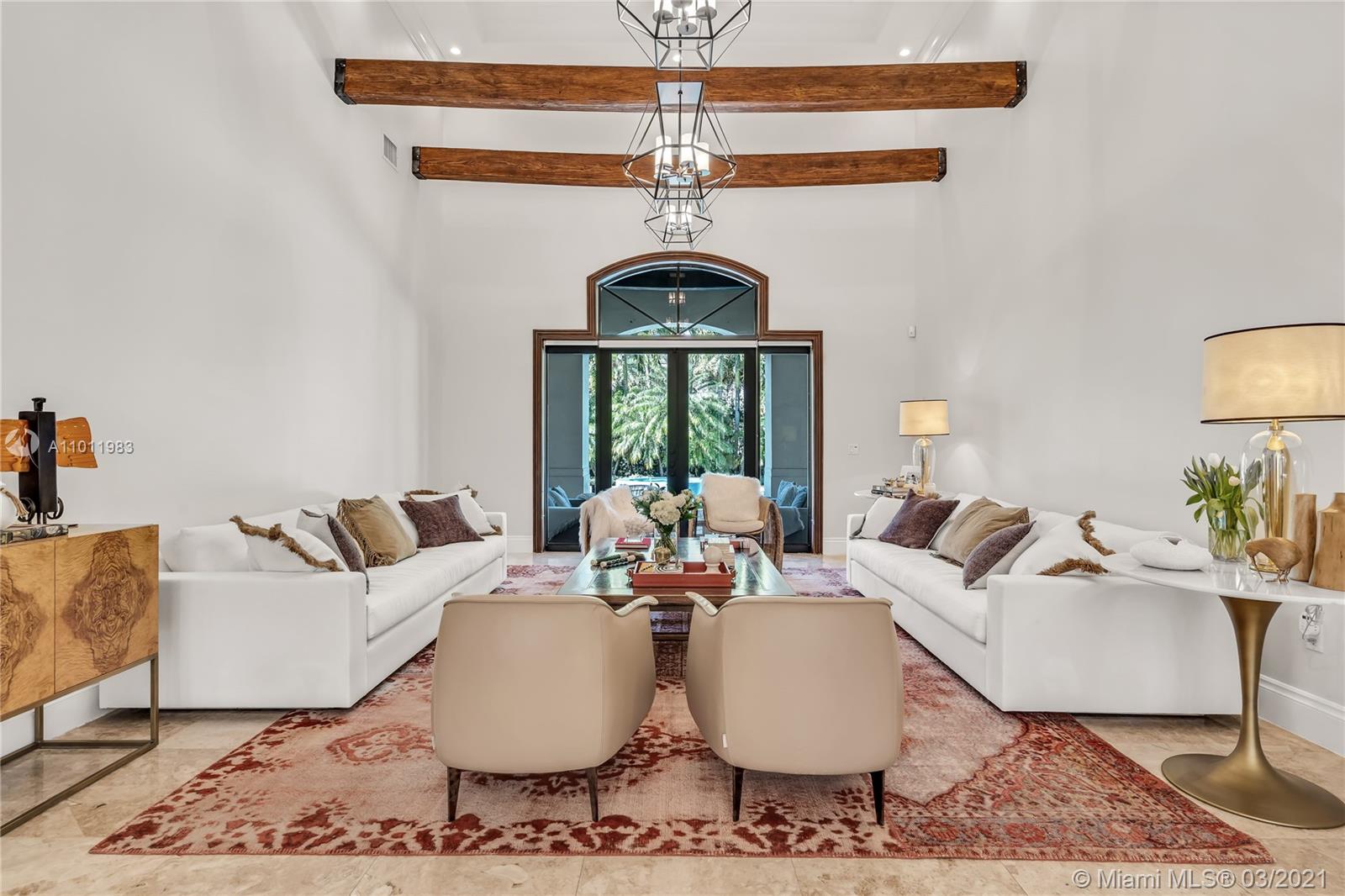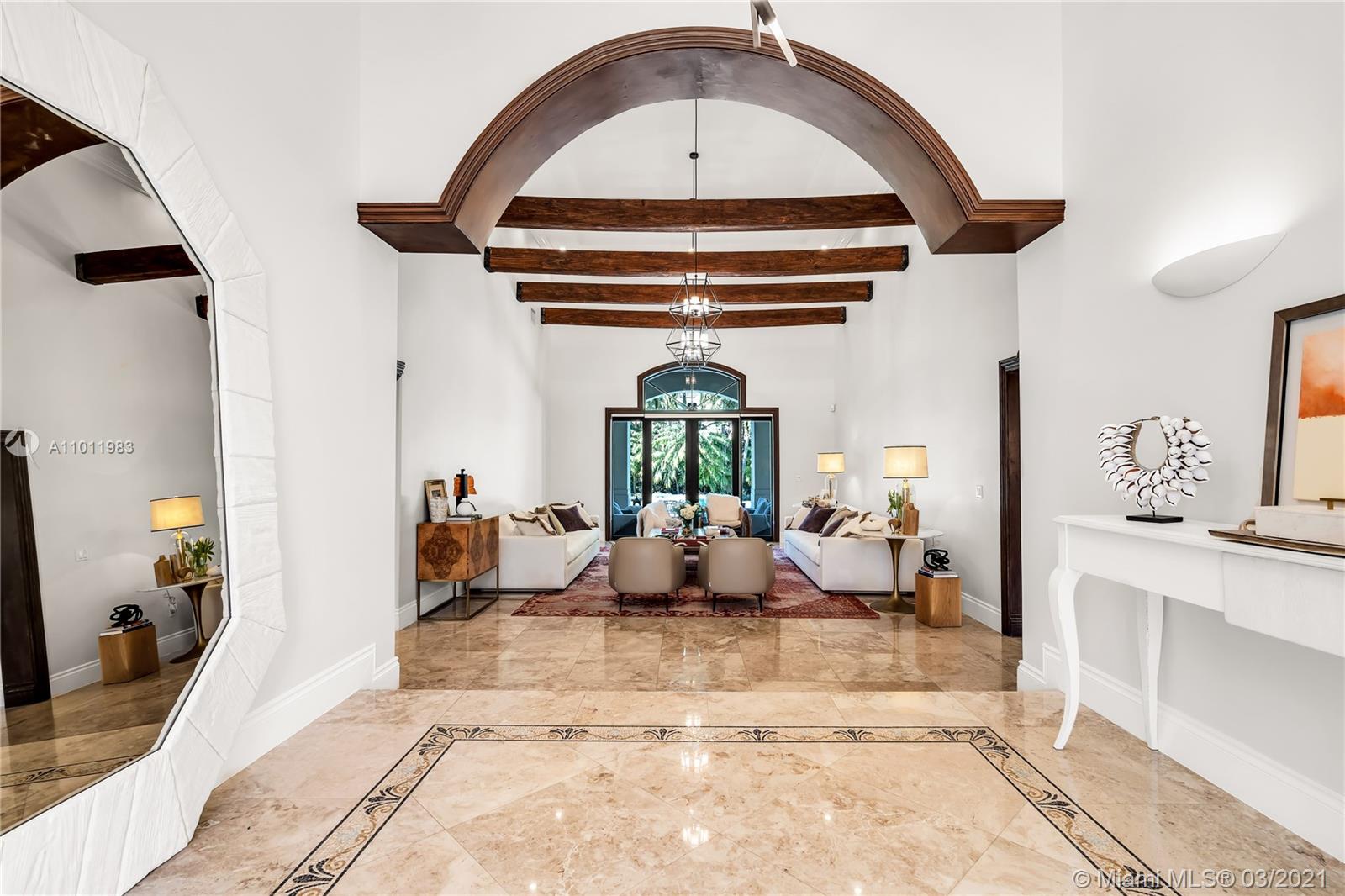 Stunning gated Mediterranean Estate tucked away on a pretty and serene street in the heart of Pinecrest. Imposing entry with cathedral ceiling, marble floors throughout, high impact windows & doors. Formal living and dining rooms, gourmet kitchen opens to Family room overlooking back patio. 6Bd, 6Bath plus additional office. Lavish Master bedroom and bath offers his and hers walk-in closets, whirlpool bathtub and sauna. 750 bottle A/C wine cellar room. Expansive terrace with one-of-a-kind Argentinian BBQ. Pool, Spa and Basketball Court. Security cameras and air-conditioned 3 car Garage. Few blocks away from Pinecrest Gardens and top public & private schools.