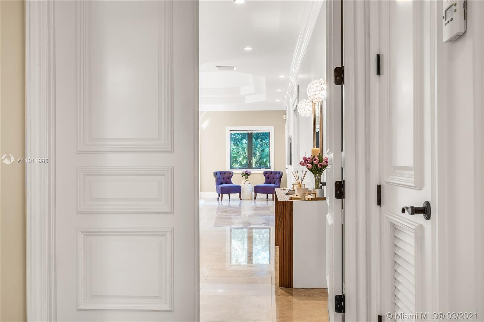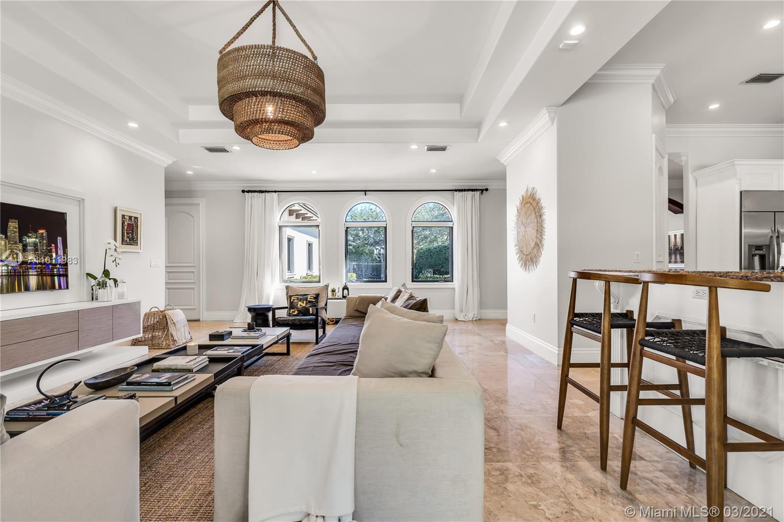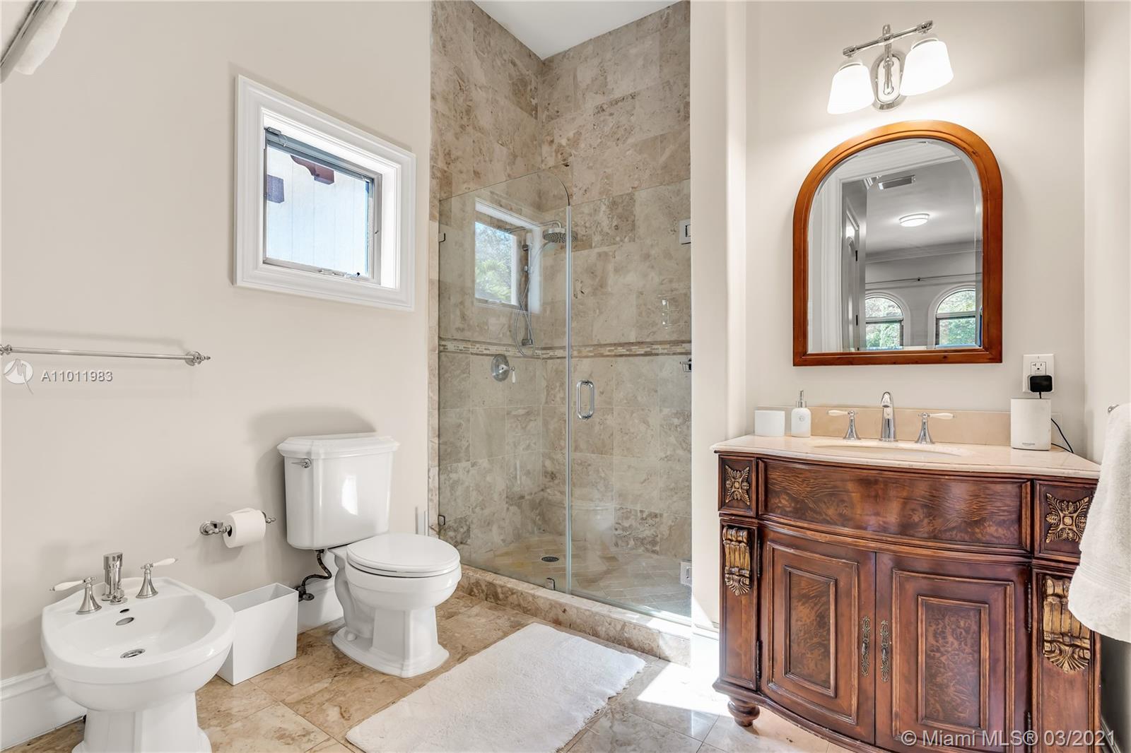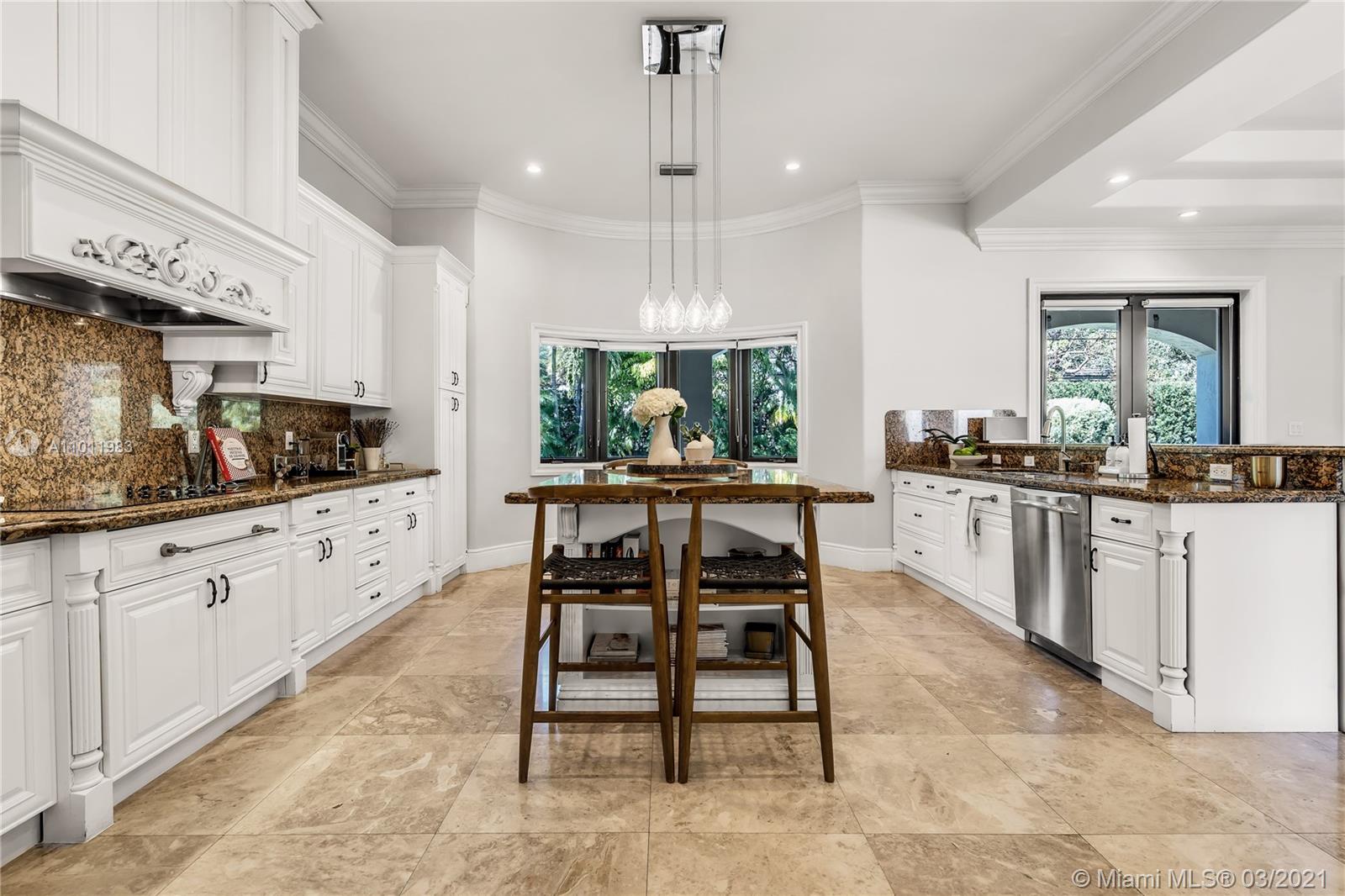 Stunning gated Mediterranean Estate tucked away on a pretty and serene street in the heart of Pinecrest. Imposing entry with cathedral ceiling, marble floors throughout, high impact windows & doors. Formal living and dining rooms, gourmet kitchen opens to Family room overlooking back patio. 6Bd, 6Bath plus additional office. Lavish Master bedroom and bath offers his and hers walk-in closets, whirlpool bathtub and sauna. 750 bottle A/C wine cellar room. Expansive terrace with one-of-a-kind Argentinian BBQ. Pool, Spa and Basketball Court. Security cameras and air-conditioned 3 car Garage. Few blocks away from Pinecrest Gardens and top public & private schools.