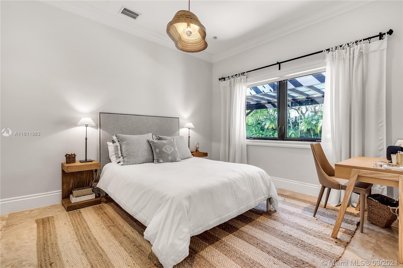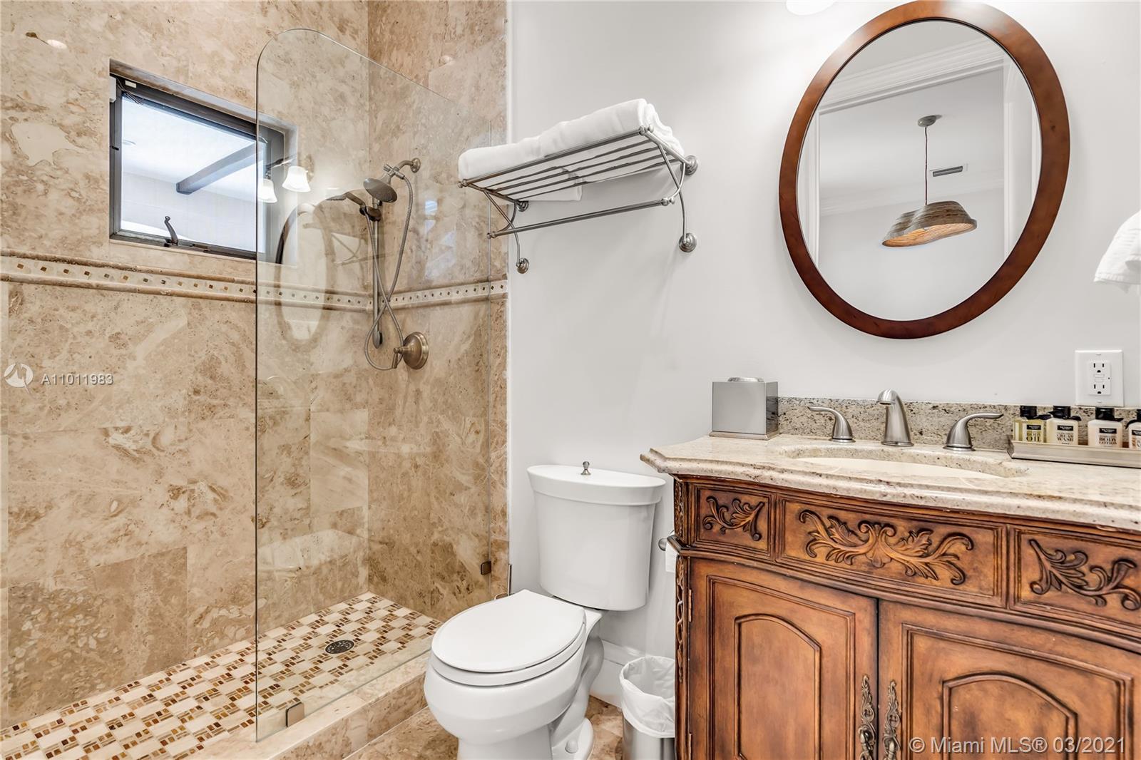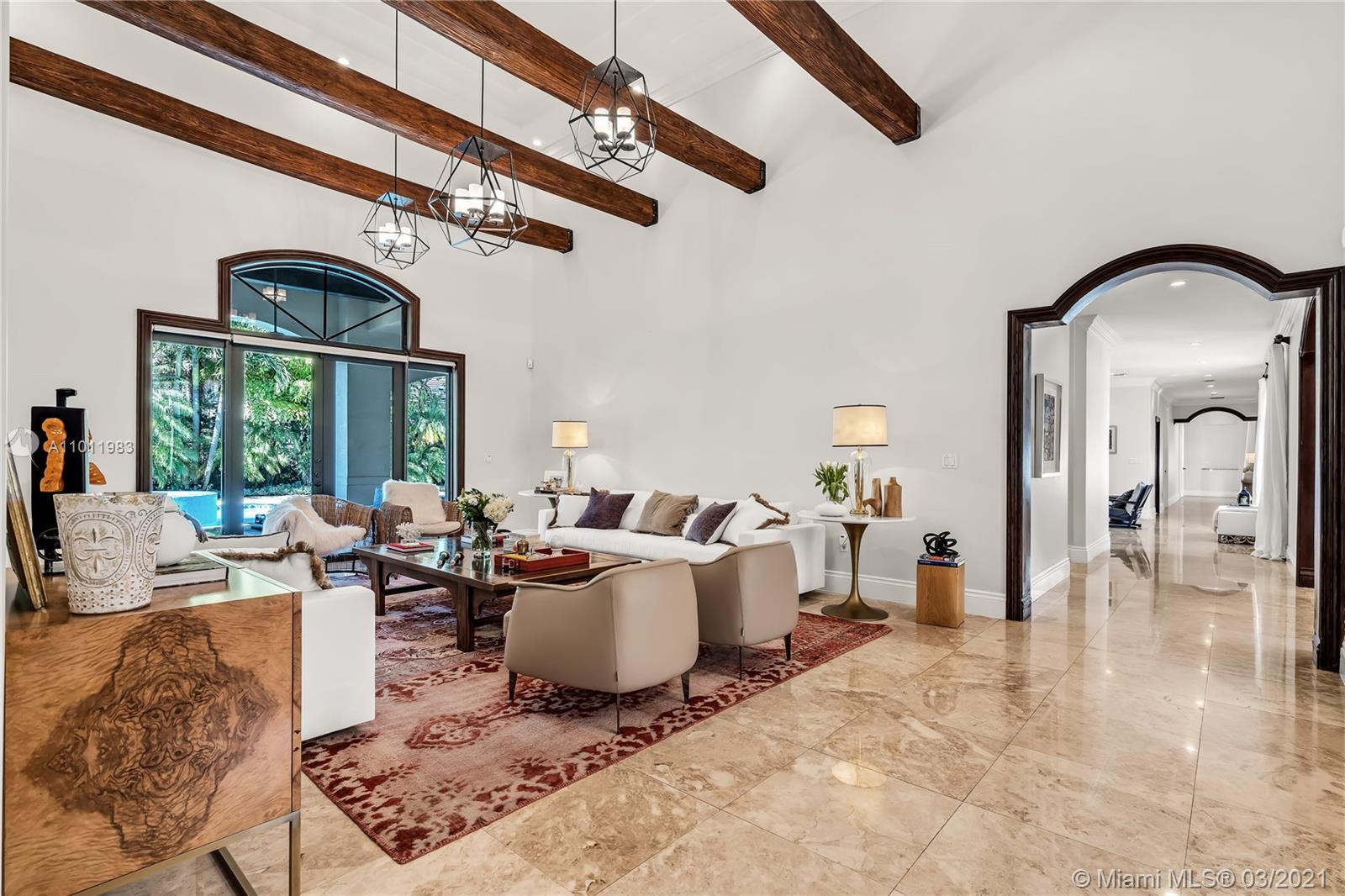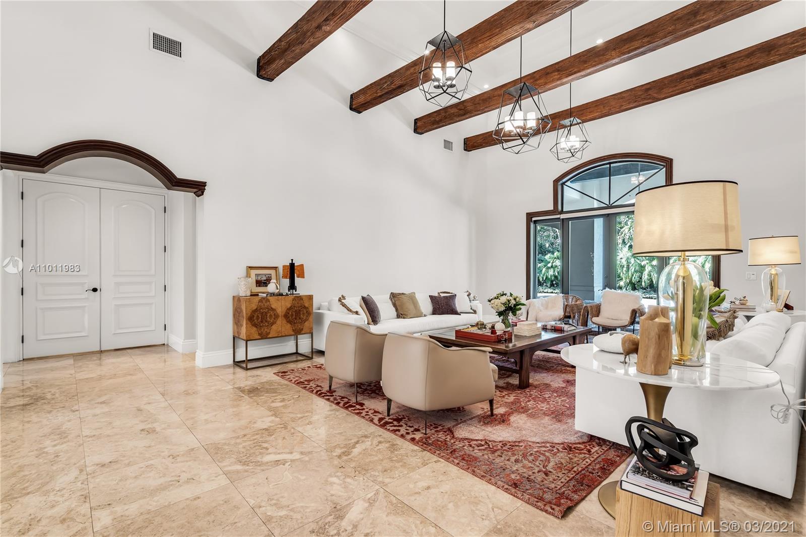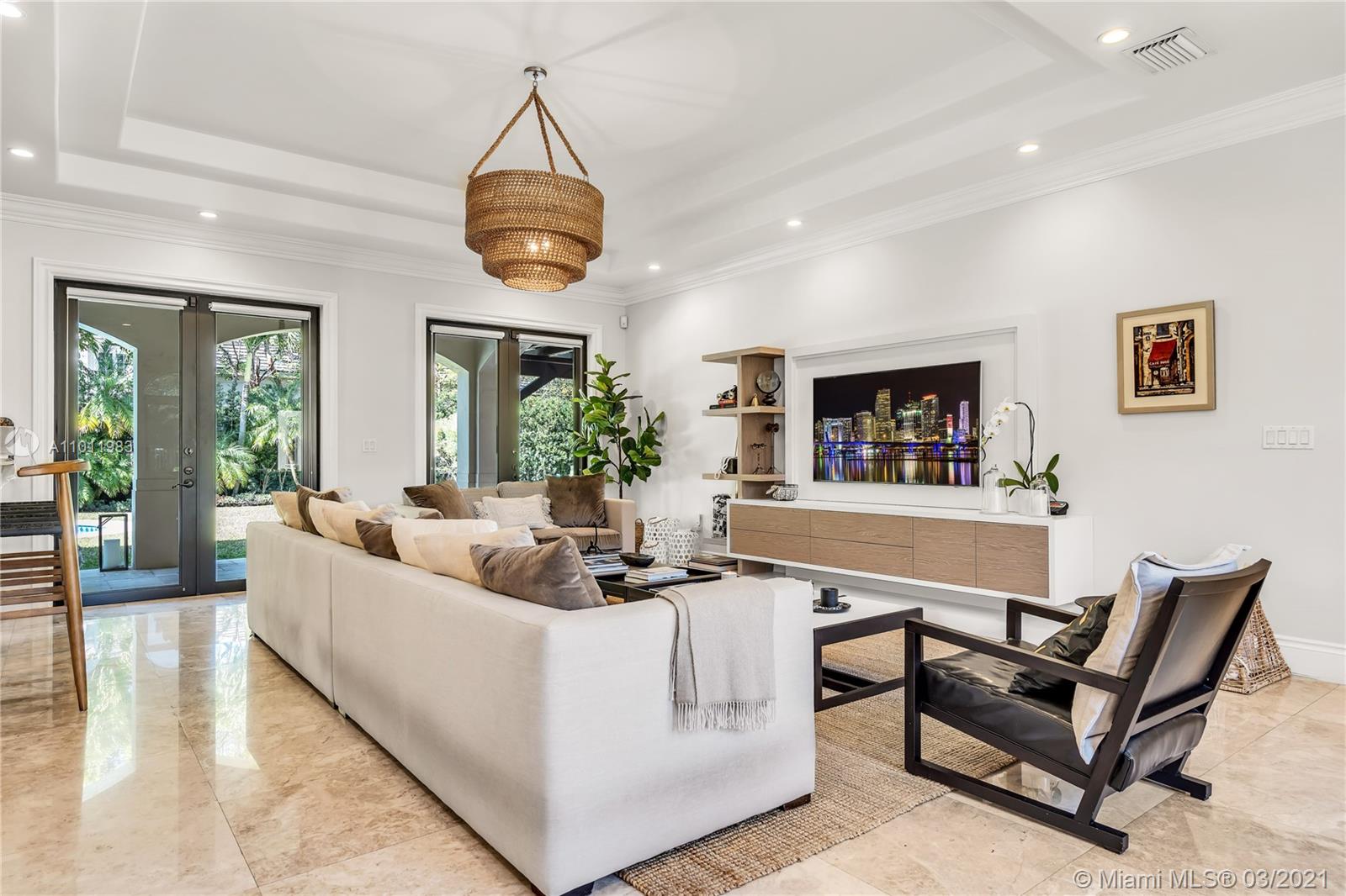 Stunning gated Mediterranean Estate tucked away on a pretty and serene street in the heart of Pinecrest. Imposing entry with cathedral ceiling, marble floors throughout, high impact windows & doors. Formal living and dining rooms, gourmet kitchen opens to Family room overlooking back patio. 6Bd, 6Bath plus additional office. Lavish Master bedroom and bath offers his and hers walk-in closets, whirlpool bathtub and sauna. 750 bottle A/C wine cellar room. Expansive terrace with one-of-a-kind Argentinian BBQ. Pool, Spa and Basketball Court. Security cameras and air-conditioned 3 car Garage. Few blocks away from Pinecrest Gardens and top public & private schools.