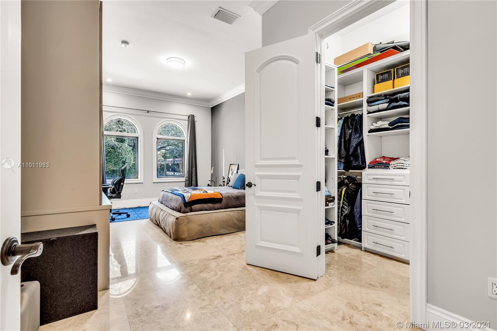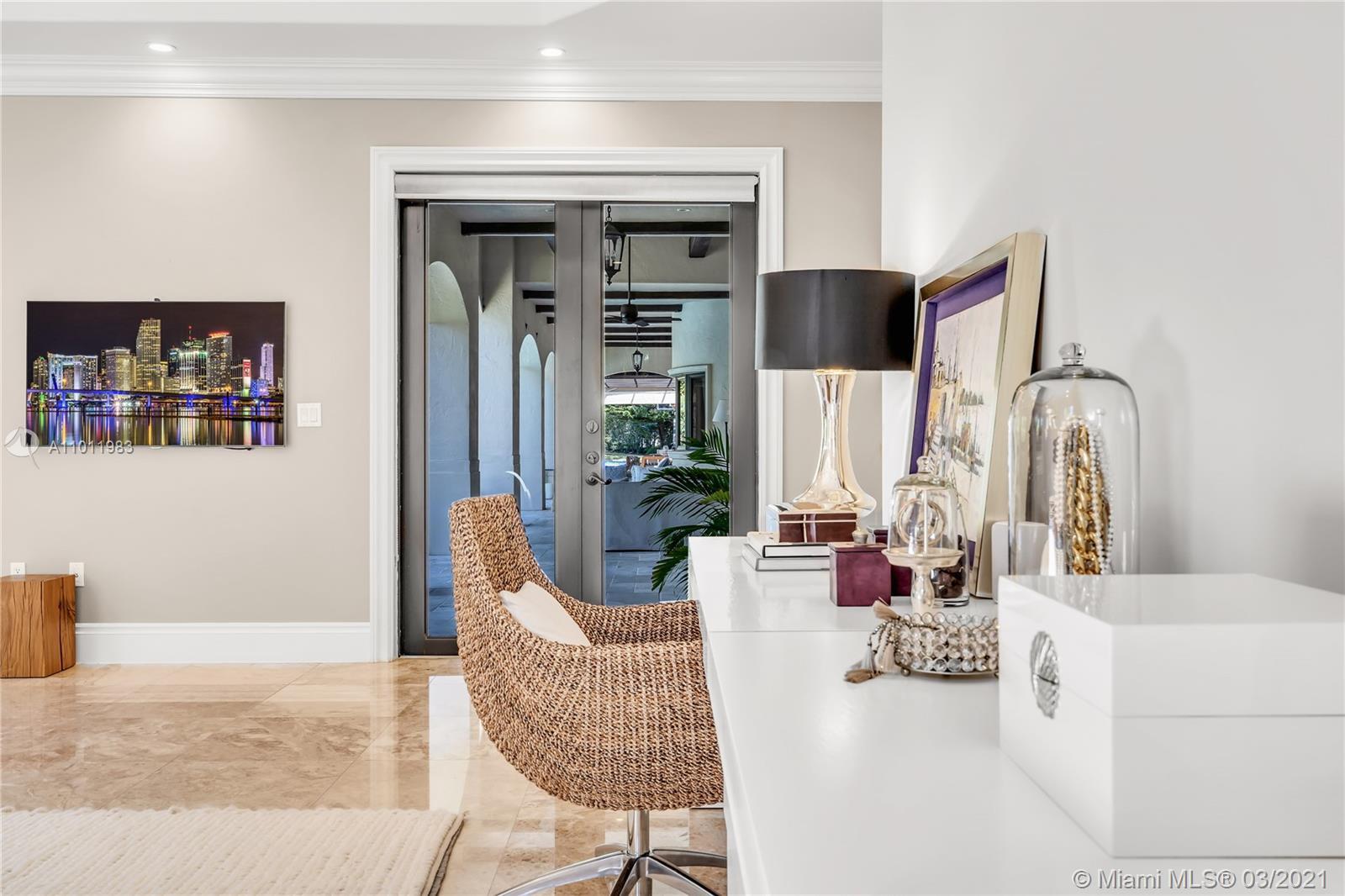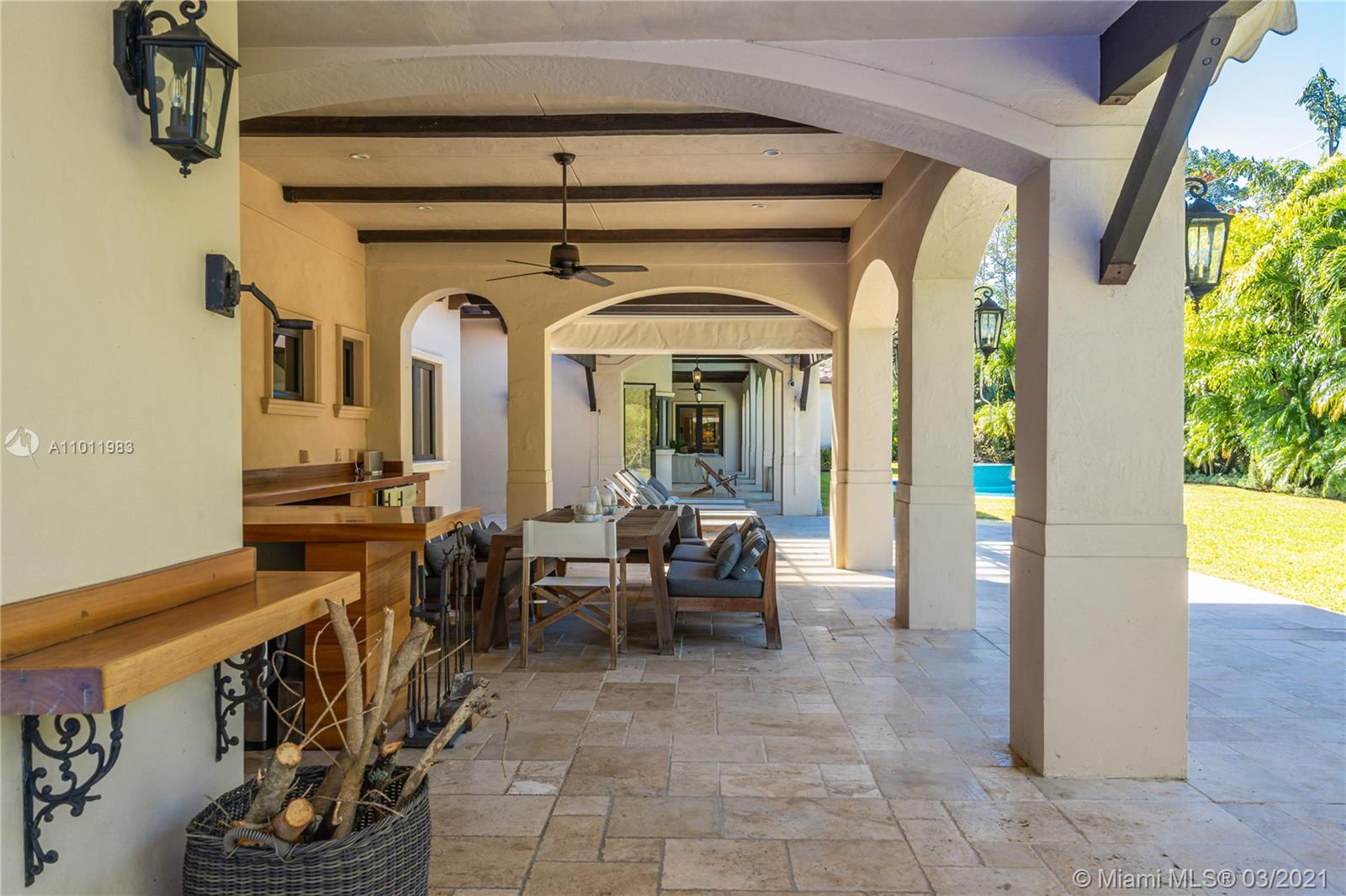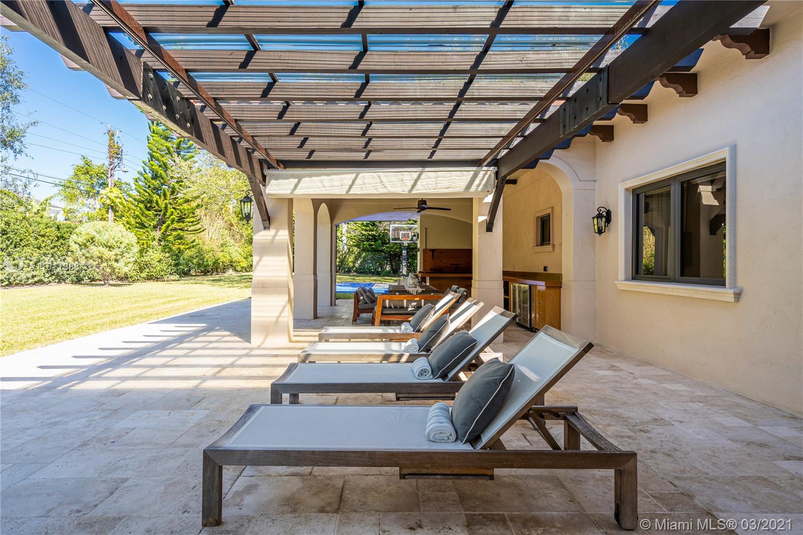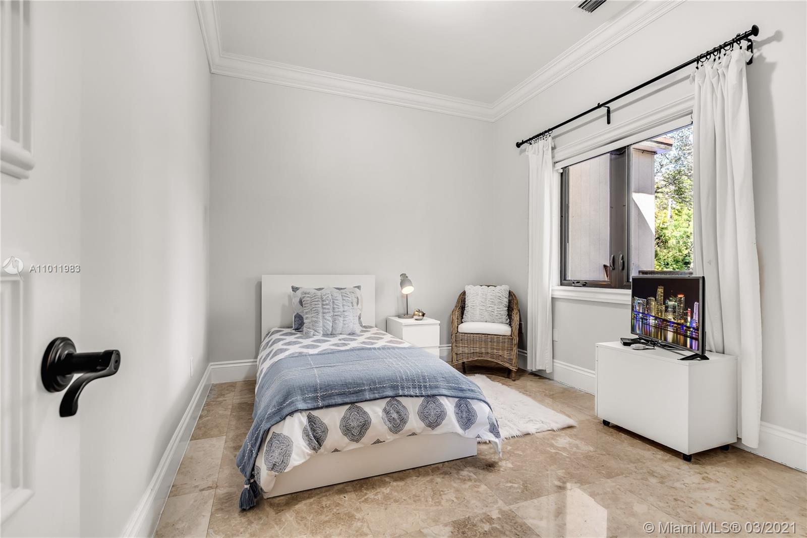 Stunning gated Mediterranean Estate tucked away on a pretty and serene street in the heart of Pinecrest. Imposing entry with cathedral ceiling, marble floors throughout, high impact windows & doors. Formal living and dining rooms, gourmet kitchen opens to Family room overlooking back patio. 6Bd, 6Bath plus additional office. Lavish Master bedroom and bath offers his and hers walk-in closets, whirlpool bathtub and sauna. 750 bottle A/C wine cellar room. Expansive terrace with one-of-a-kind Argentinian BBQ. Pool, Spa and Basketball Court. Security cameras and air-conditioned 3 car Garage. Few blocks away from Pinecrest Gardens and top public & private schools.