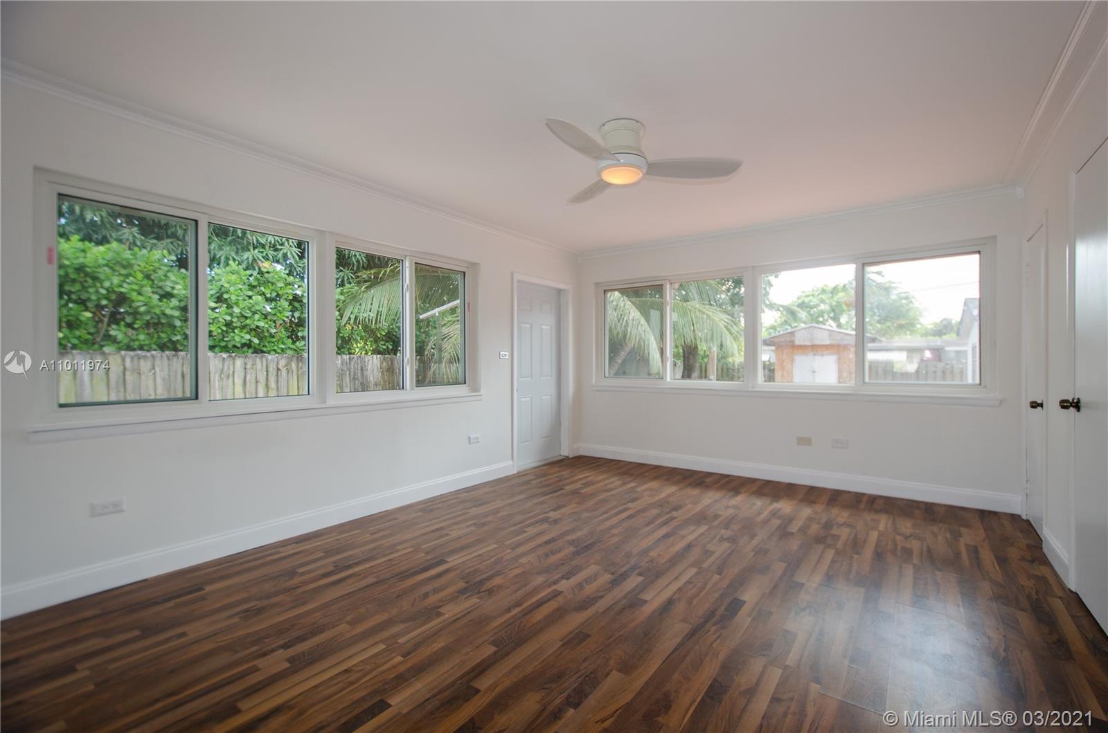 Just Listed! Truly a North Miami Charmer! 3bd/2ba with a detached garage. Wood laminate flooring throughout the house, freshly painted, fireplace in the living room. An absolutely HUGE master bedroom with newer windows. It overlooks the backyard area. The kitchen has white kitchen cabinets, glass backsplash with acacia butcherblock counter tops that will not disappoint. The backyard is very entertainment friendly, it has a small outdoor kitchen. The detached garage is very large, probably around 500sqft maybe less, it has plumbing and electrical, it was used as a workshop. Could easily be converted to an office for households that WFH or a mancave. Easy to show.