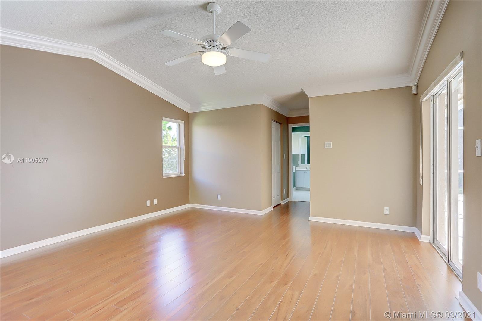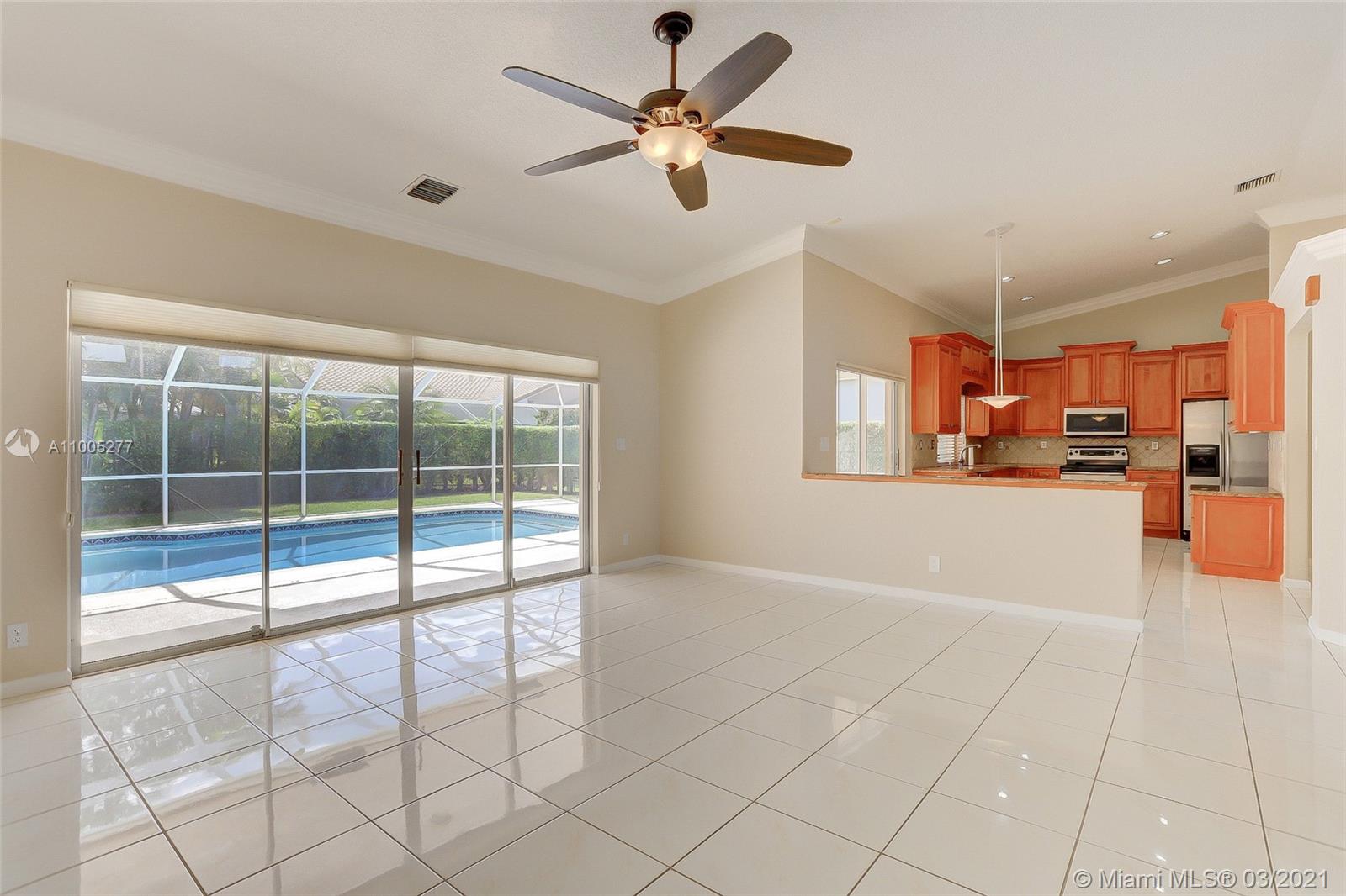Crisp, light, bright & airy with soaring vaulted ceilings, this beautiful home is perfectly kept by original owner. Features include warm, upgraded kitchen w/granite and stainless appliances. The screened swimming pool with color changing lighting offers ample covered patio for outdoor dining and fun. Nice size bedrooms have built-in closet cabinetry, and 4th bedroom currently serves as an office. Owner's suite is spacious with excellent closet space and pretty bathroom w/double sinks, separate shower and yummy roman tub. This beauty is well cared for, is tastefully appointed with neutral tile and warm laminate flooring. Finishing touches include knockdown walls and ceilings and crown molding, dual zone a/c and hurricane shutters. Amazing neighborhood with top rated schools. Welcome Home!