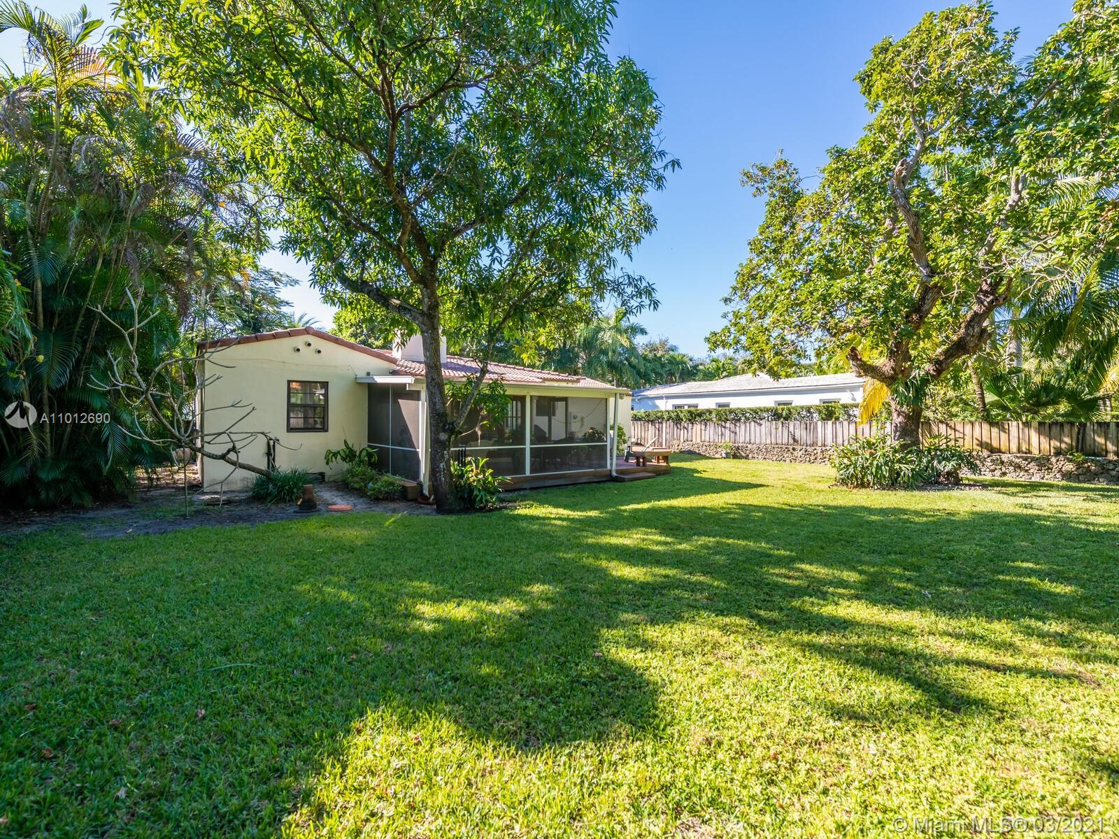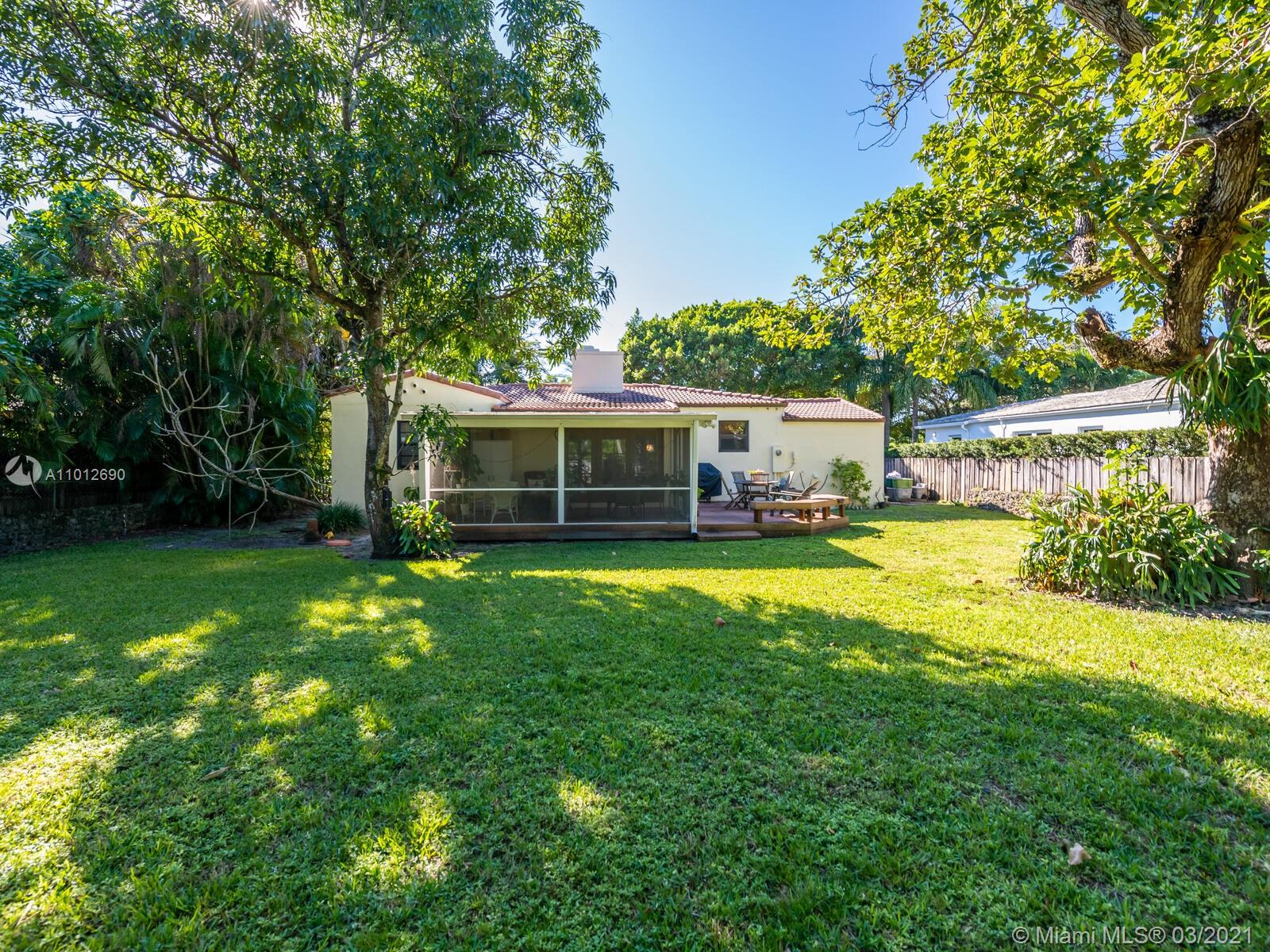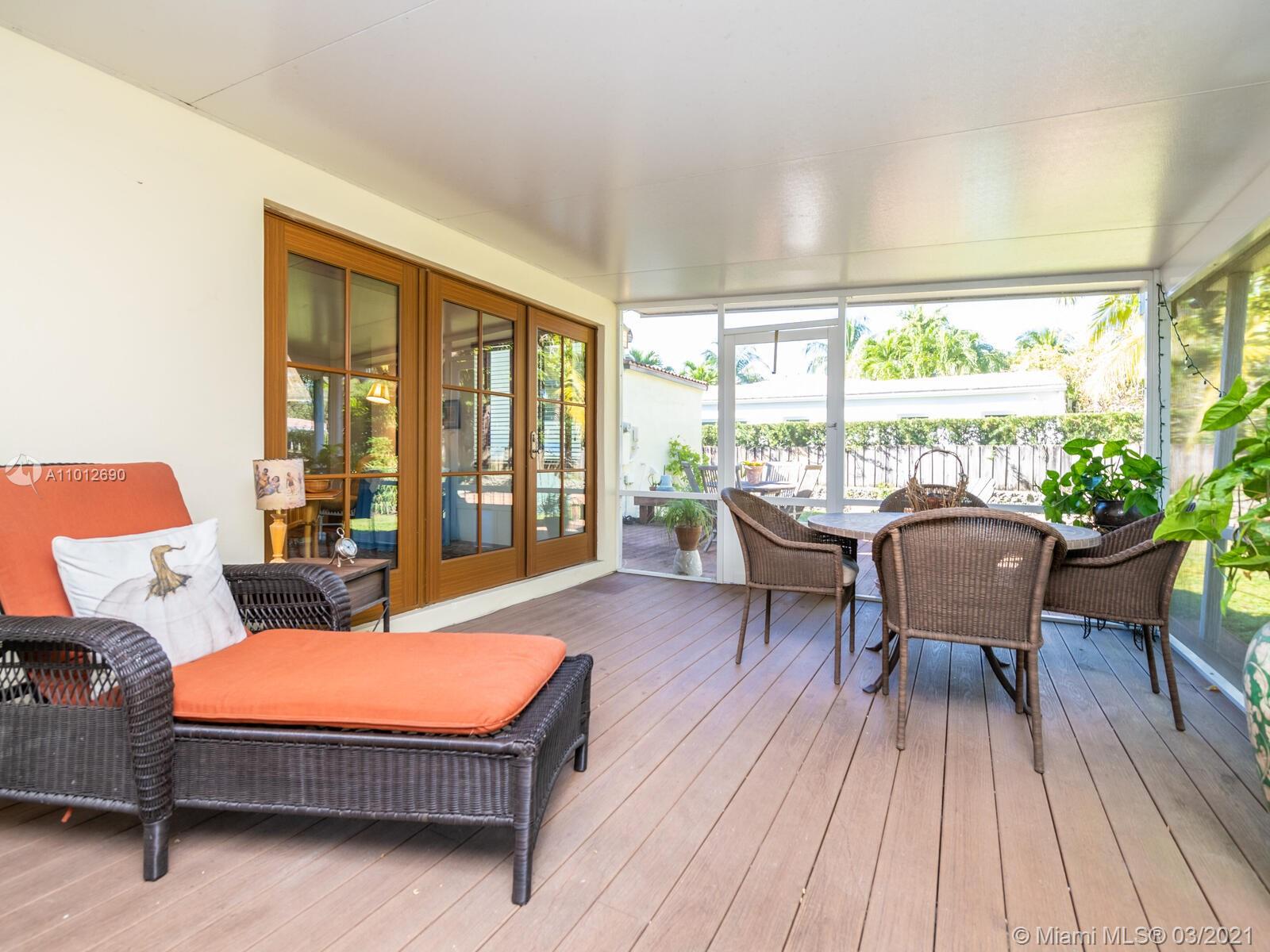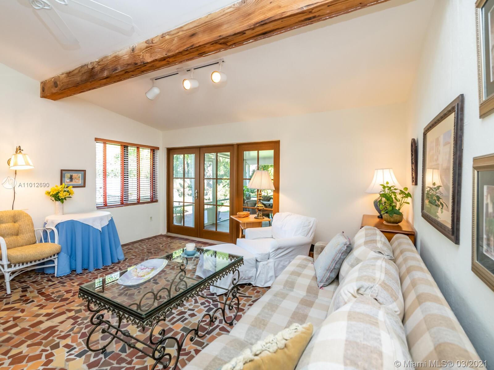 Warm & welcoming "Classic Miami Shores Charmer"! What everyone is looking for....a place to call 'home' with an authentic Chicago Brick driveway and walkway, leading to a front landing and steps with original Art Deco carved masonry. Polished wood floors and comfortable living room and dining room boast high ceilings. The family room has vaulted ceilings with a modern farmhouse twist of rustic wood tie beam and new Impact windows & doors throughout! Entertain galore!...Family rm opens to spacious screened porch extends to an additional open deck & huge fenced back yd lined by coral rock walls--one-of-a-kind original architectural details.