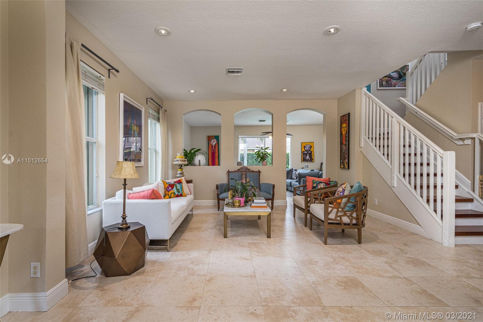 Beautiful CORNER LOT HOUSE 5 BR & 3.5 Baths +3 car garage with pool. Marble floor, stainless steel appl, wine fridge, granite counter & wood cabinets; front load washer & dryer; cherry wood in stairs and 2nd floor, huge loft area, large master bedroom & bath, walk-in closets, freeform salt system heated pool + jacuzzi, stainless steel outdoor kitchen w/granite top. Clubhouse: Gym, game & billiard, pool, playground, volley & basket. Guard gate. A+ schools. Floor plan available as attachment on the MLS listing.
