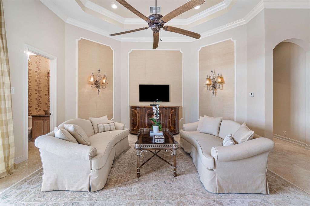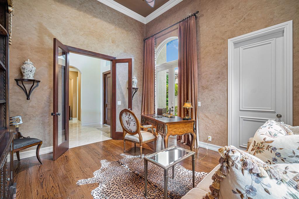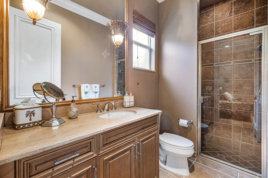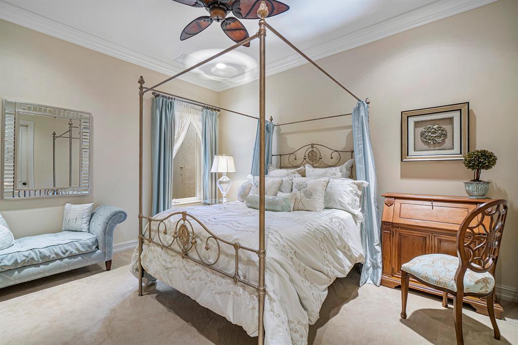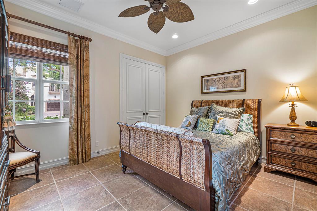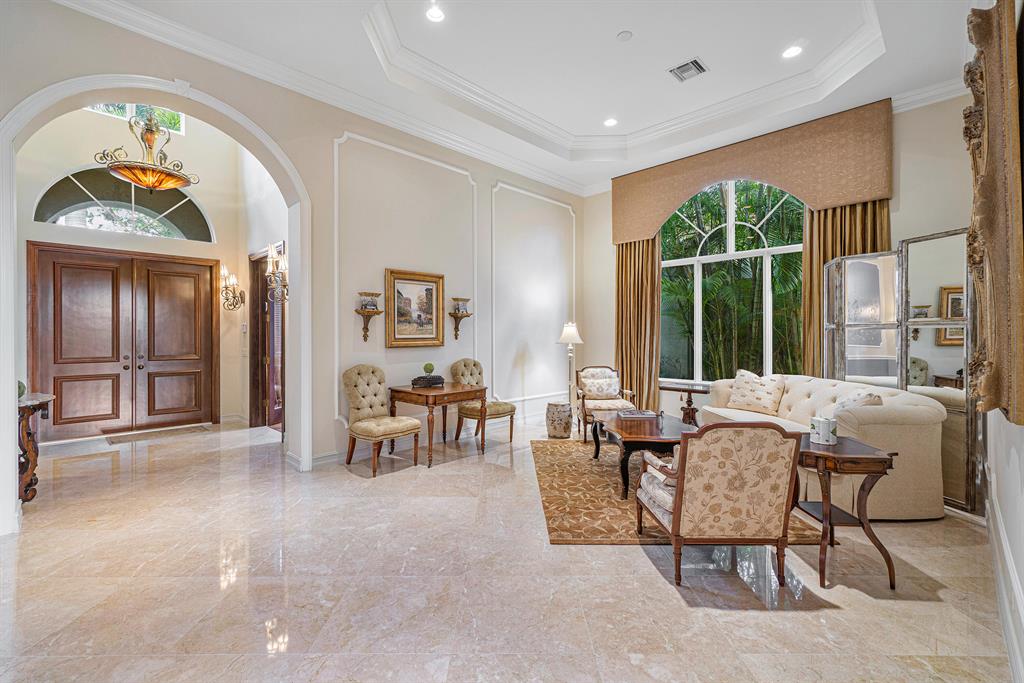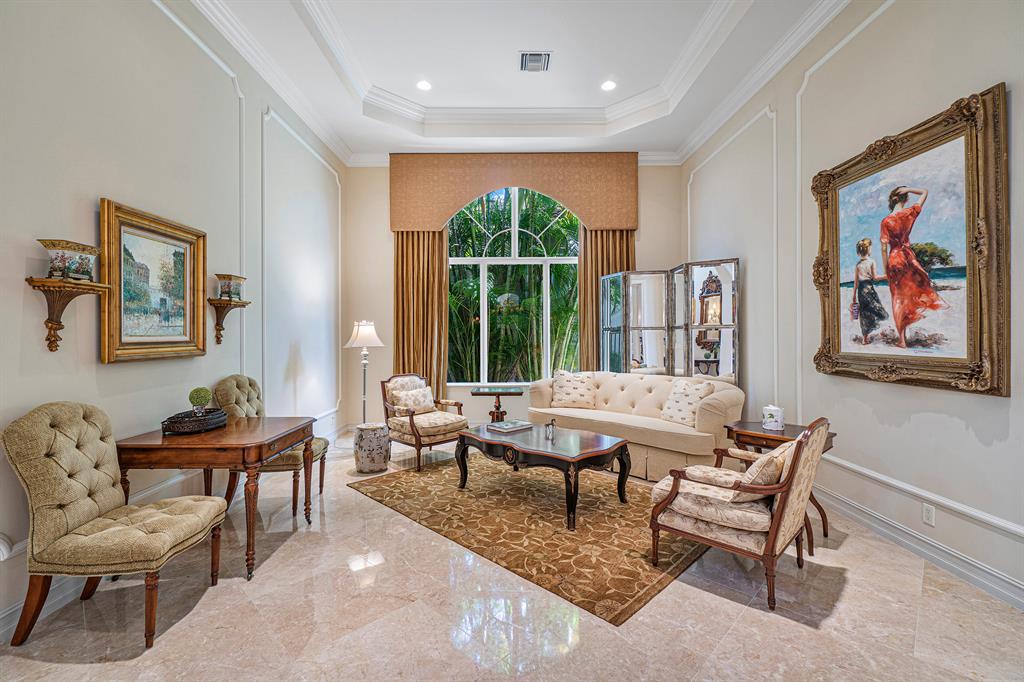 This magnificent Martinique is on a prime private lake lot and features 3 en-suite bedrooms plus a library/4th bedroom, 3 full and 1 half baths - all on one single level, w/ a triple-split floor plan including a private guest house. Highlights include marble floors thru-out the main living areas, wood floors in the office, a gourmet chef's kitchen with stainless steel appliances, wood cabinetry, granite countertops, & is open to a spacious family room. Designer appointments include architectural millwork, light fixtures, and artistic details. The master features his & hers walk-in closets, and a luxurious master bath w/ separate vanities including a makeup vanity. With full impact glass, brand new A/Cs & a heated pool and spa. This home is absolutely Stunning!!!