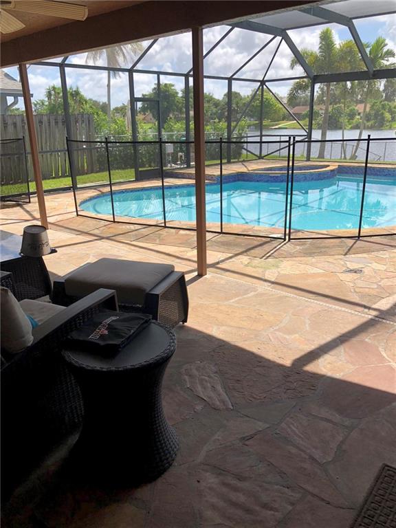 Rarely available 3 bed, 2 bath lakefront pool home in sought-after Davie Lakes Estates. Split floor plan. Stylishly renovated with ceramic tile in the main living areas and laminate flooring in the bedrooms. Open-concept kitchen with granite countertops, stainless steel appliances, & real wood shaker cabinets. Kitchen is adjacent to the laundry room & pantry with smart storage. Bonus living room opens to the patio with shaded deck and screened in lanai. Large fenced yard that extends off of the patio with an additional storage shed. Newer AC. 2 car garage with additional remote controlled AC unit. Attic is fully insulated to keep heating and cooling costs low. Zoned to A+ rated Cooper City schools. No HOA approval required. Fish right from your dock!