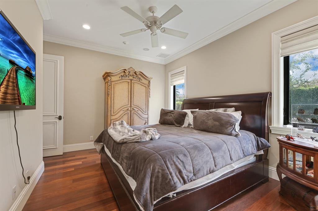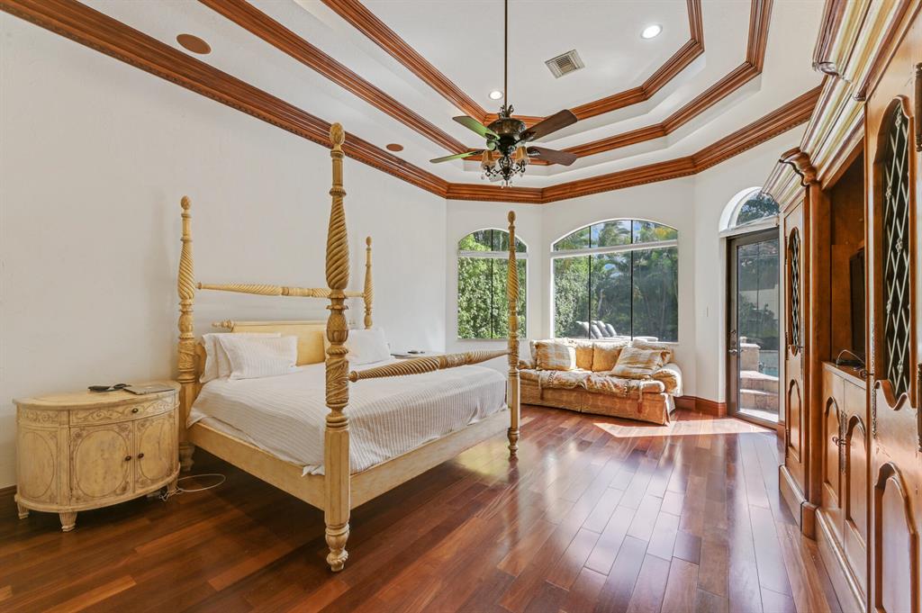 Stunning transitional inspired estate situated on prime corner lot! The desirable open floor plan features expansive living space along with 5 large bedrooms and 5 full baths/2 half baths plus office + media room. This home features beautiful travertine marble floors along with elegant hardwood. The oversized white chefs kitchen has been recently updated with large island and quartz counter tops. Enjoy your favorite movies from the top of the line theatre with custom seating and bar. This home features a full home generator and brand new impact windows are included. Step outside and enjoy the tranquil, private backyard with oversized pool and custom water feature. Amazing Opportunity! The oaks features a stunning newly renovated 25,000 square foot clubhouse with amazing amenities