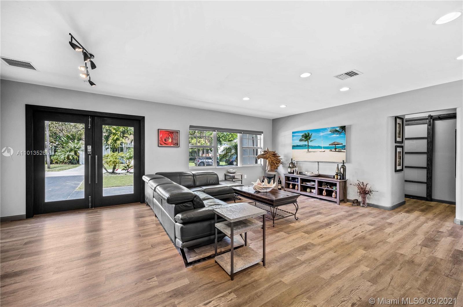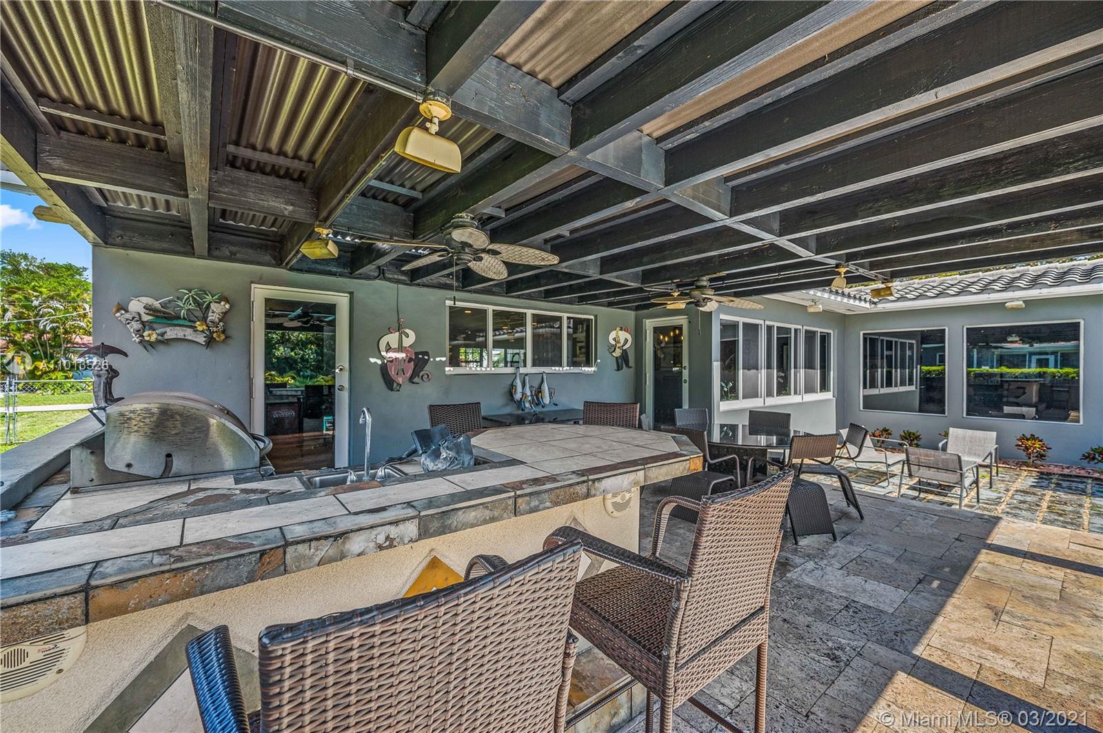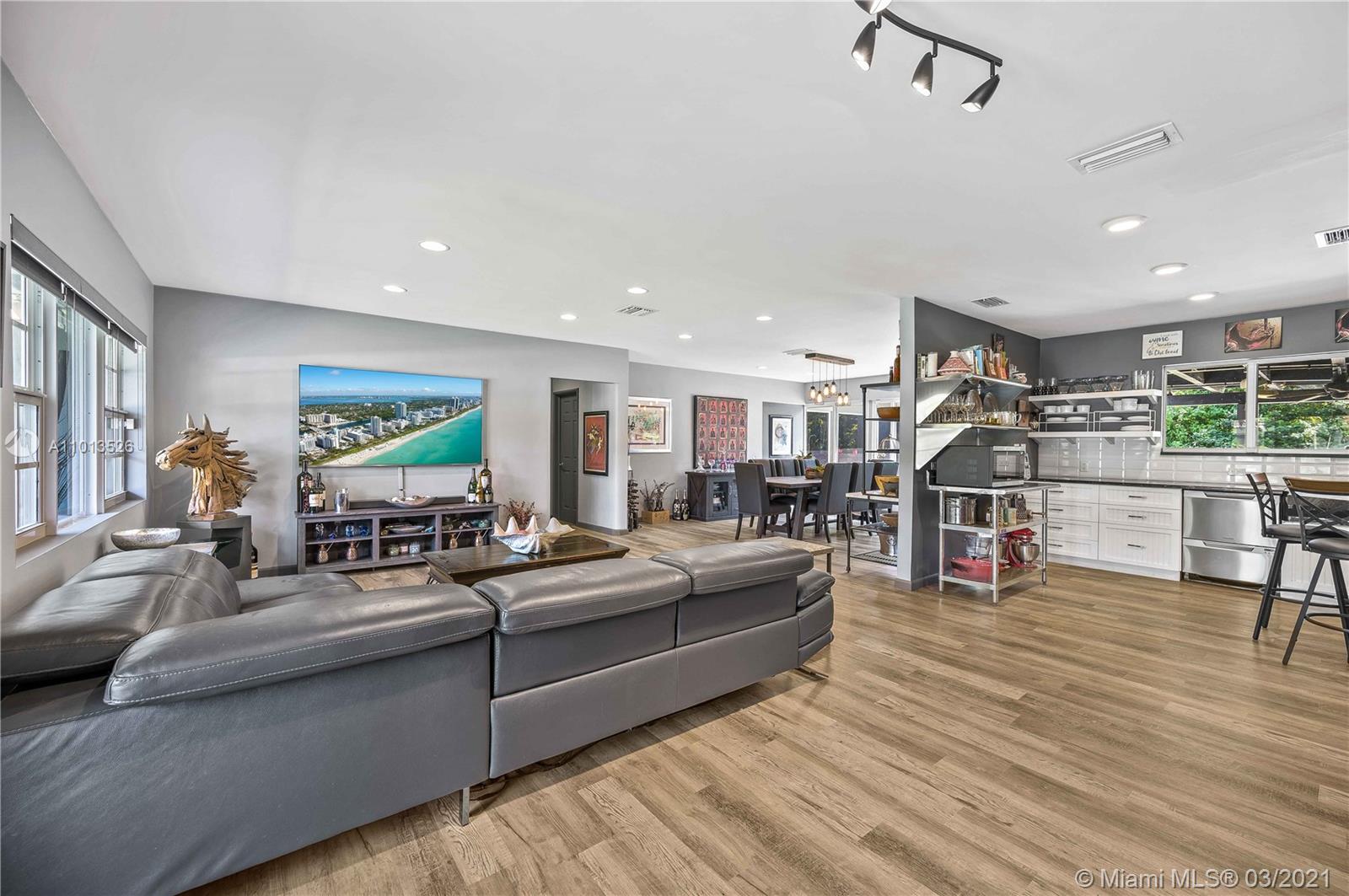 Updated mid-century modern east of Biscayne Blvd in highly desirable Miami Shores neighborhood. This property has been transformed into an entertainer's delight w/ open concept & elevated indoor/outdoor living concept. Interior features include true chef's kitchen w/ Five Star gas range, cast iron grill/griddle, dual wine-coolers, professional exhaust hood, walk-in pantry, & custom kitchen island that comfortably seats six. The open kitchen communicates comfortably w/ the living room & formal dining area, which looks out over the alluring pool terrace. For dining al-fresco, the exterior pergola & outdoor BBQ help to create the ideal atmosphere for enjoying the outdoor space with friends & family. Master-BR wing features an office area, large walk-in closets & more. Impact glass throughout.