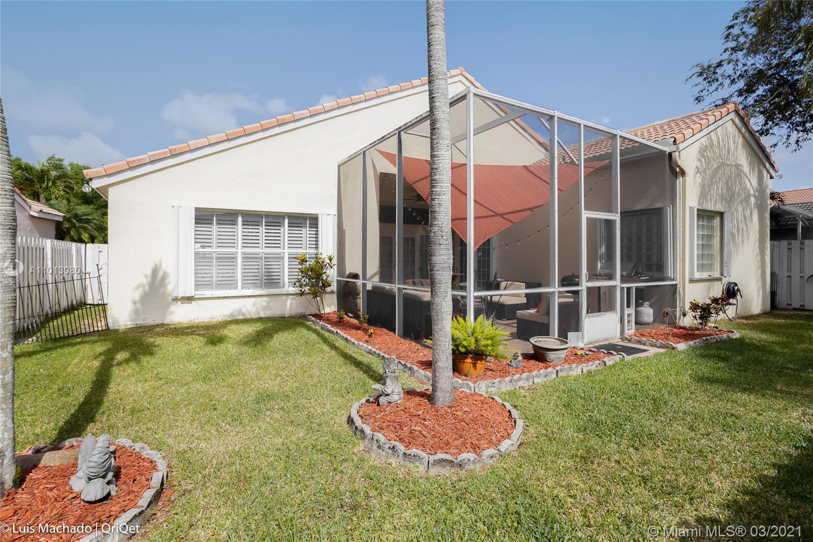 Your new home is nestled in the North Lakes community, a gated Weston community walking distance from Eagle Point Elementary. 4 bedrooms 2 baths, the shared bathroom features a separate double sink area. This floor plan was design with your family in mind; separate living area, dinning room and family room. The back paved Patio & yard are inviting & easy to fall in love with. Welcoming neutral colors, plantation shutters let plenty of natural light in, which will keep you in a fabulous mood. Screened in patio & fenced in private yard, make a great entertaining place. Hurricane accordion shutters on all windows. This great community offers a pool & children play area and you can just walk to school and park. Easy access to I-75, I-595, Sawgrass expressway and more... See you soon!