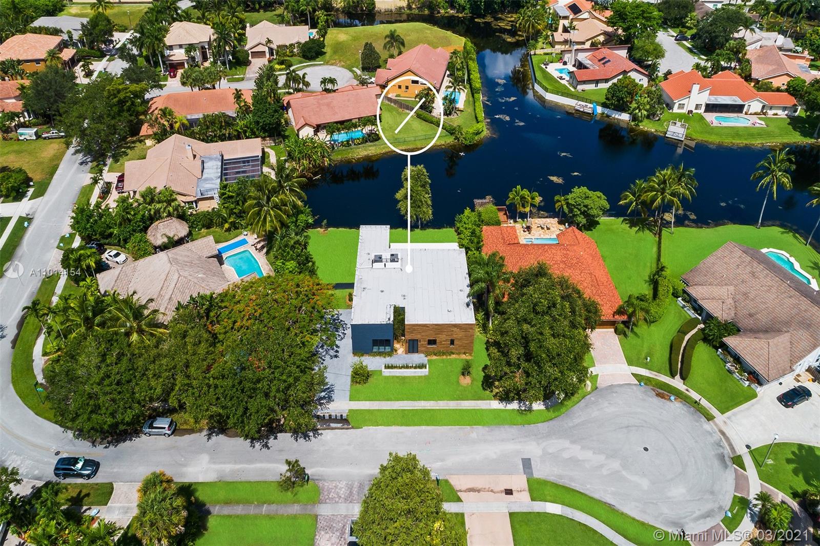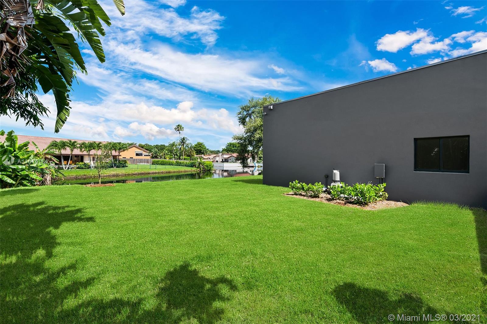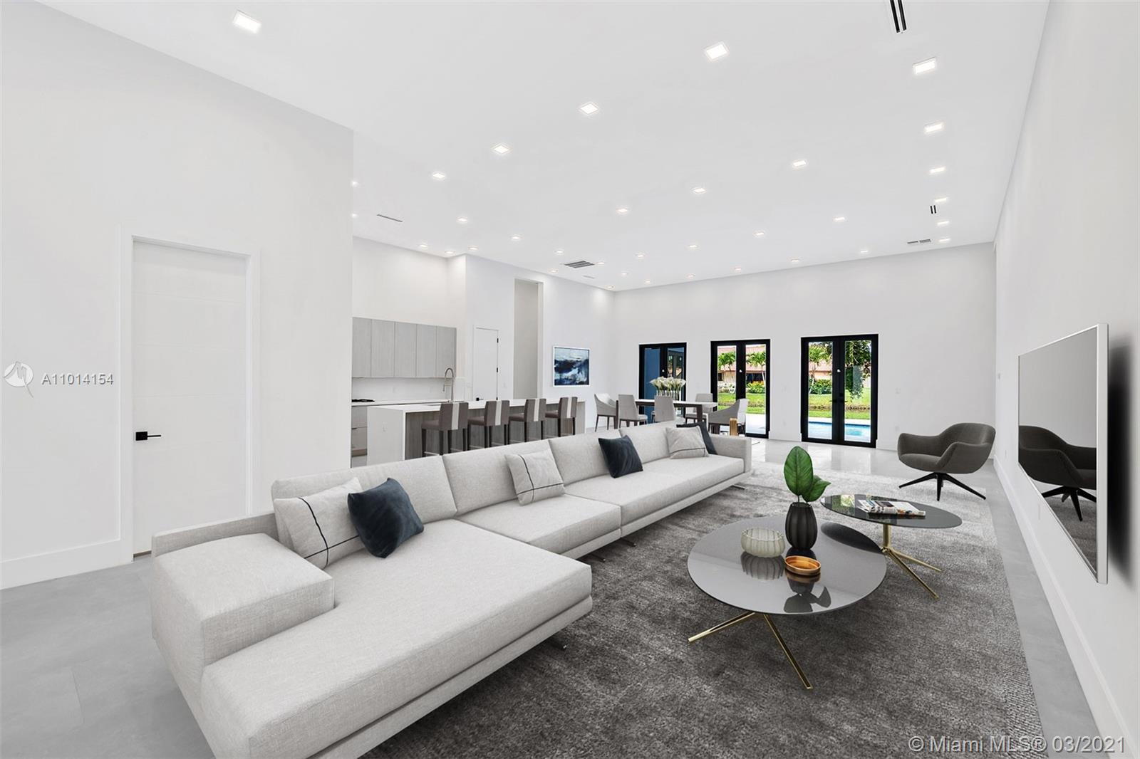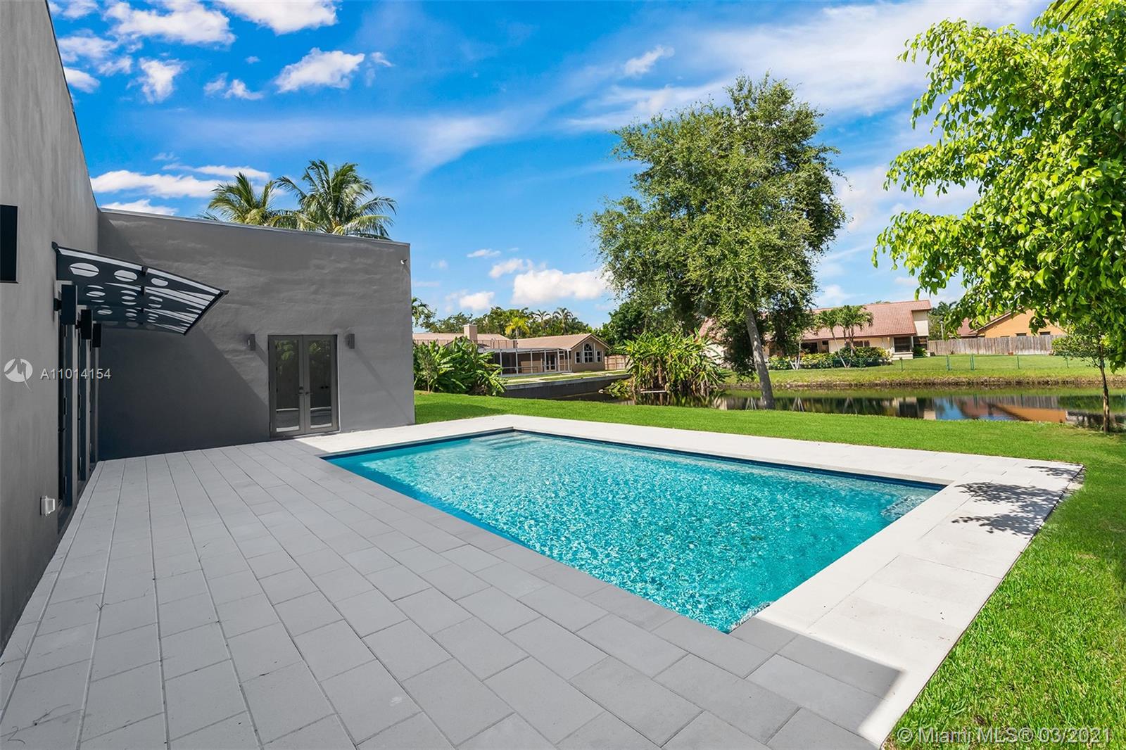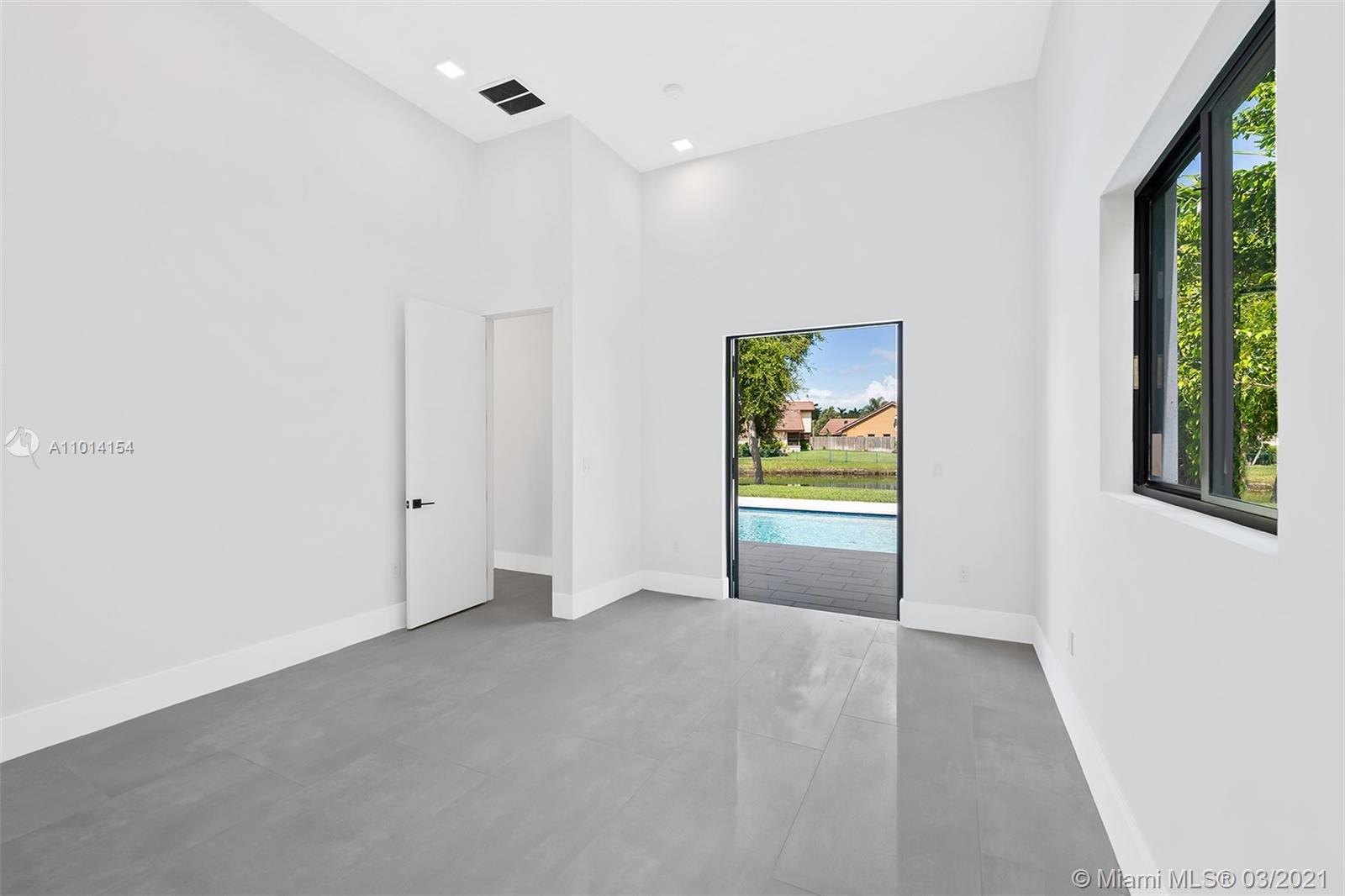 Ultra-Modern Masterpiece, new construction waterfront home. This stunning residence features an open concept floorplan and boasts 6 oversized Bedrooms, 5 ensuite bathrooms and walk-in closets. Expansive master suite with huge walk-in closets, an oversized double rain shower and soaking tub. 14’ ceilings throughout. 48” rectified porcelain tiles throughout. Designer kitchen featuring quartz counters/backsplash, top of the line built-in, energy efficient Bosch stainless steel appliances, winecooler and gas cooktop. Hurricane Impact energy efficient windows/doors. LED lights throughout. Two energy efficient A/Cs, Linear diffusers. Oversized pool and covered area. Located on cue-de-sac in a private country club golf course community walking distance to temples/churches, in top school district.
