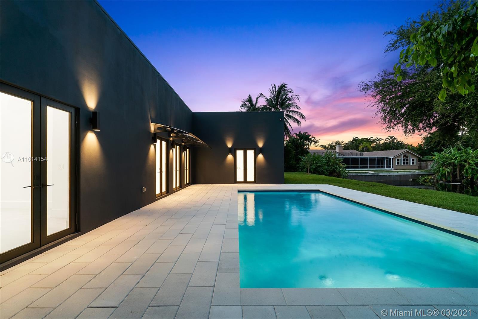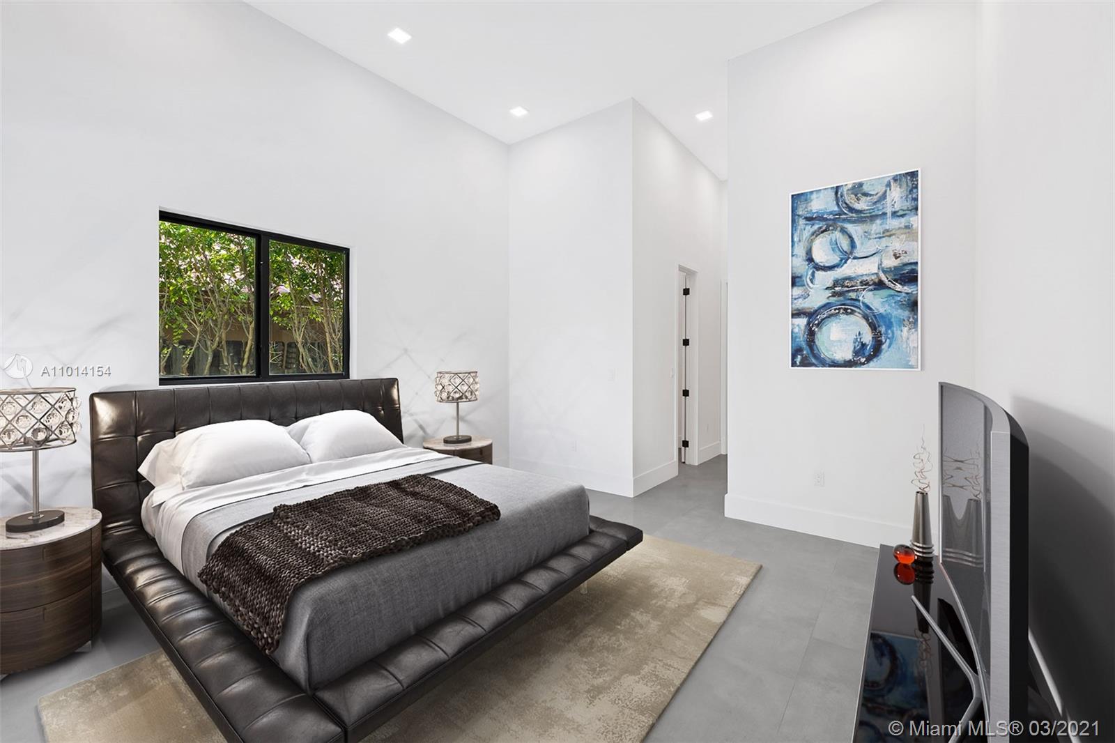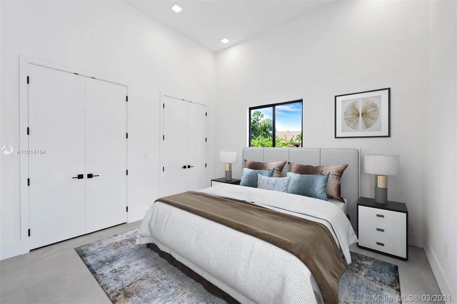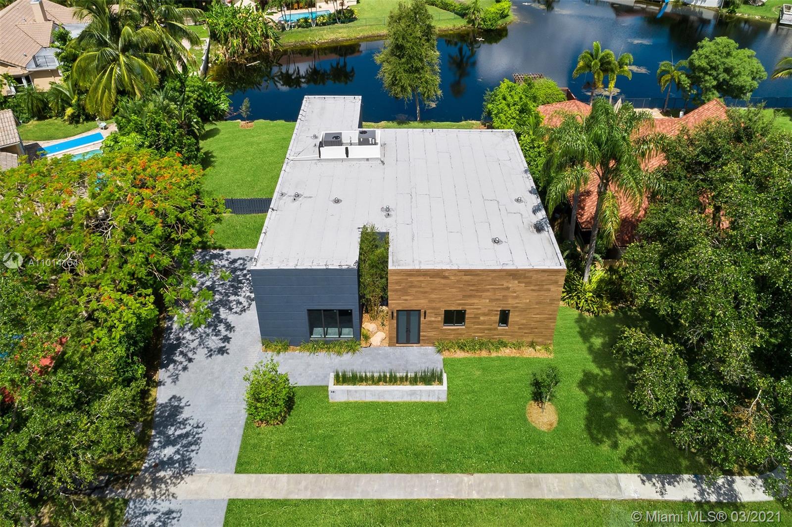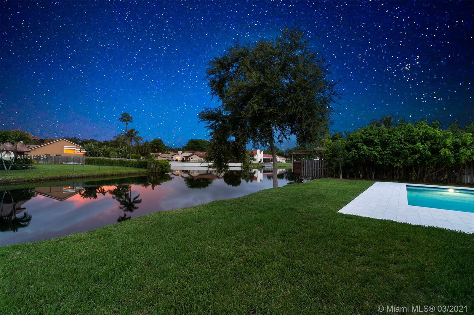 Ultra-Modern Masterpiece, new construction waterfront home. This stunning residence features an open concept floorplan and boasts 6 oversized Bedrooms, 5 ensuite bathrooms and walk-in closets. Expansive master suite with huge walk-in closets, an oversized double rain shower and soaking tub. 14’ ceilings throughout. 48” rectified porcelain tiles throughout. Designer kitchen featuring quartz counters/backsplash, top of the line built-in, energy efficient Bosch stainless steel appliances, winecooler and gas cooktop. Hurricane Impact energy efficient windows/doors. LED lights throughout. Two energy efficient A/Cs, Linear diffusers. Oversized pool and covered area. Located on cue-de-sac in a private country club golf course community walking distance to temples/churches, in top school district.