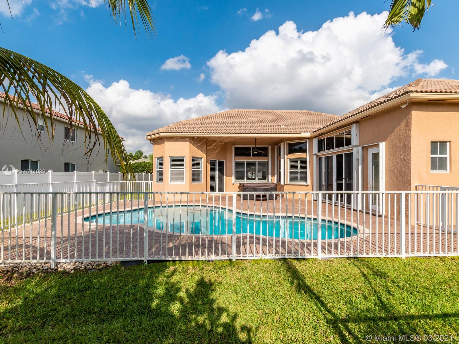 Welcome Home! This exquisite Estates of Pembroke Shores home is located in the heart of Pembroke Pines and boasts 4 bedrooms, 3 full baths and a 3-car garage. The kitchen is fit for a chef with an island and newer stainless-steel appliances. There is a new ac, new water heater, rain gutters, accordion shutters, custom closets in the master bedroom and garage, 7 exterior and 2 interior cameras and security system, and a manned guard gate brings the safety home. The covered patio along with pool makes it perfect for entertaining and enjoying the best of South Florida. The home has had a Four Point Pre-Inspection with Wind Mitigation by Max Home Inspection. Conveniently located near the Shoppes of Pembroke Gardens, Whole Foods, 1-75 and amazing schools. This home is ideal for any family.