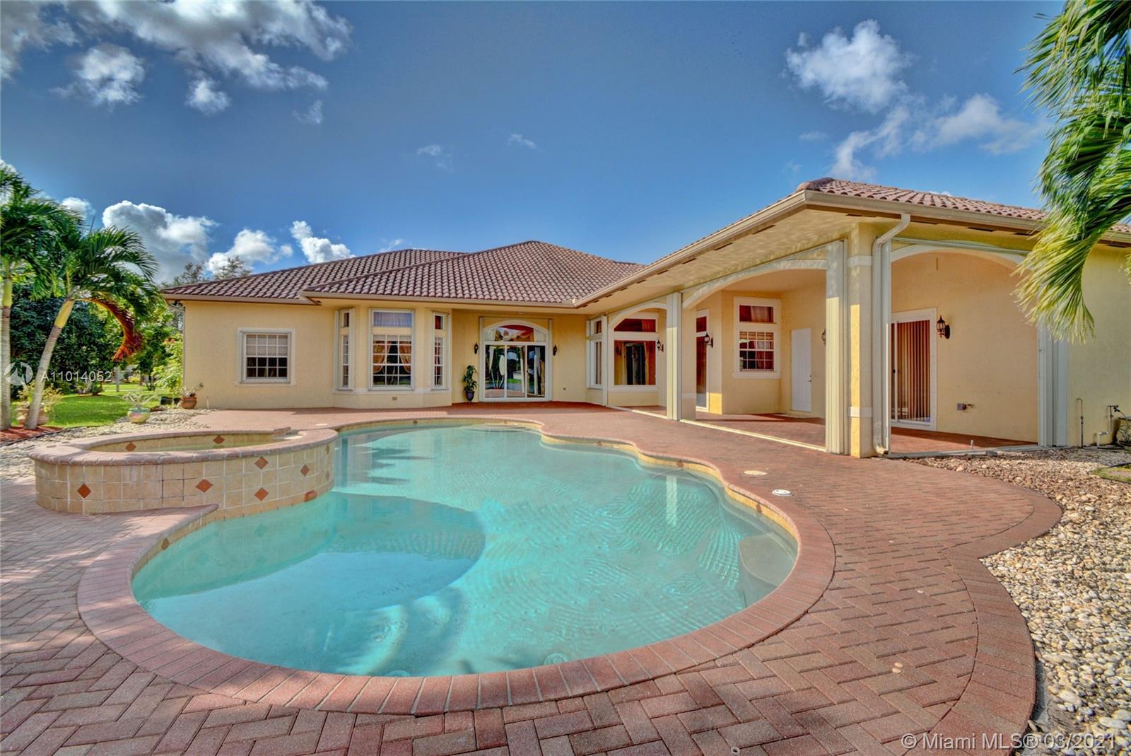 Sumptuous Lake Front State Home w one of kind Mediterranean design located in Rock Creek Ranches that offers the peaceful lifestyle that is unique to the township of Davie. This Gated Community of just only 79 homes that offers you the privacy and exclusivity you seek, with Impressive waterfall entry & lush landscaping. This home is one of the largest Del Mar III model that sits in a corner builder's acre lake front lot w pool & Spa. Features includes crown molding, 5 Bed + Den, 4 Bath, Master Suite/Gym & breakfast area w a Lavish Master Bath Roman Tub & Shower Wall. Gourmet kitchen w extractor hood.Beautiful wet bar & formal dining room w elegant columns.Covered Terrace w accordion shutters & Split Side 4 Car Garage This home is special & we invite you to experience it for yourself.
