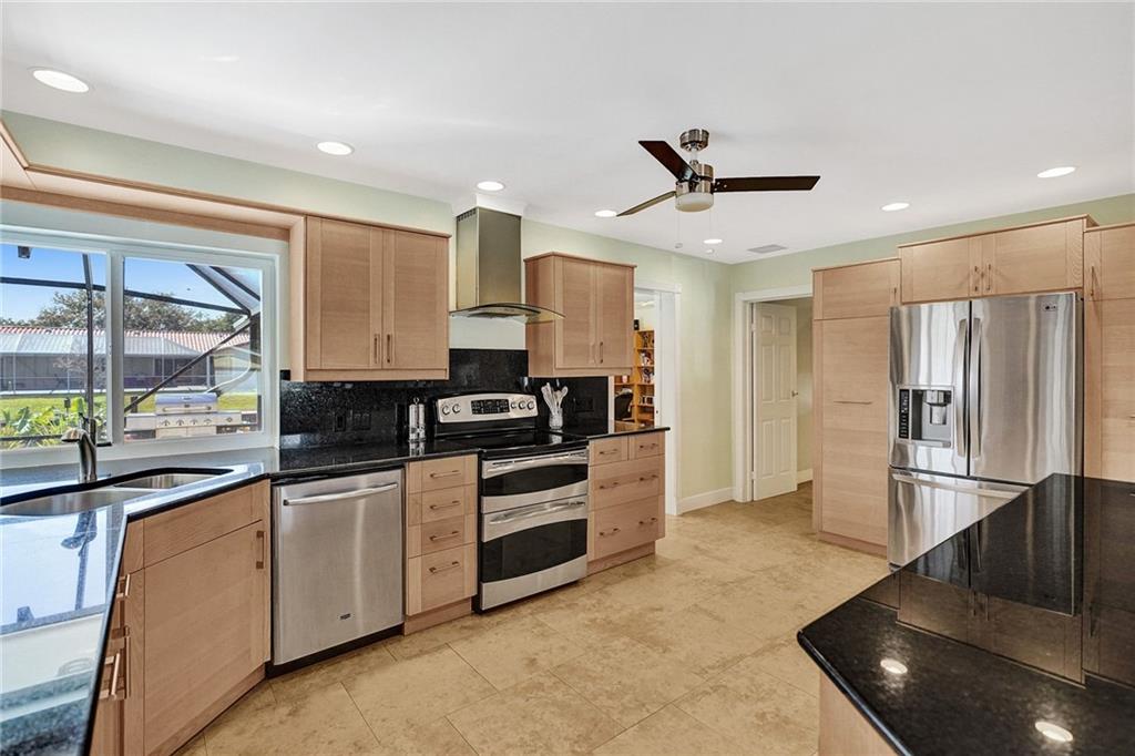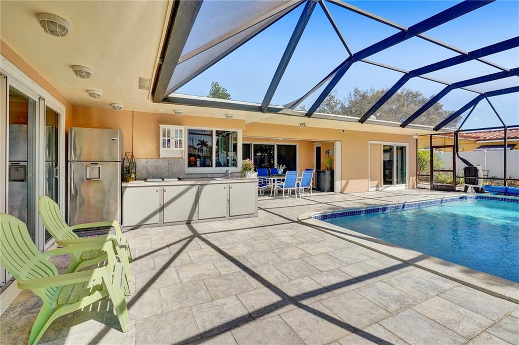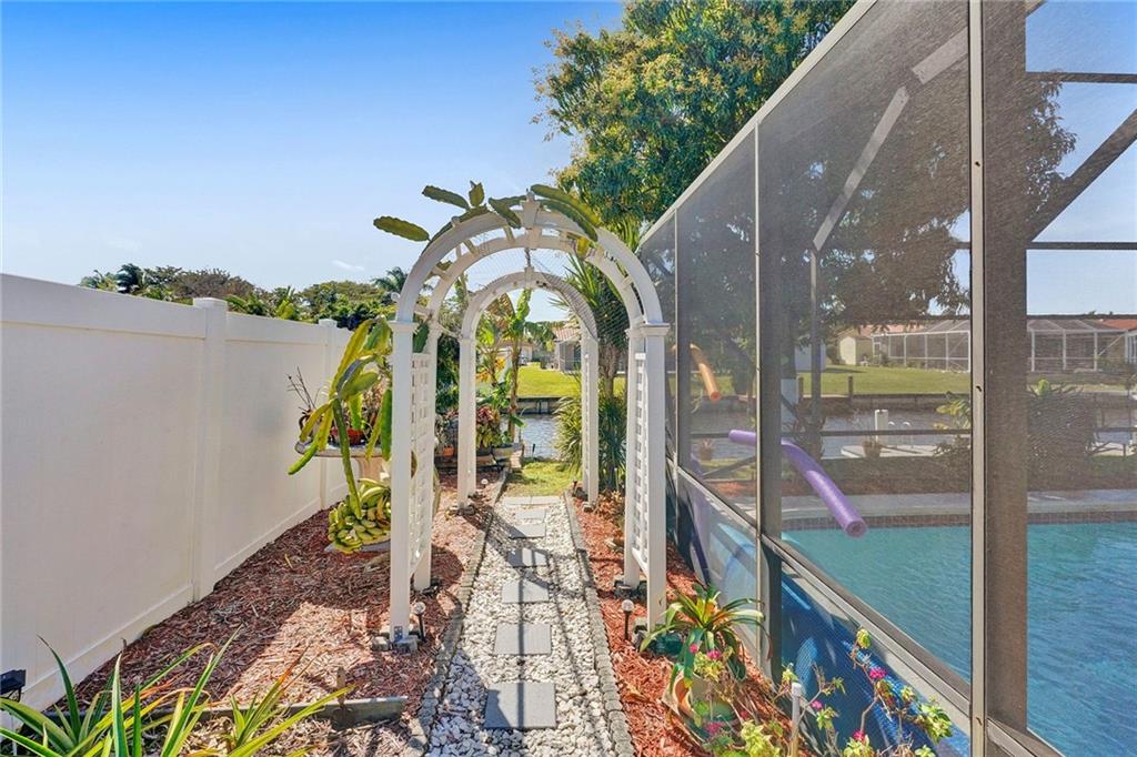 Beautiful waterfront ocean access home in Plantation Isles. No HOA. This turn key home features an open concept living spaces with desirable split bedroom floor plan. Kitchen has soft close ample cabinetry with LED lighting, granite countertops and stainless steel appliances. Large master suite with a waterfront view. Walk in closet and custom built safe room that includes built in shelving & drawers. This home includes impact windows and doors throughout and generator ready. The outdoor kitchen includes gas stove top and full size sink and refrigerator. Pool and patio screened in to enjoy with friends and family all year round. Plenty of fruit bearing trees and plants await you. Heritage Park and Happy Tails Dog Park are just a short walk away.