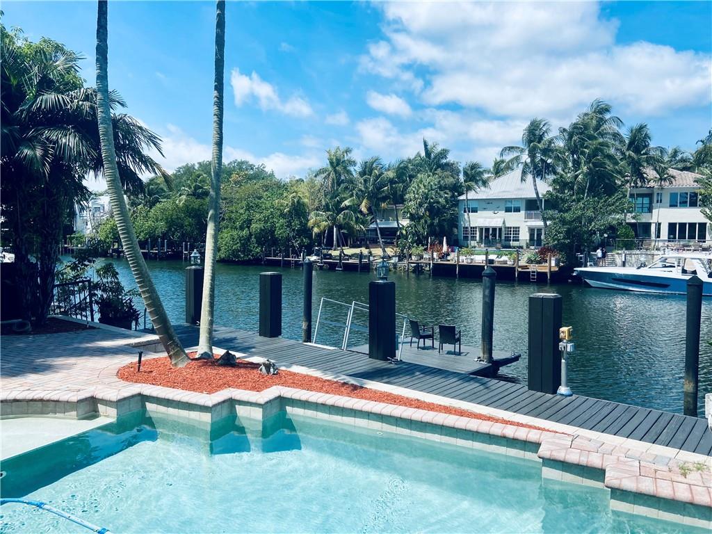 BEST VALUE UNDER $3 MILLION! $2.495. Remodeled. Many new features. Modern, open, flowing floor plan great for entertaining. Unique dockage: up to 2-3 40’ boats docked perpendicular on 160’ wide waterway. See photos. Large floating dock. Waterfront is 50’ setbacks only 5 feet. Most picturesque and WIDEST natural waterway in Las Olas. Old Florida “RIO NAVARRO” lined with mature live oaks, connects historic Rio Barcelona & New River. Significant remodeling includes new roof 2020, new AC, new floors, master bathroom. Finished garage, lift (optional). & opens to beautiful pool & backyard. Optional 4th bedroom perfect for office. Large loft makes great exercise area or office. AKA “Navarro Isle”, quiet street of new homes, offers closest proximity to Las Olas restaurants & nightlife.