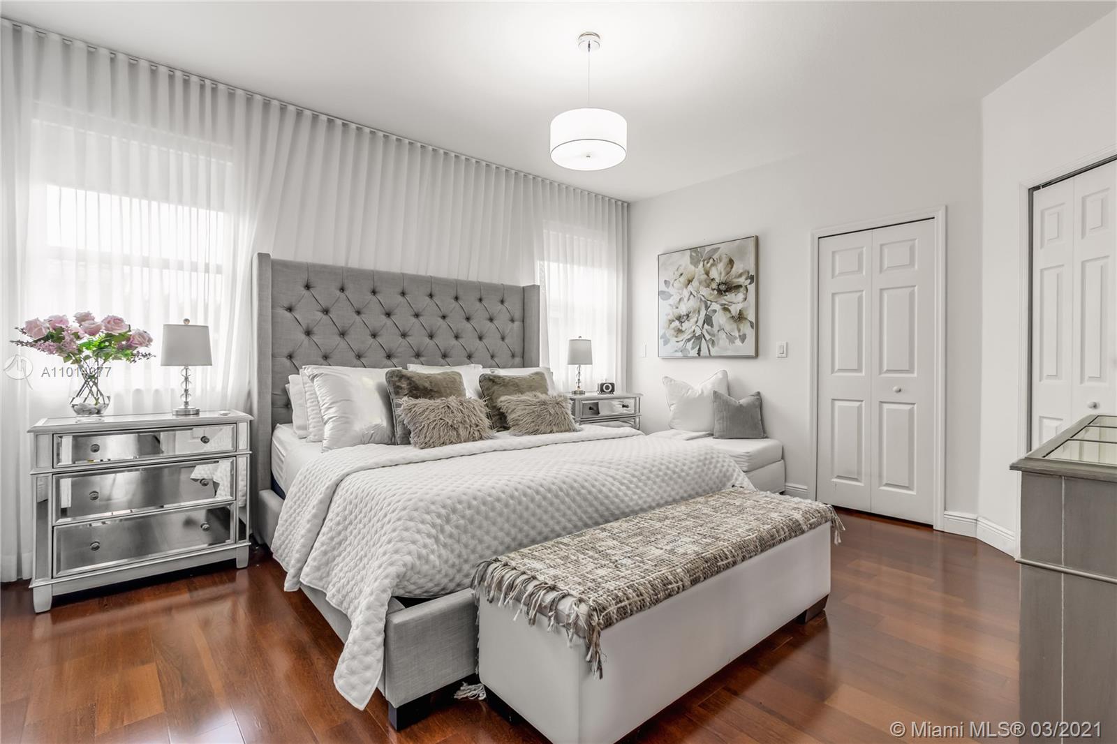 Beautiful fully updated home features a grand entrance, open floor plan, tile & wood floors throughout. Great floor plan with a full bedroom and bath downstairs. Open kitchen and eat-in kitchen with wood cabinets, with stainless steel appliances and quartz countertop, spacious family room with a wonderful patio, pool, formal living room, large two car garage, and terrace on the second floor.