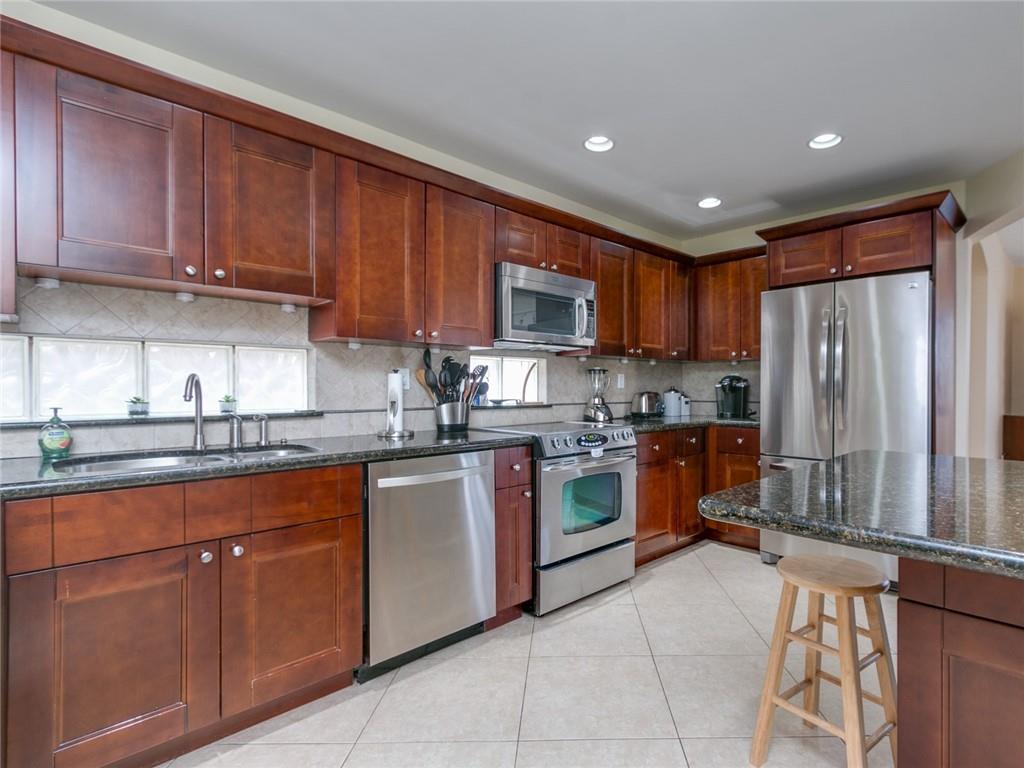 WHAT A VIEW. LAKEFRONT + 7' HEATED SPA, VERY WELL MAINTAINED AND UPGRADED. CHERRY WOOD CABINETS AND BUILT INS, GRANITE, STAINLESS STEEL APPLIANCES, RECESSED LIGHTING, VAULTED CEILING, CUSTOM VANITIES, CHERRY WOOD FLOORS UPSTAIRS WITH TOTALLY REDESIGNED MASTER BATHROOM INCLUDES A 3 X 6 STALL SHOWER AND A MAKE-UP STATION, SECURITY SYSTEM, LARGE YARD HAS PAVERS AND ROOM FOR POOL. 2 CAR GARAGE, UPSCALE FURNITURE CAN BE INCLUDED.