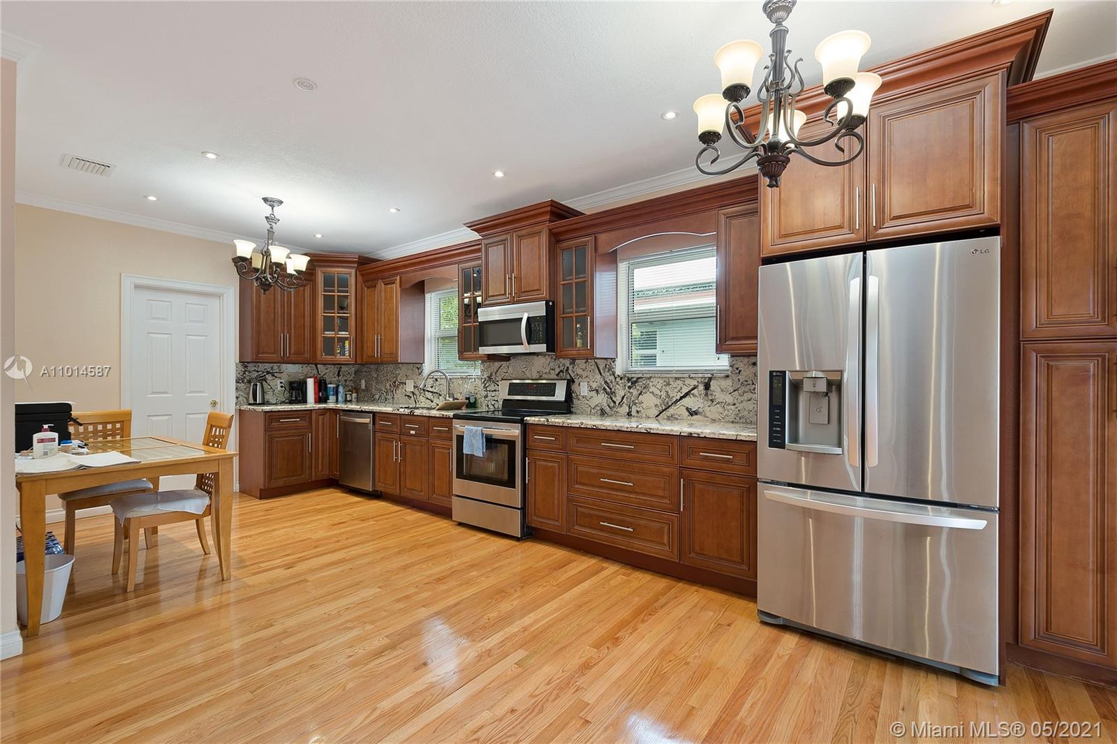 Located in Coral Gables Country Club subdivision, renovated 3 bed 3 1/2 bath home w/living,dining,wood floors,abundant natural light. Granite tops/stainless steel appliances. Private backyard with a beautiful deck. Bathrooms are upgraded; Double garage. Separate laundry room area with extra ½ bath. Master suite with walk in closet and large master bath. Zone"X" Not a flood zone. Close to everything. Move-in condition. Spacious circular driveway. Impact window and impact doors. Newer Electrical Panel. PVC Plumbing, Newer AC. Marble floors and Marble walls in 3 bathrooms.