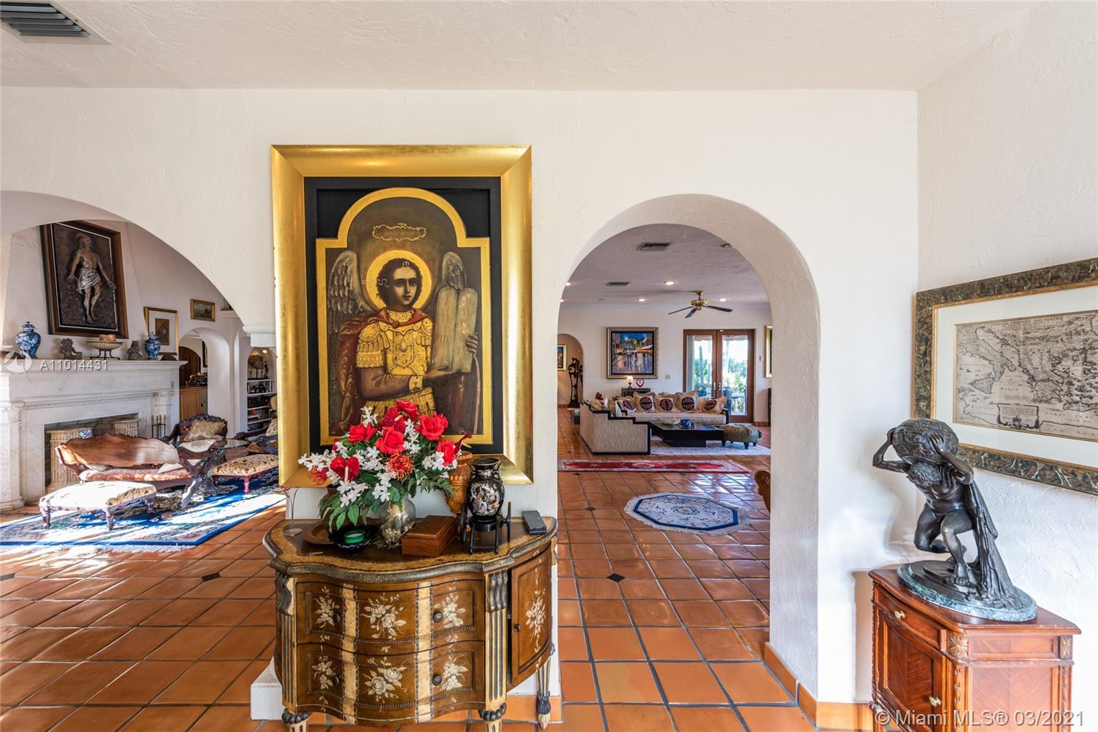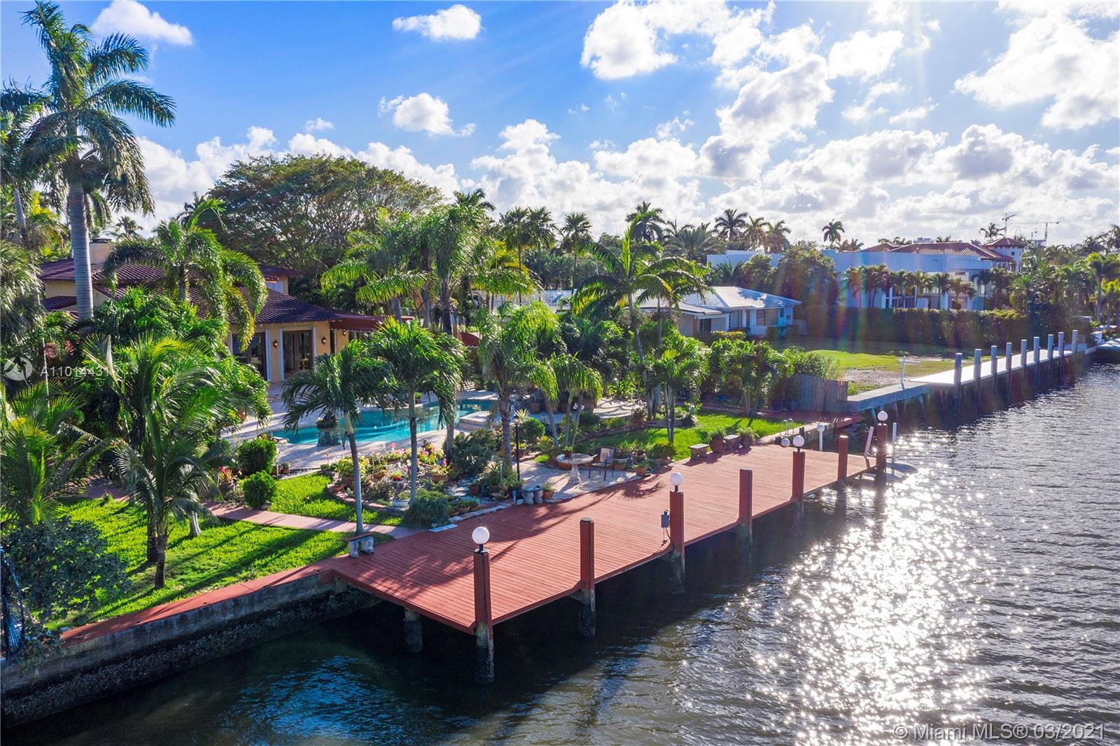 Dramatic Waterfront 4/4 5,000+ sf Mediterranean villa with wide water views and dock on large lot with resort-style swimming pool, spa and tennis court surrounded by tropical foliage in sought-after Hollywood Lakes neighborhood. A few short blocks from the beach and many shops, restaurants and nightlife. Home features dramatic soaring ceilings throughout massive living area with high French doors uniting interior with outdoor paradise. Lots of charm and character and many updates. Quality construction engineered to endure. Ideal to entertain with ample parking. Great for boating, jet ski, paddle board. Your own personal Florida paradise.