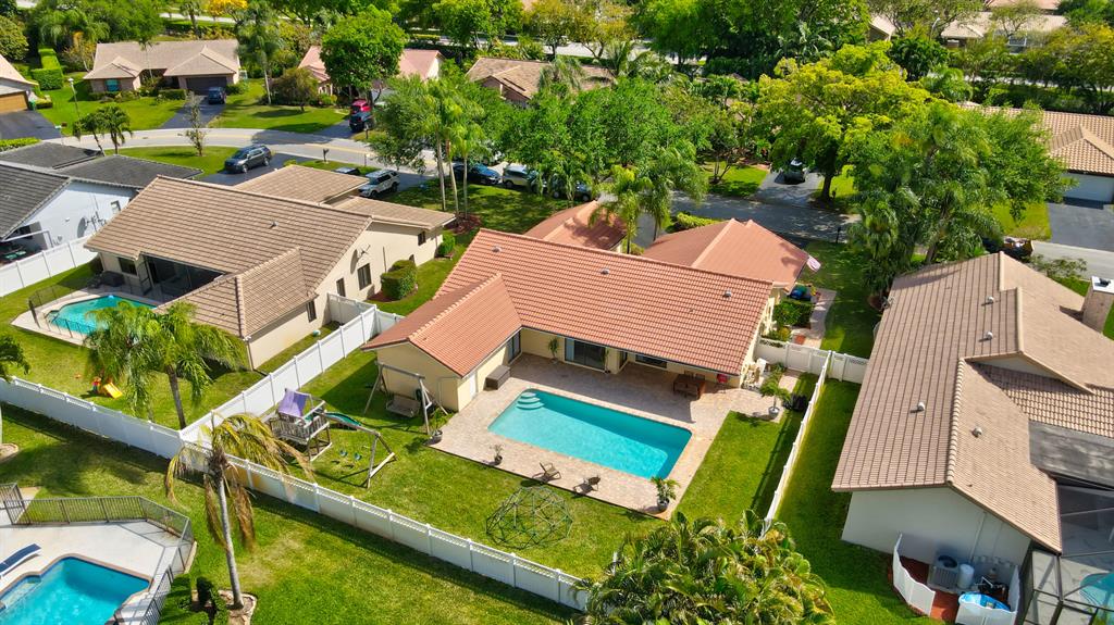 Beautiful updated pool home in the desirable Coral Springs Pine Ridge community. This 4 bedroom, 2 bath home has an open floor plan with vaulted ceilings. Tile floors throughout. Updated kitchen with pantry and laundry room. Master bath was beautifully renovated in 2021 and has a private pool access door. Master bedroom has his & her walk-in closets and plantation shutters. Large yard is fully fenced and the pool area has safety gate included. Sprinkler pump was replaced in 2020 as well as a new pool pump 3 yrs ago. The circular driveway & 2-car garage provide ample parking. Hurricane protection~panel shutters. Close to highways, great schools, shopping & restaurants. This house is move-in ready with too many features to list. Come see for yourself and bring offers. This one won't last!