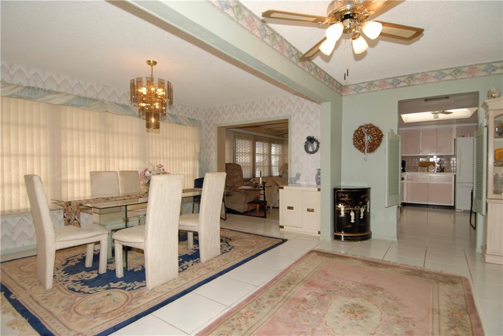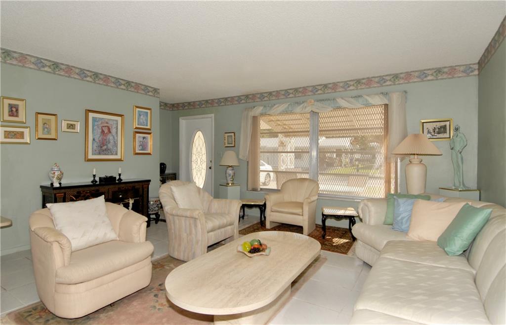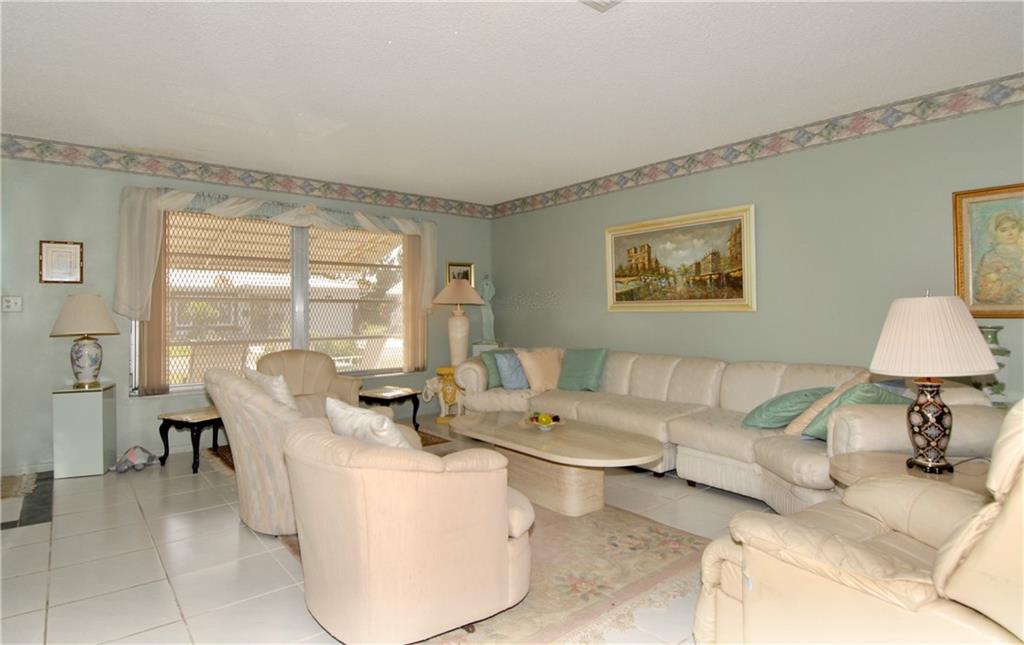 Immaculate, luxury living in the largest model with NO recreation/land lease in Leisureville! Free golf for all owners. NEW ROOF in 2012. Remodeled kitchen with newer cabinetry. Tiled floors in the living room, dining room, Florida room and kitchen. Active senior community with two heated swimming pools, two clubhouses, an Executive 9 hole golf course, a community bus, and many activities. Close to beach, entertainment, and I95. Pets welcome.