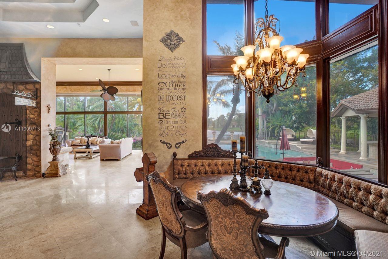 GRAND LUXURIOUS residence with some of the most beautiful sunsets ever seen located in the highly sought after neighborhood of Windmill Ranch Estates! Main features include: 5 bedrooms, 5 bathrooms PLUS office/den in the main house, guest house with full bath, marble floors & fine wood finishes through-out, living room with a large wet bar & fireplace, floor to ceiling windows in living areas with mesmerizing water views, stunning master bedroom suite, and a gorgeous kitchen with center island, gas stove & top-of-the-line appliances. In addition - spacious patios, outdoor lounge areas, over-sized pool with spa, sunken sitting area, water features & fire pits, summer kitchen, spacious yard, accordion hurricane shutters, large circular driveway with porte cochere entry and a 3 car garage!
