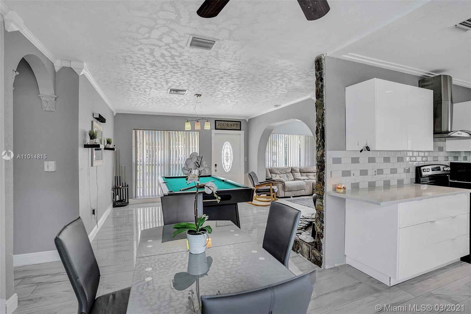 THIS IS IT! Nestled in the sought-after, family-friendly West Hollywood community, this upgraded beauty features a spacious living area with amplified natural light and a comfortable layout your family can flow through. Circular driveway with unique landscaping for inviting curb appeal introduce you to HOME. This 3 bedroom, 2.5 bathroom single-family home boasts a beautiful kitchen, Quartz countertops, stainless steel appliances, double counters, and access to the laundry room within the kitchen. Beautiful french doors invite sunlight and introduce an exquisite pool and bar area into a generous yard to make incredible memories for years to come. Nest air-control, metal shutters and cameras included. It's perfect! You've found it, come tour it. Open House Tours 12pm-2pm Sat, 3/20.