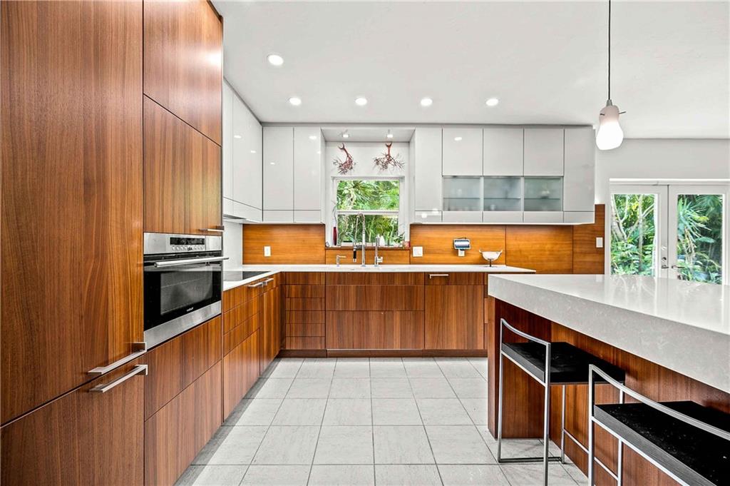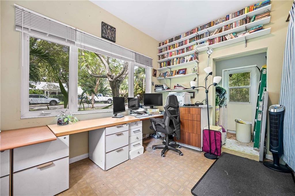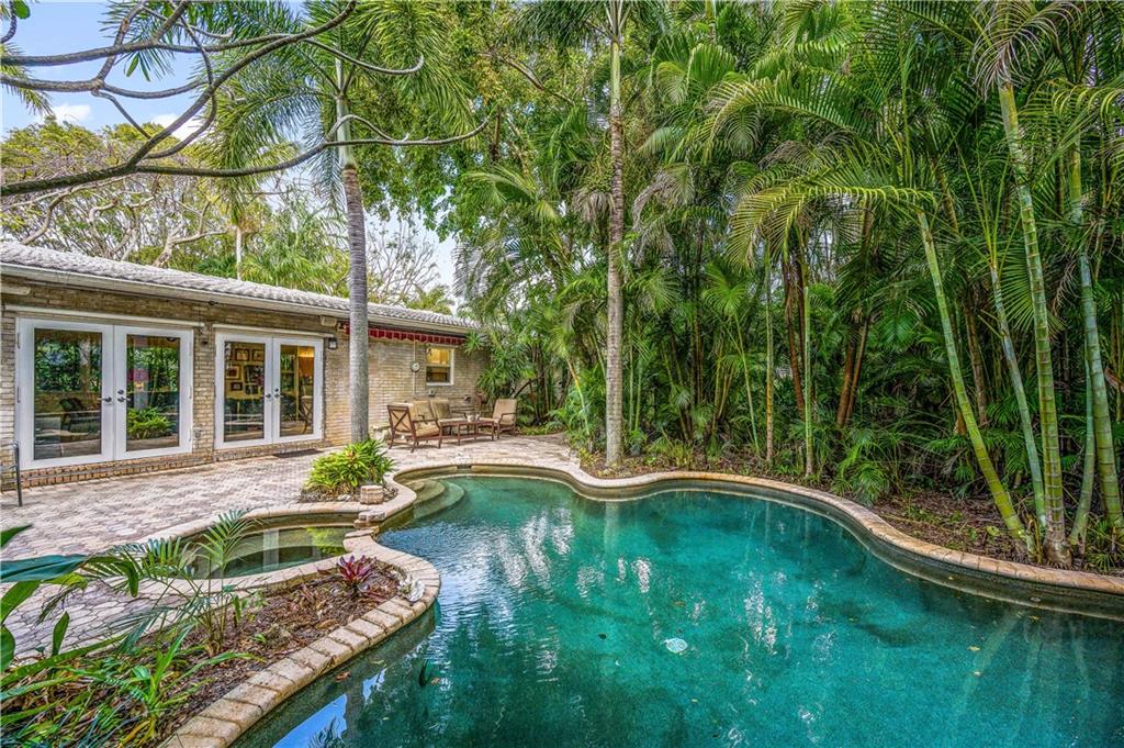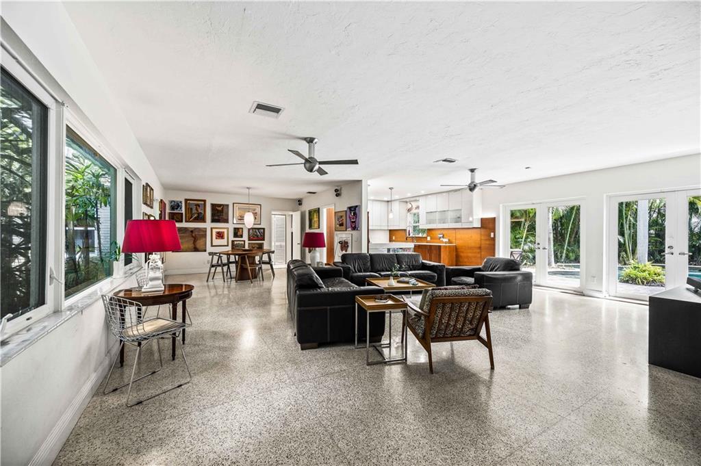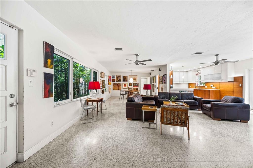 Situated on one of the most desirable streets in Victoria Park. Spacious 3BR/2BA boasts a wide-open floor plan perfect for entertaining. This split plan offers a central living-dining room with open kitchen that separates the Primary suite and office from the two guest bedrooms and hall bath. Sets of French doors provide pool views from the moment you enter through the front door. Pristine scored terrazzo floors run throughout most of the home providing a cool retro look. A Poggenpohl brand Euro kitchen offers the latest in cooking technology with a Wolf wall steam/convection oven and induction cook-top, built-in Miele refrigerator and dishwasher. A heated lagoon-like pool with spa surrounded by dense tropical landscaping plus a whole house generator make this home the perfect find.