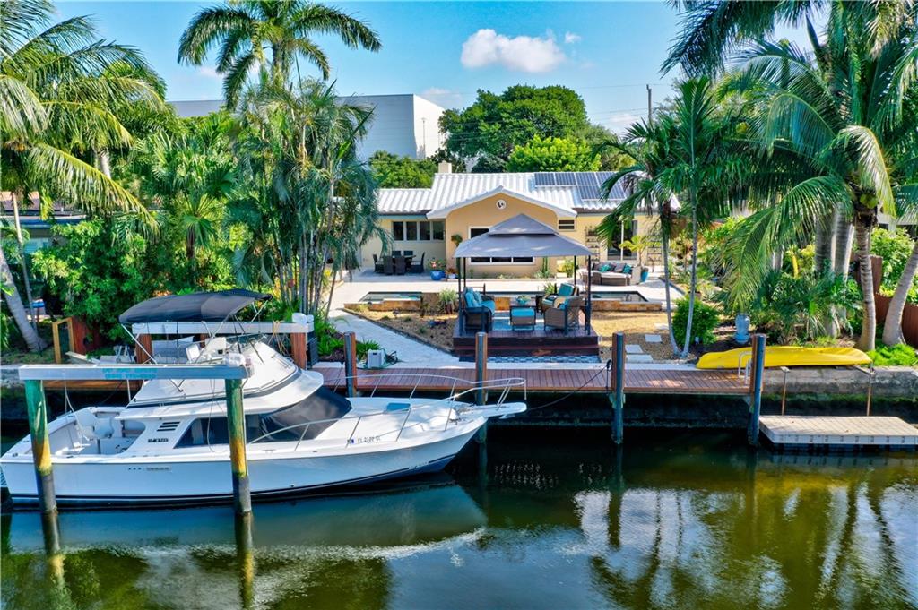 THE ONLY OCEAN ACCESS HOME on the market in Fort Lauderdale under 1M! Resort like cottage w/ 70' on H2o (1 FB - 10.2" Clearance) is located in Central East Fort Lauderdale. Open concept living space is beautifully updated with Impact Windows & Doors, $32,000+ Solar System, Mosquito Nix System, Electrical Panel Upgraded, Travertine Deck and Driveway, Motorized Security Gate, Electric Charging Station, Heated Salt H2o Pool & much more! The kitchen is professionally configured & has all the most accomplished chef could hope! Gardens are lushly landscaped w/ colorful plants, succulents & flowers. Relax in the delightful waterfront gazebo enjoying the relaxing SE waterfront views on this extra wide canal & enjoy the cool east side breezes coming up from the Intracoastal only a few lots east.