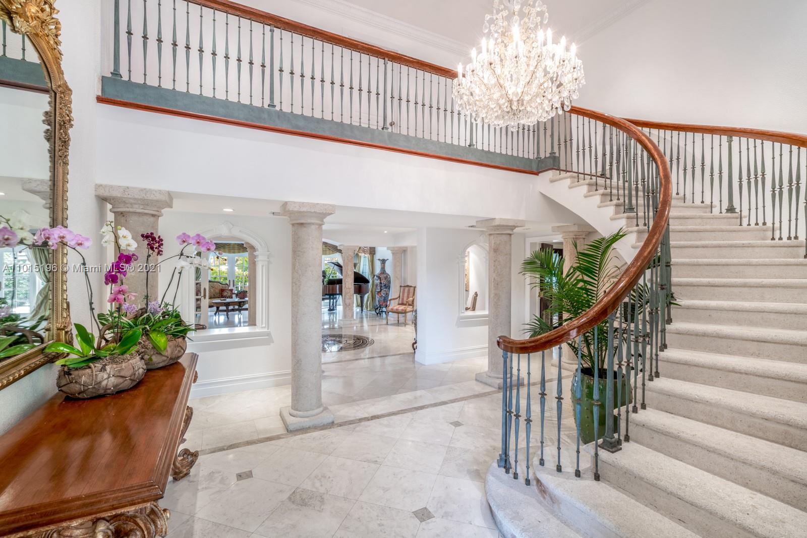 “Living on the edge” has a new meaning with 327 ft of incredibly lush waterfront views showcasing this secluded, private tropical peninsular estate. Located on a tranquil cul-de-sac with 10 ft ornate iron gates and no bridges to Biscayne Bay, this Key Biscayne villa has 2 boat docks, 4-car garages, 15+ car driveway and porte-cochere, located on a rare expansive 31,000 sf lot, making it exceptional and unparallelled for boating and car enthusiasts alike. The epicurean French kitchen reveals hand-carved artisan antique cabinets, Sub Zero appliances LaCornue range, pizza oven and rotisserie, beckoning entertaining for 5 or 50. Opulent marble and granite finishes throughout with a fabulous layout include 5 second-floor en suite bedrooms and private balcony allowing exceptional water views.