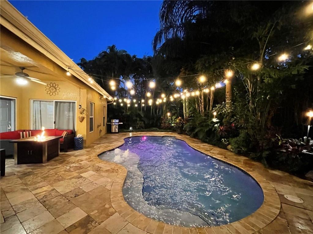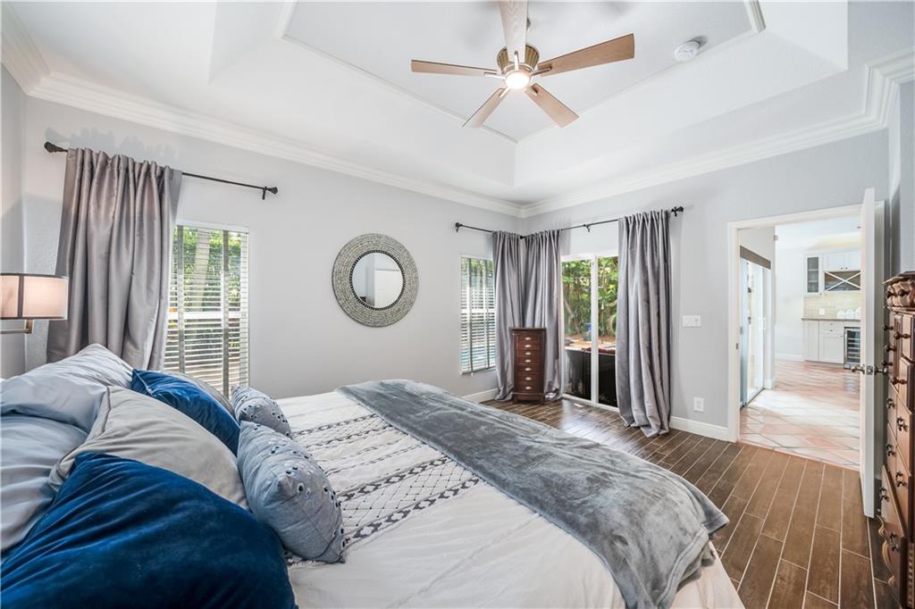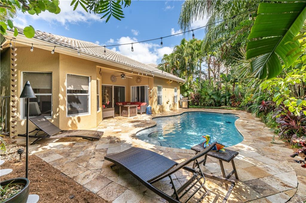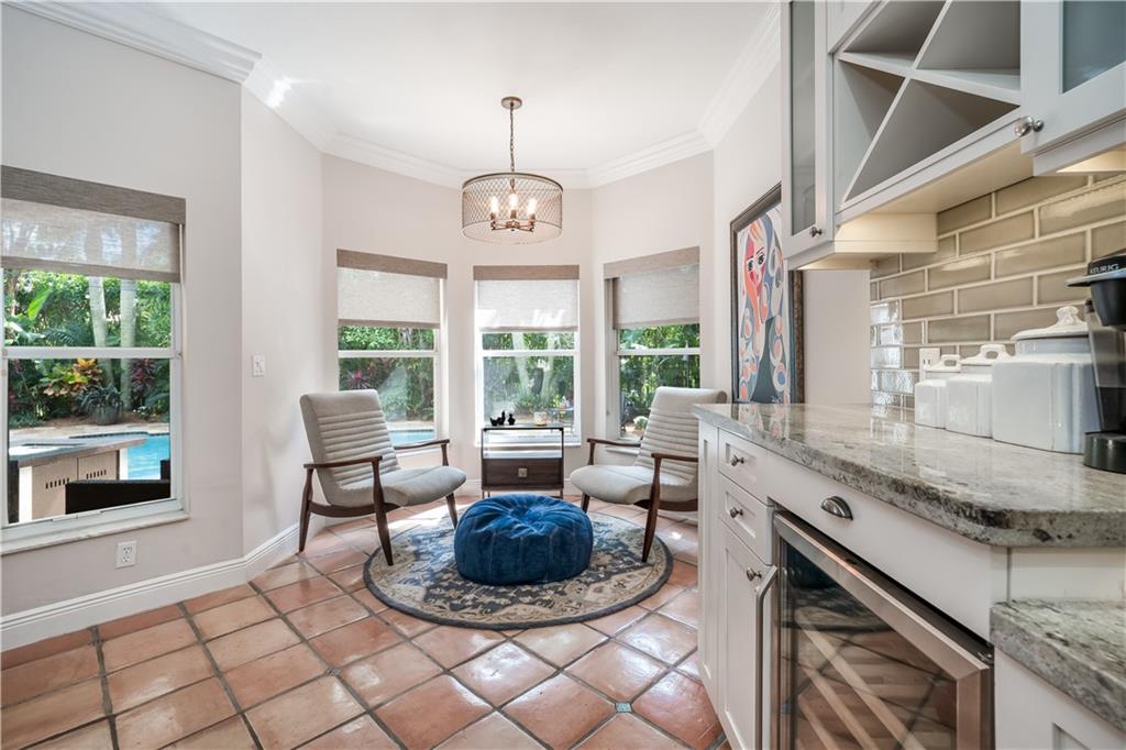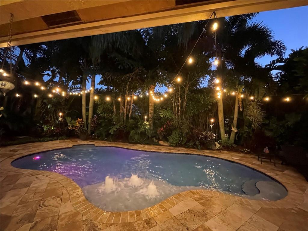 REMODELED home with enchanting pool w/Marble Decking & Exotic Plants & Trees in lushly landscaped backyard*White Shaker Cabinets in Kitchen and Jack/Jill Bath*Granite Counters*Wine Fridge*Stainless Steel appliances, French Door Refrigerator, SS Farm Sink, pull-out shelves, lazy susan*Saltillo Clay Tile floors throughout main living area*Crown Molding*Designer Chandeliers Stay*Primary Bedroom has Tray Ceiling, wood look tile floors, 2 mirrored walk-in closets*2 separate Vanities w/Granite counters, custom mirrors, soaking tub, separate shower w/frameless glass surround, separate water closet*Built-in Office (4th Bdrm) Library w/2 Desks, w/custom features & wall mounted TV*Wood Laminate floors in secondary bedrooms & office*Fenced salt system Pool w/3 fountains*2 Car Side Entry Garage