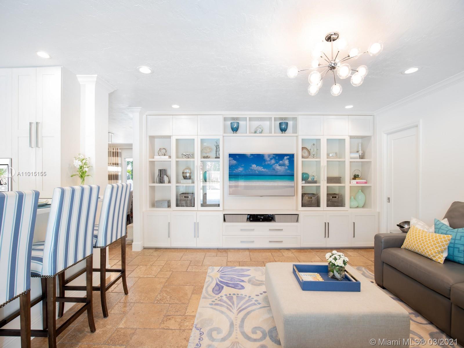 A timeless and renovated residence on a beautiful North Pinecrest street - this special home offers superb quality and modern features: recent new roof, impact glass windows - doors, updated plumbing, ACs and a custom gas kitchen. This 4br/3bath floor plan is the ideal layout for a family and offers a home office with custom built-ins. The kitchen windows open to a large covered terrace and a heated saline pool area where many afternoons will be enjoyed after bike rides on the low traffic street. Surround yourself with quality time by walking to nearby Pinecrest parks, tennis center, shopping and the adjacent expressways are perfect for those that commute. Home can be purchased with most of the furniture (separate purchase/request prices), making it a turn-key opportunity!